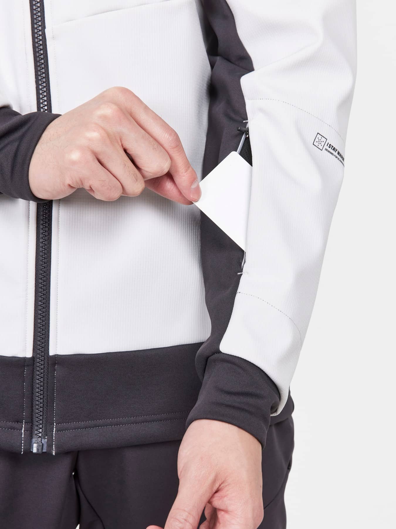 • Tasche mit Reißverschluss an unterem Ärmel
