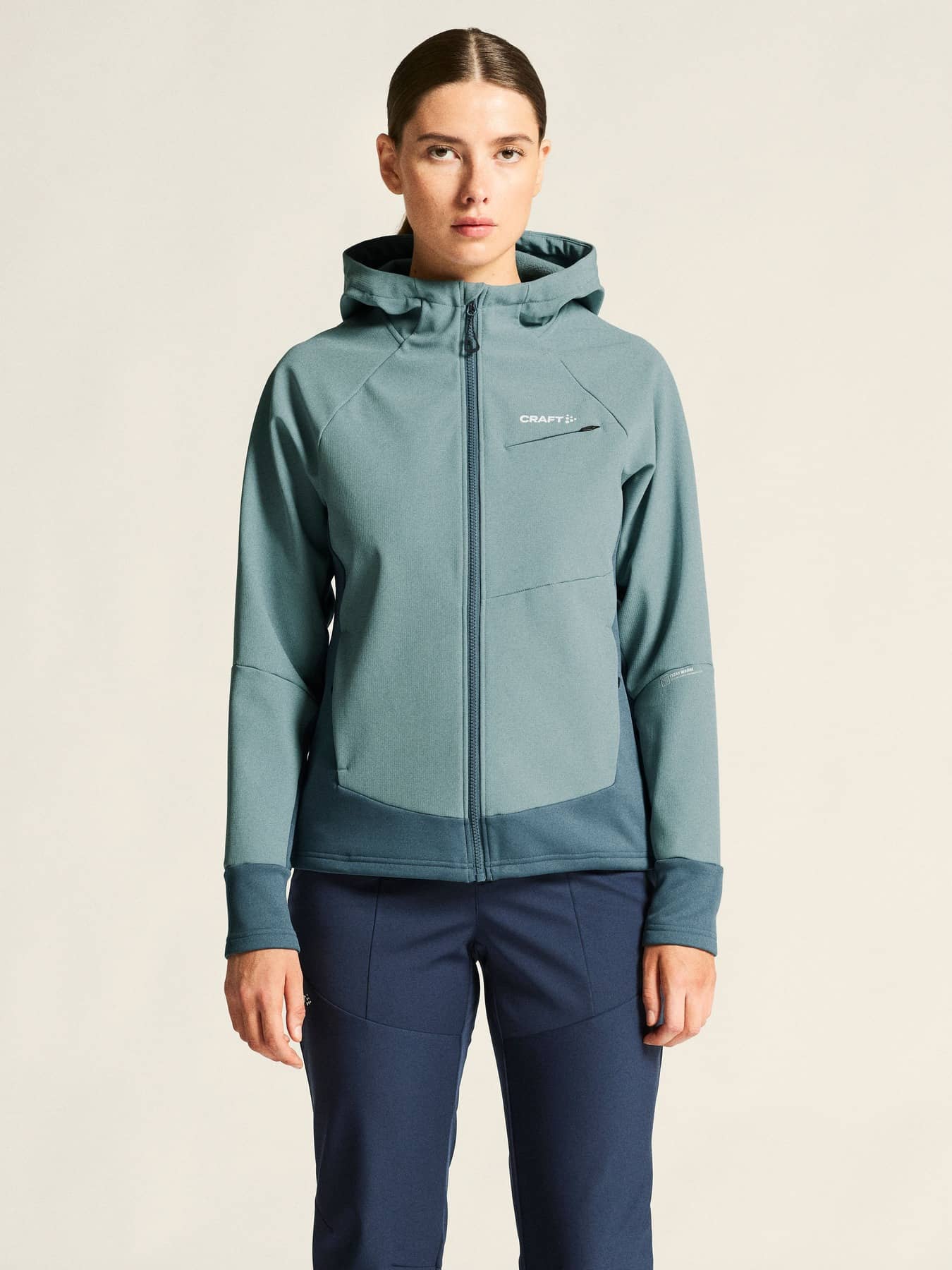 • Kapuze über Kordelzug verstellbar