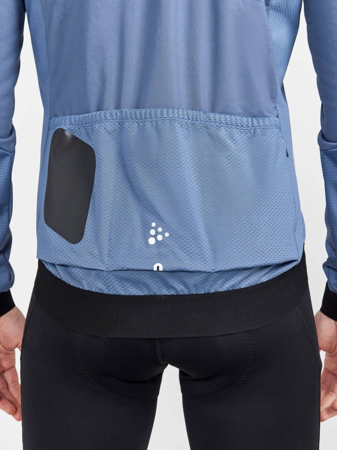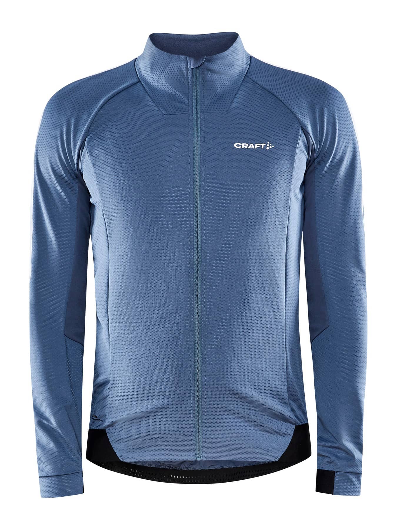 Bikejacke mit winddichtem, wasserabweisendem Material vorne, und elastischem, gebürstetem Rückeneinsatz für Feuchtigkeitstransport und Tragekomfort.