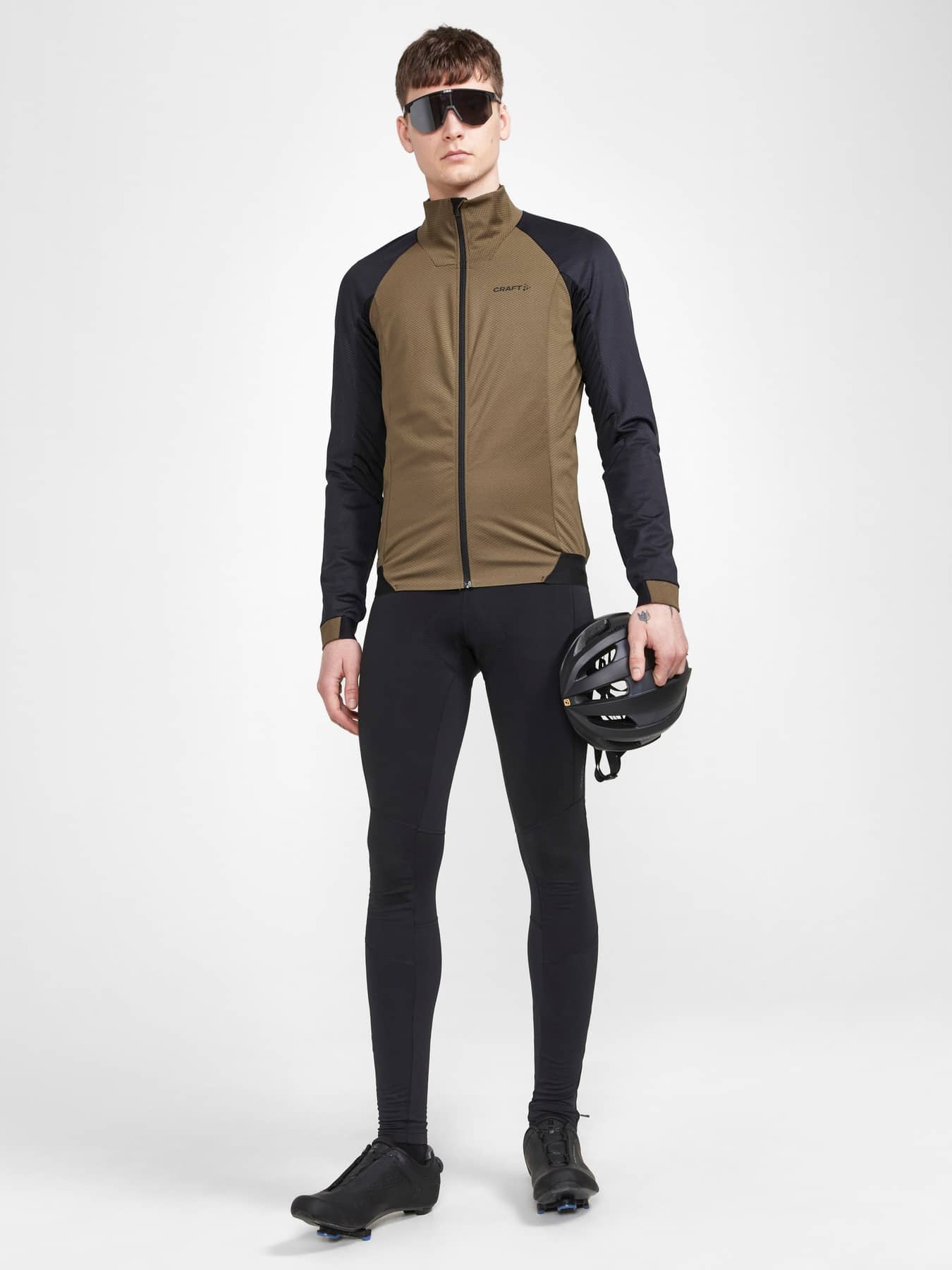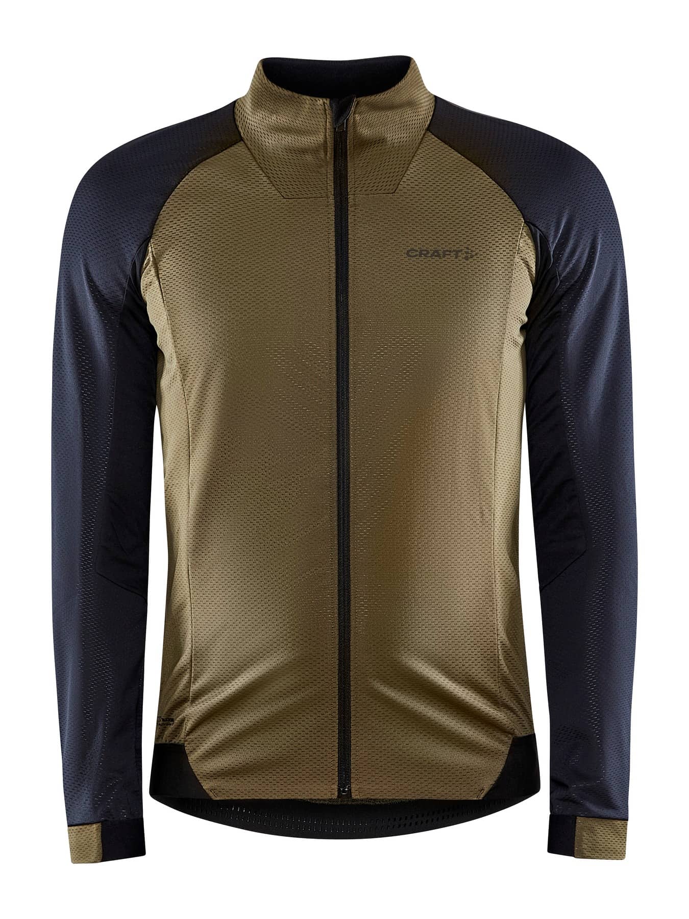 Bikejacke mit winddichtem, wasserabweisendem Material vorne, und elastischem, gebürstetem Rückeneinsatz für Feuchtigkeitstransport und Tragekomfort.