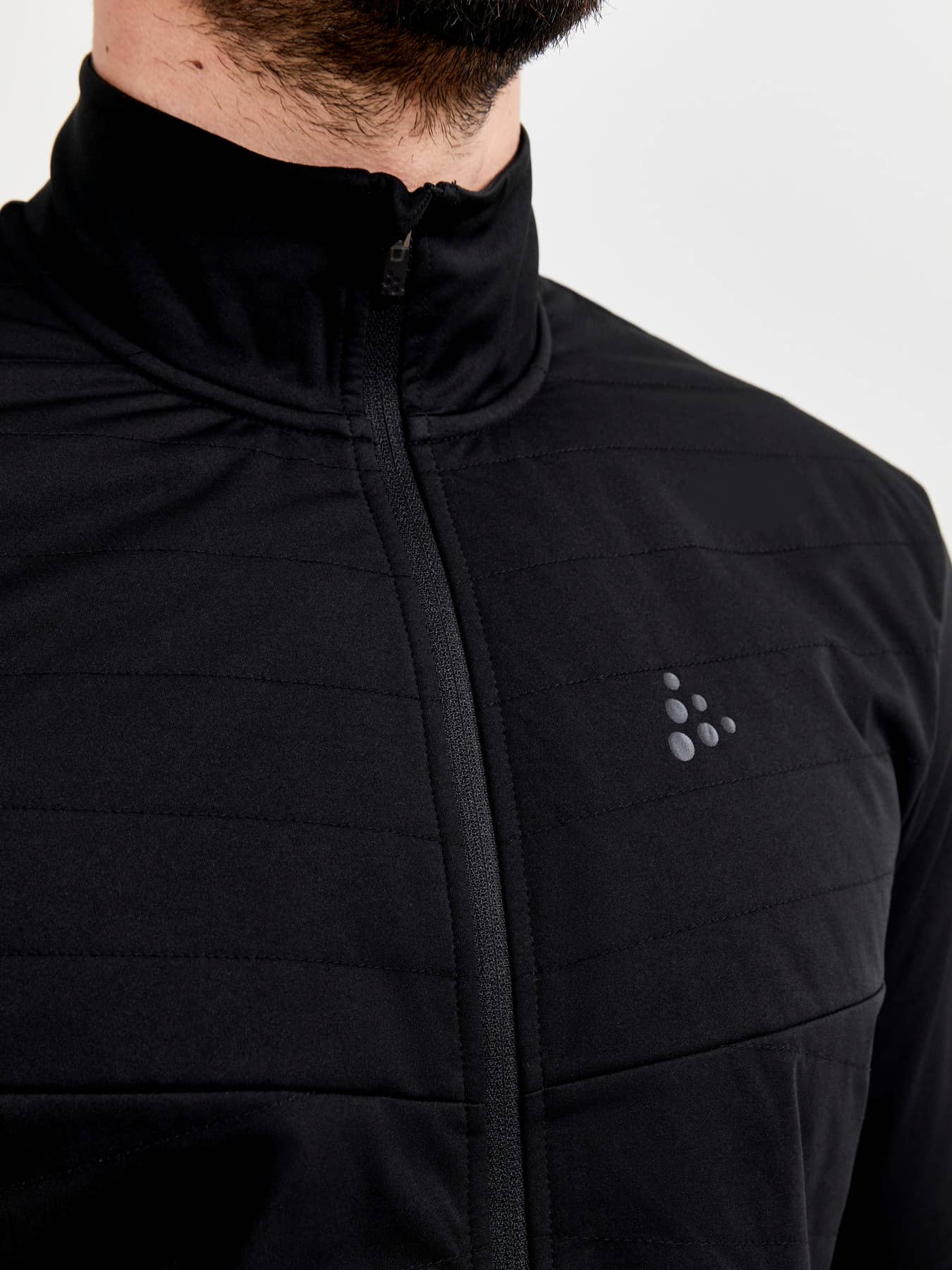 Warme Multisportjacke mit gesteppter Wattierung vorne und Winddichter Front- und Ärmelpartie. Zwei Seitentaschen mit Reißverschluss.