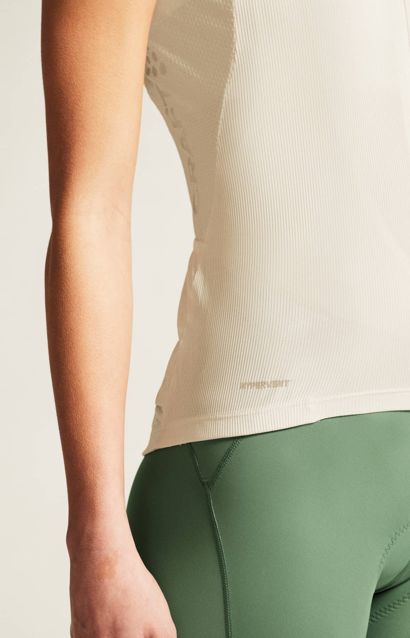Dieses moderne Fahrradtop ist aus weichem, elastischem Rippenmaterial hergestellt und zeichnet sich durch einen hervorragenden Feuchtigkeitstransport bei intensiven Fahrten aus. Das Gewebe besteht aus recyceltem Polyester. Seine Rippenstruktur schafft Luftkanäle für effiziente Belüftung und bietet einen weichen Griff für optimalen Komfort. Zusätzlich sorgt Mesh-Gewebe an den Seiten für verbesserte Belüftung, während ein Silikonprint am hinteren Saum das Top an Ort und Stelle hält. Drei Gesäßtaschen für effiziente Aufbewahrung.