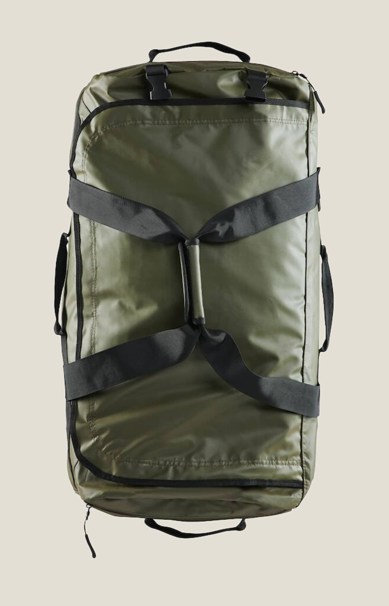 Strapazierfähige, universelle 100-Liter-Tasche mit wasserabweisenden Reißverschlüssen und zwei großen Seitentaschen. Mit verstellbaren Schultergurten, die bei Nichtgebrauch in die Seitentasche verstaut werden können.