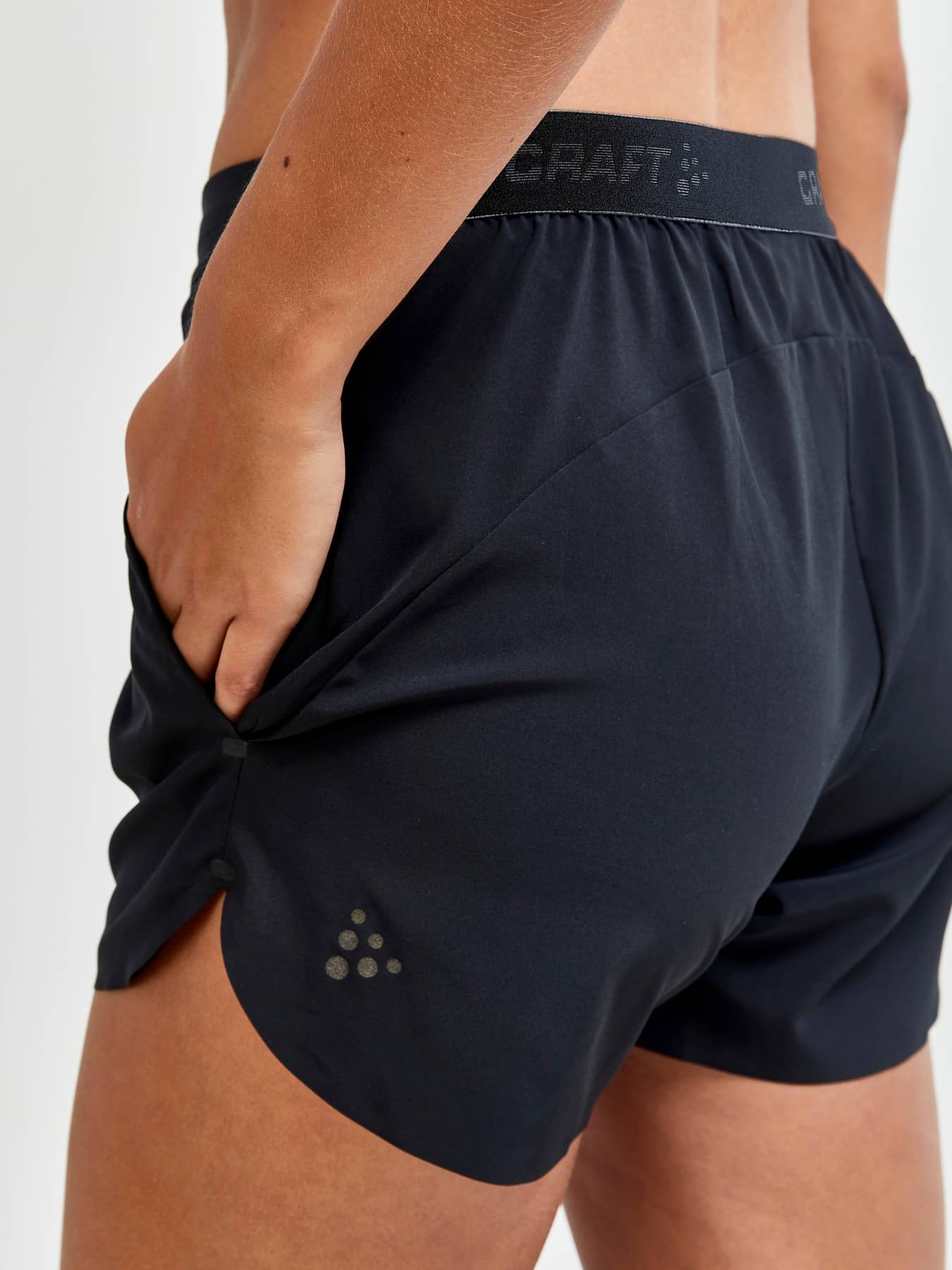 Trainingsshorts aus Stretchmaterial, die für die meisten Arten intensiver körperlicher Aktivitäten geeignet sind. Elastischer Bund, höherer Schnitt an den Seiten, zwei Seitentaschen und 12 cm Innennaht in Größe M.