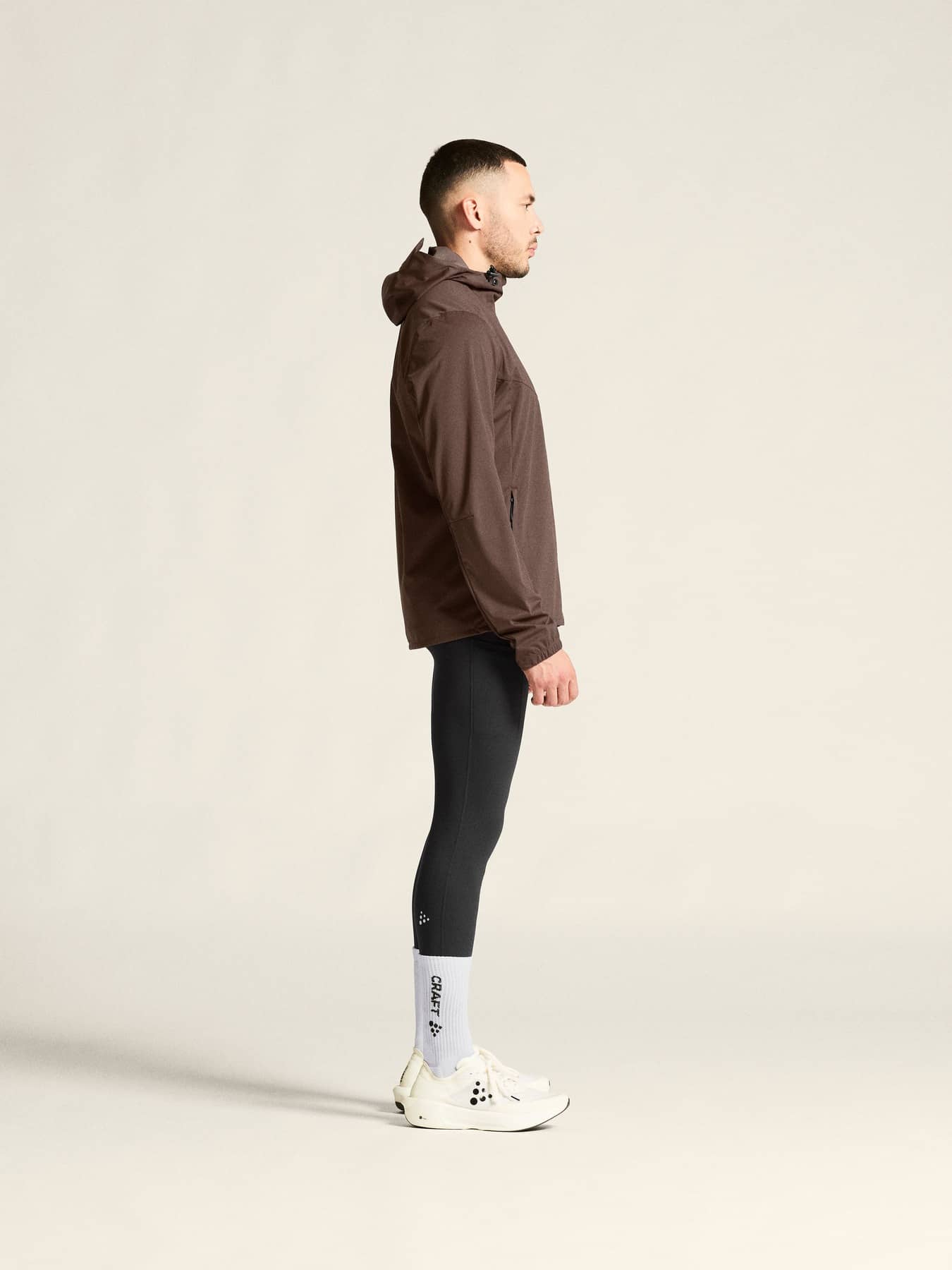 Jacke für intensives Training, Laufen und ähnliche Aktivitäten bei schlechten Wetterbedingungen. Die Jacke ist aus atmungsaktivem und wasserdichtem 3-Lagen-Material und verfügt über getapte Nähte in kritischen Bereichen. Kapuze verstellbar sowie Details, die dafür sorgen dass man im Dunkeln besser gesehen wird.