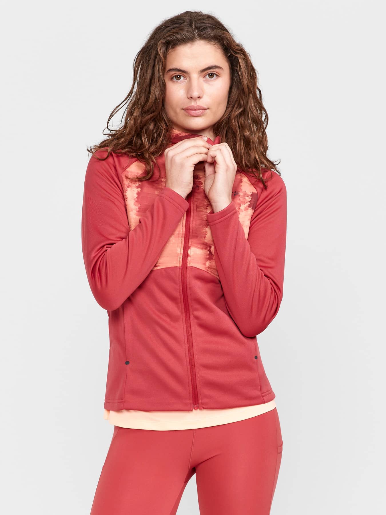Moderne Kapuzenjacke mit durchgehendem Reißverschluss und winddichter Front. Der Body ist aus einem angenehm weichen, warmen Jersey für maximalen Komfort. Zwei Seitentaschen mit Reißverschluss.