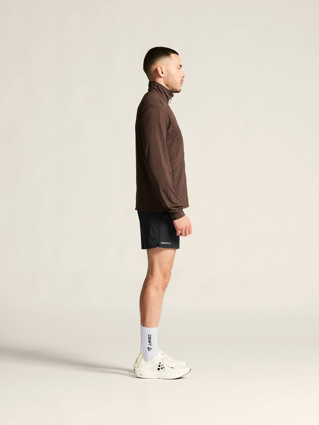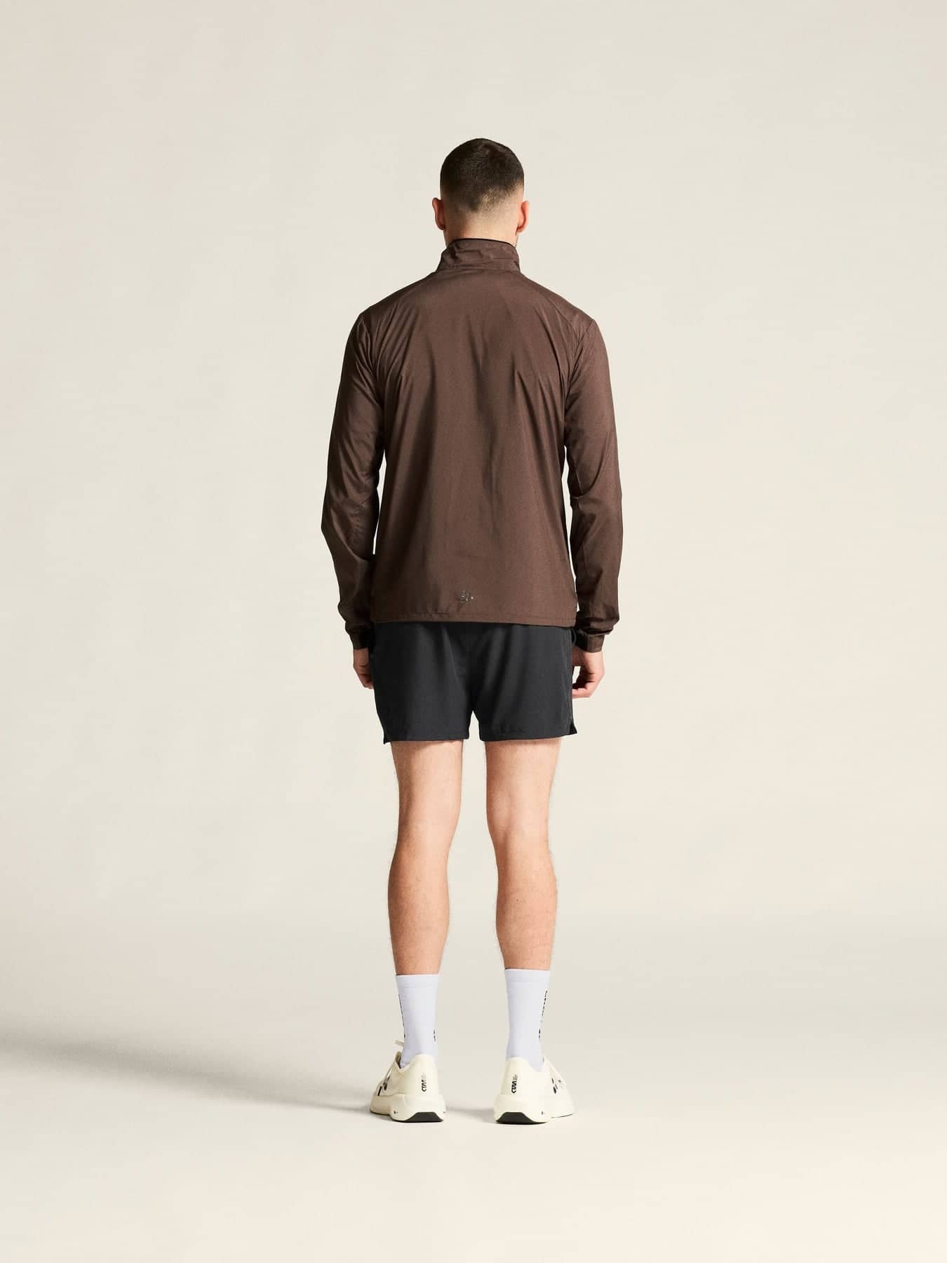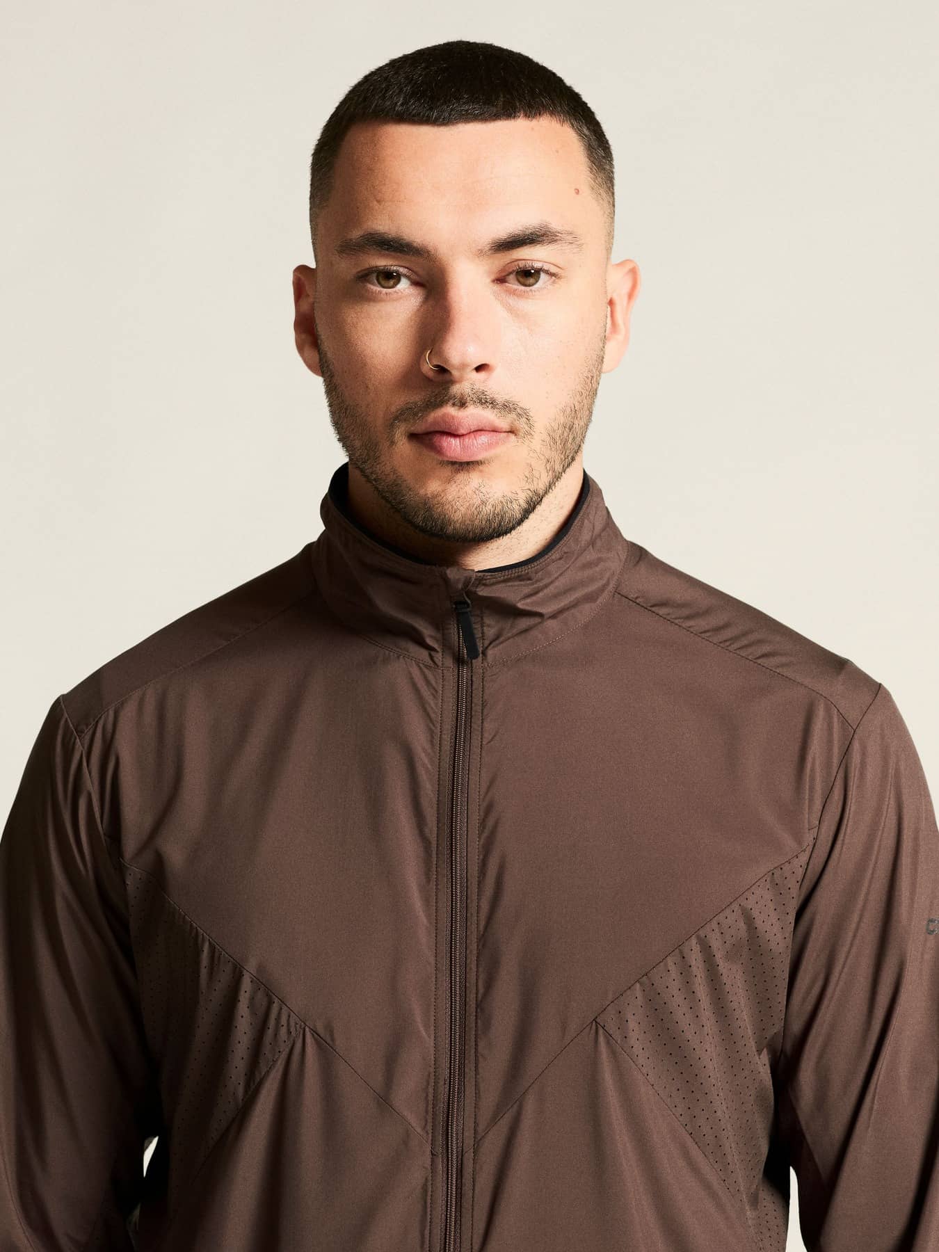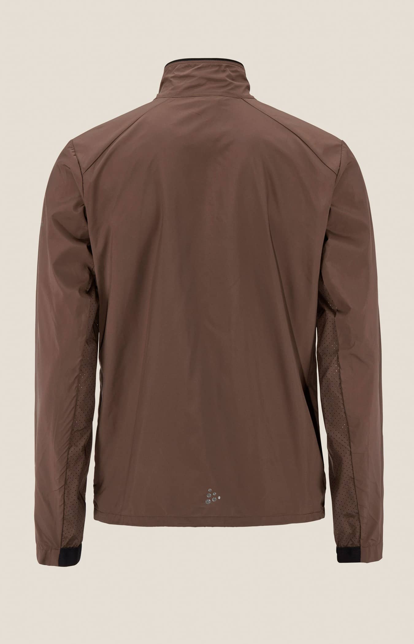 Wind- und wasserabweisende Jacke für intensives Training. Hergestellt aus recyceltem Polyester, mit Perforationen im Brustbereich und unter den Ärmeln für eine verbesserte Belüftung.