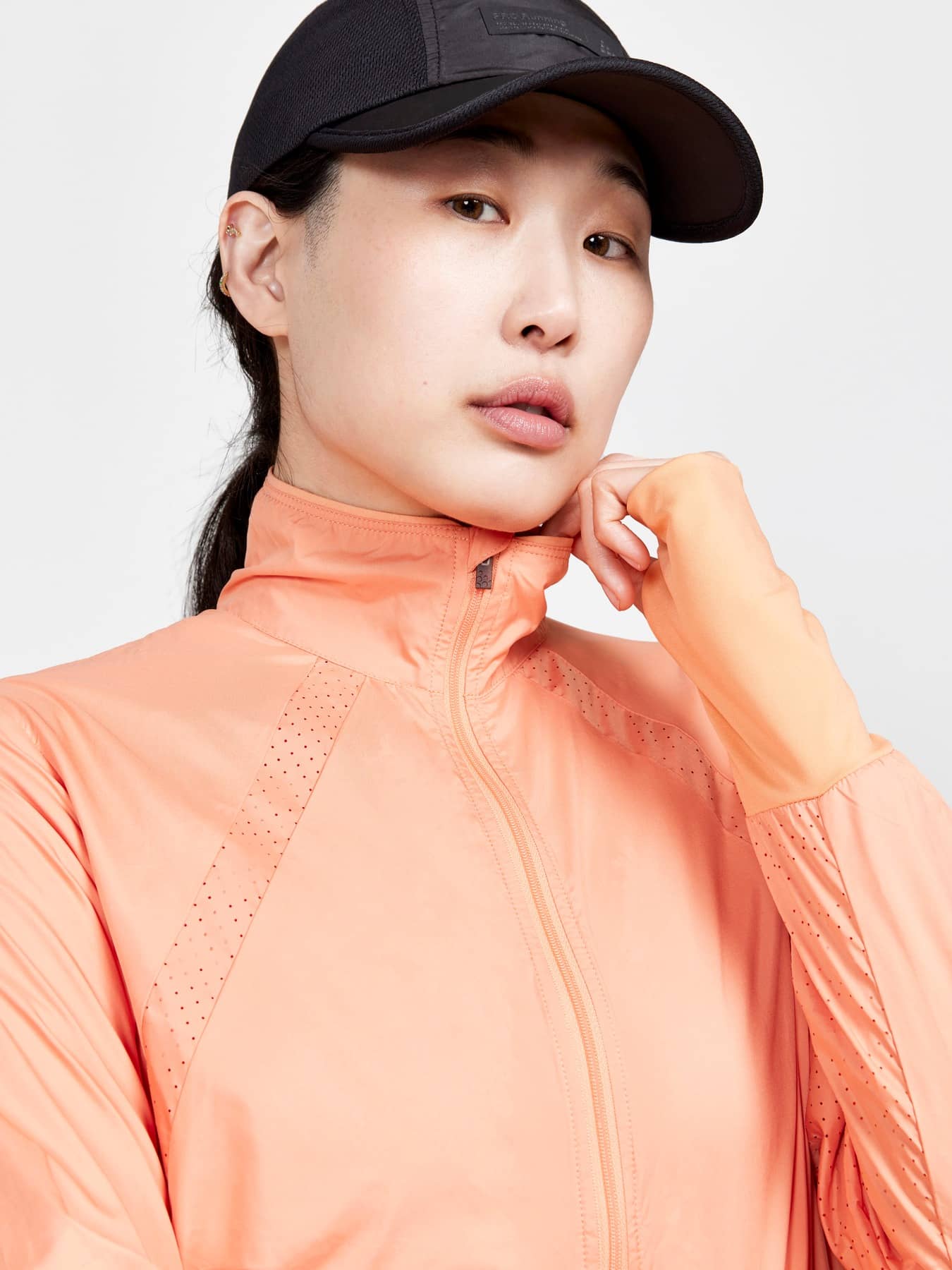 Wind- und wasserabweisende Jacke für intensives Training. Hergestellt aus recyceltem Polyester, mit Perforationen im Brustbereich und unter den Ärmeln für eine verbesserte Belüftung.
