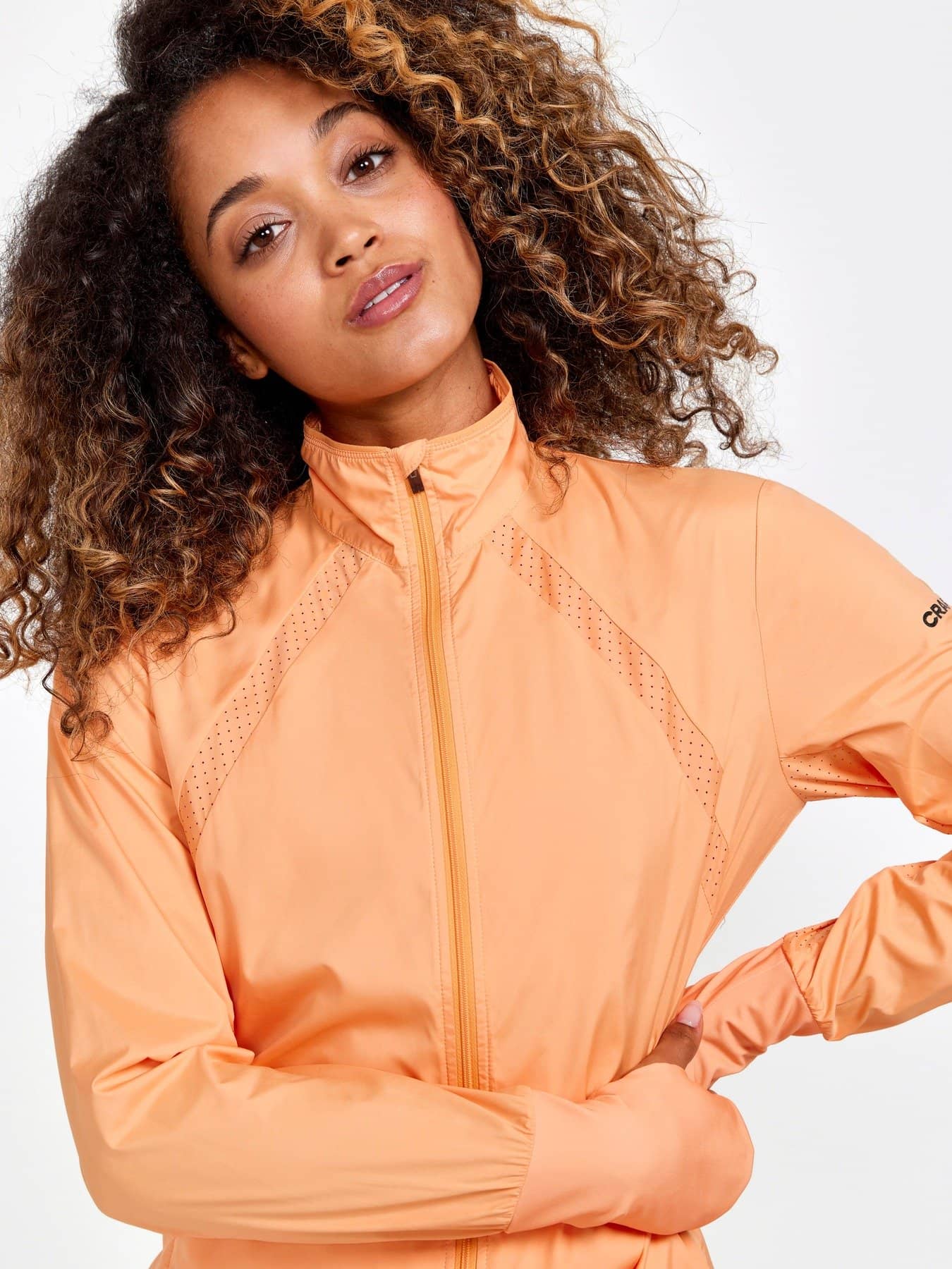 Wind- und wasserabweisende Jacke für intensives Training. Hergestellt aus recyceltem Polyester, mit Perforationen im Brustbereich und unter den Ärmeln für eine verbesserte Belüftung.