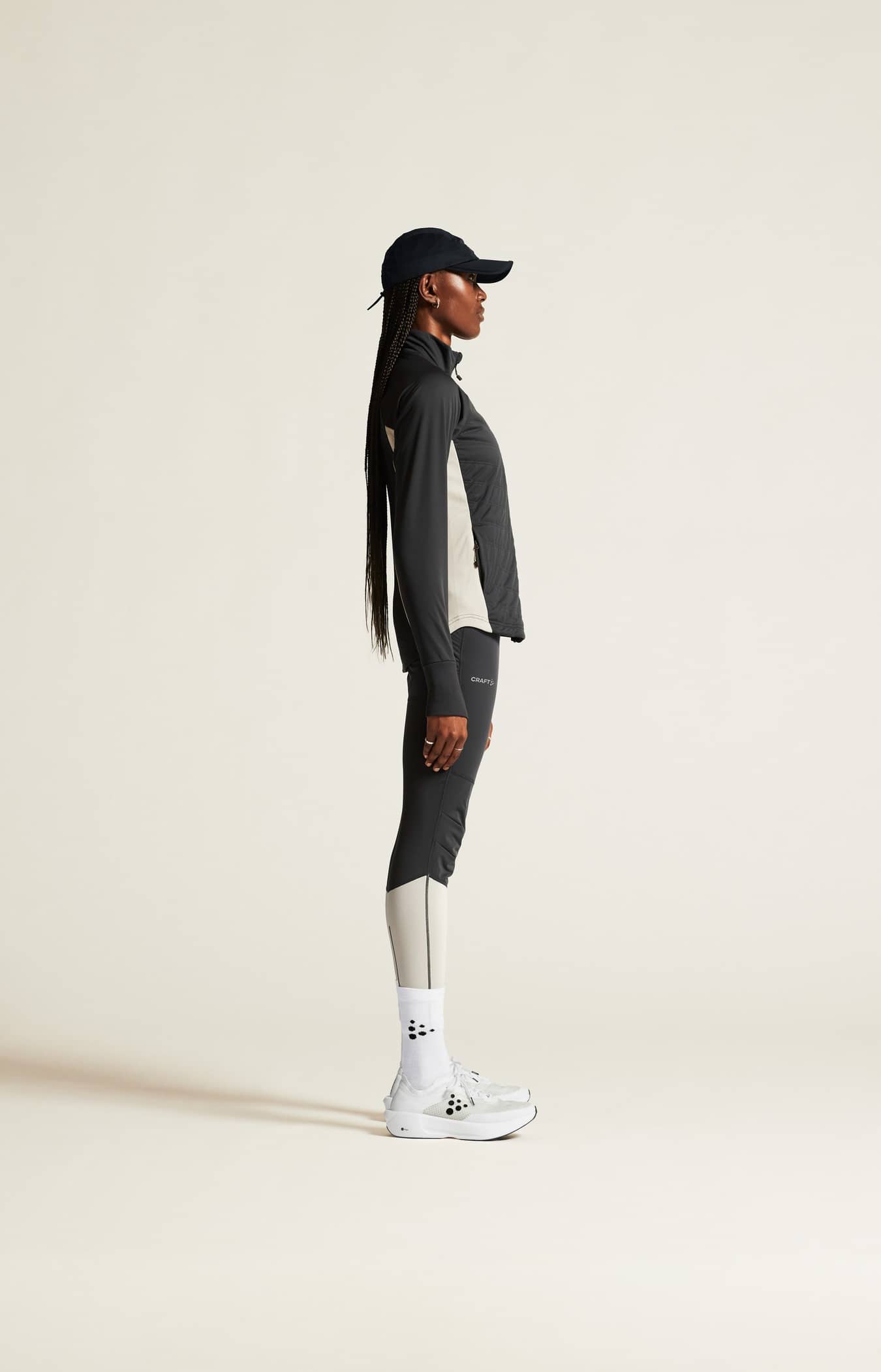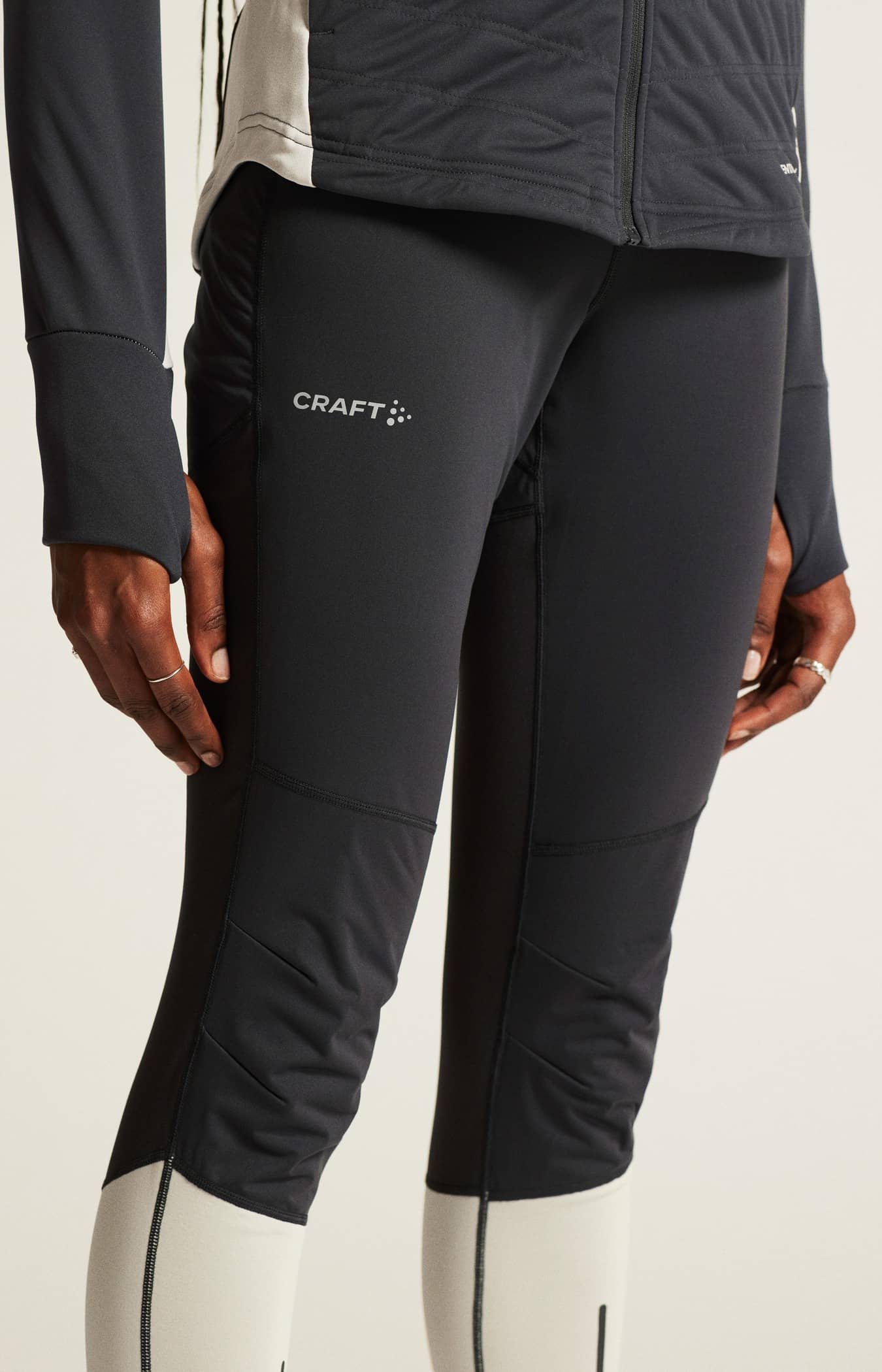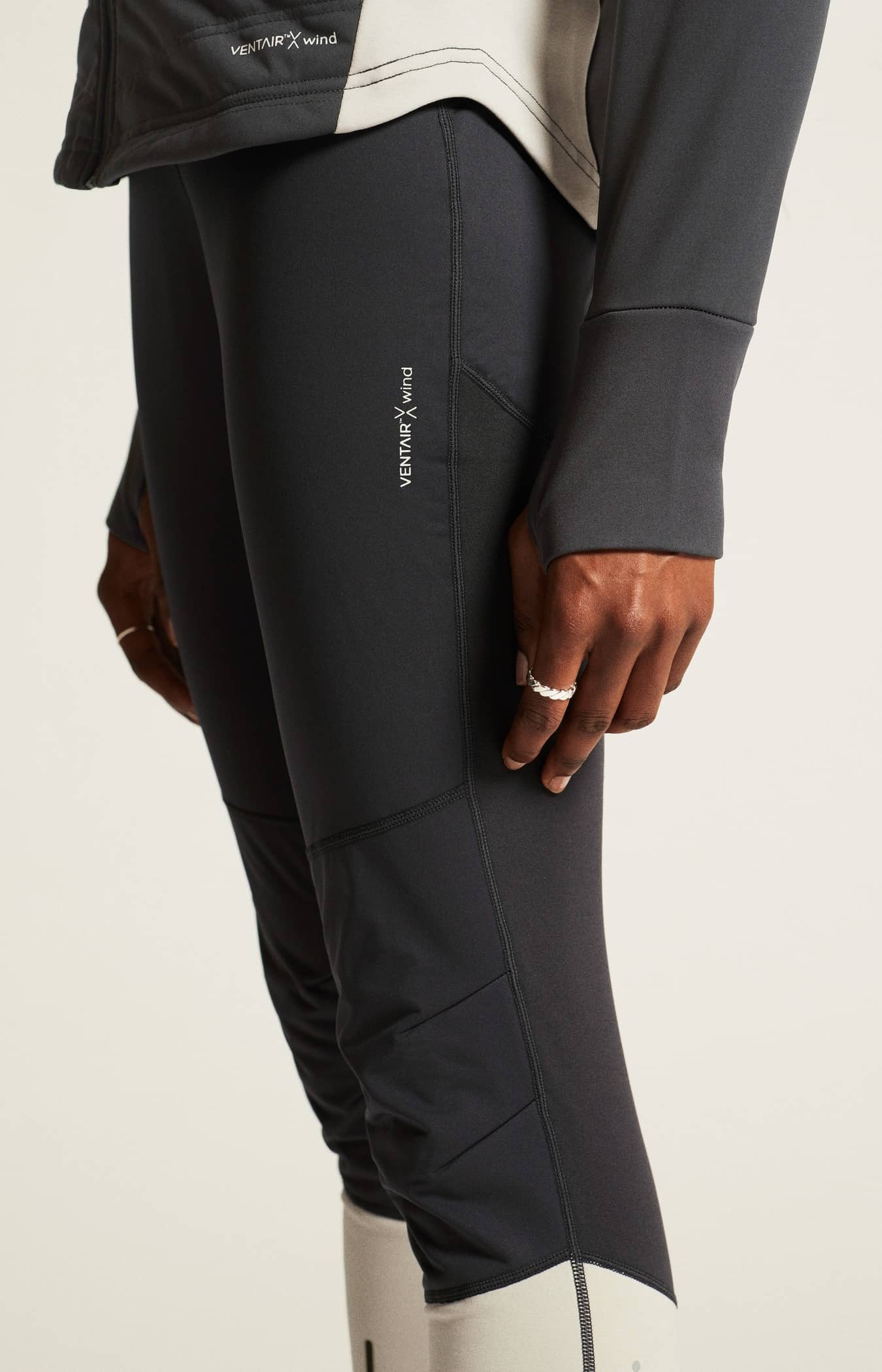 Trainingstights mit winddichter Front aus weichem Jersey mit gebürsteter Innenseite für zusätzliche Wärme.