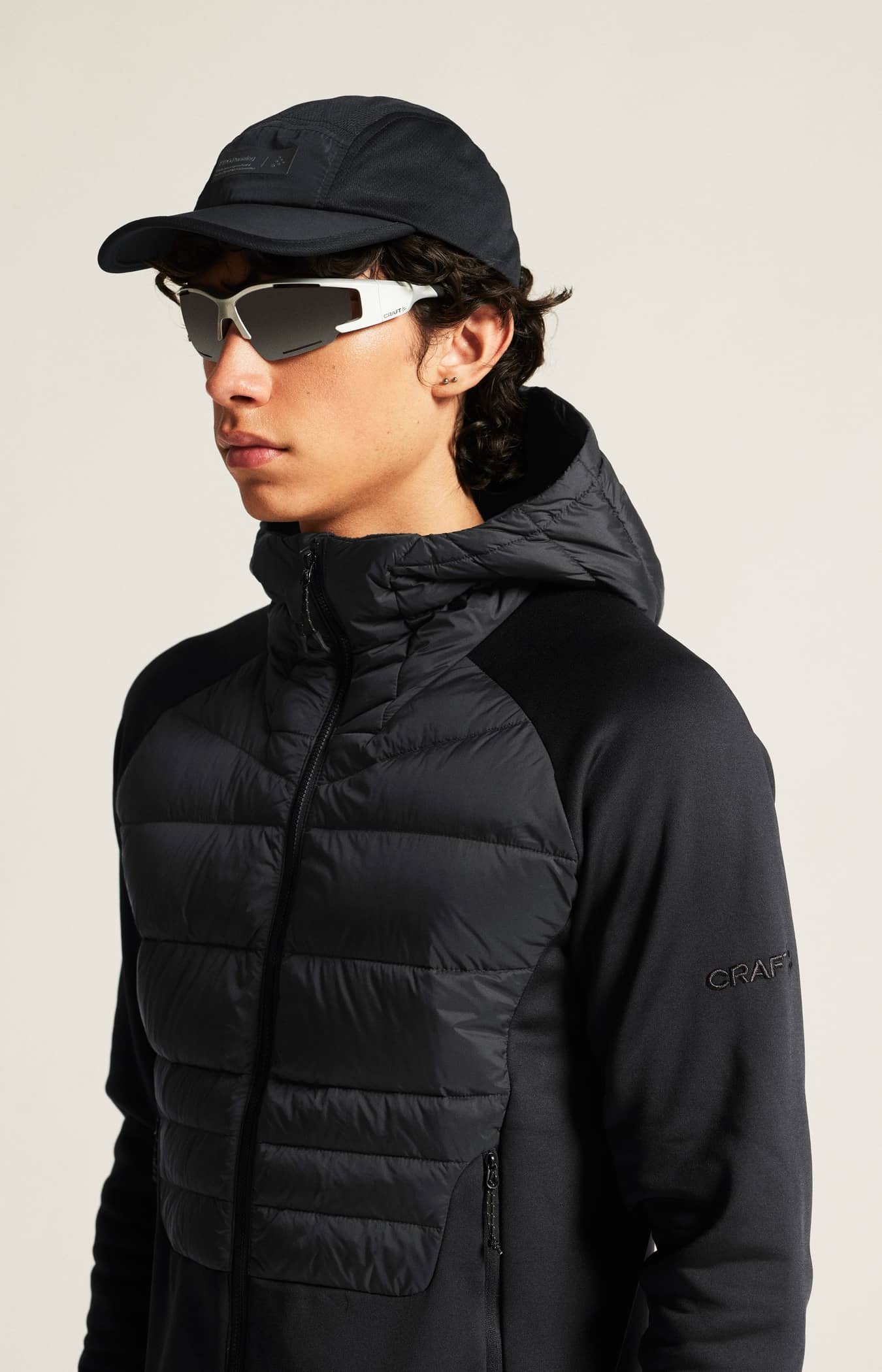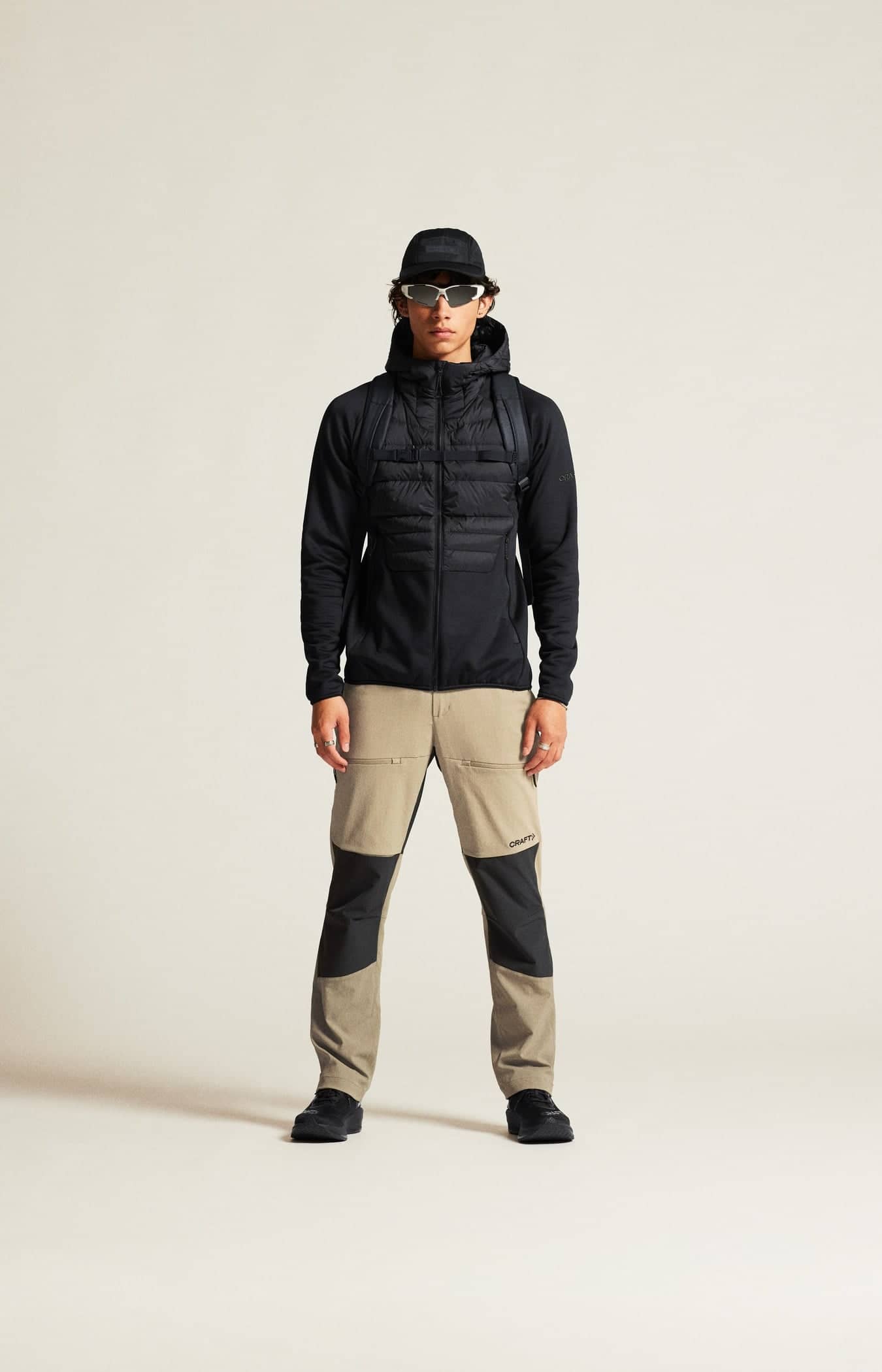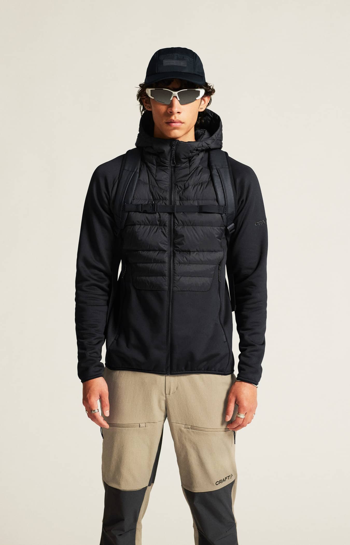 • Wasserabweisender Ripstop-Shell-Stoff aus recyceltem Polyester an Oberkörper und Kapuze