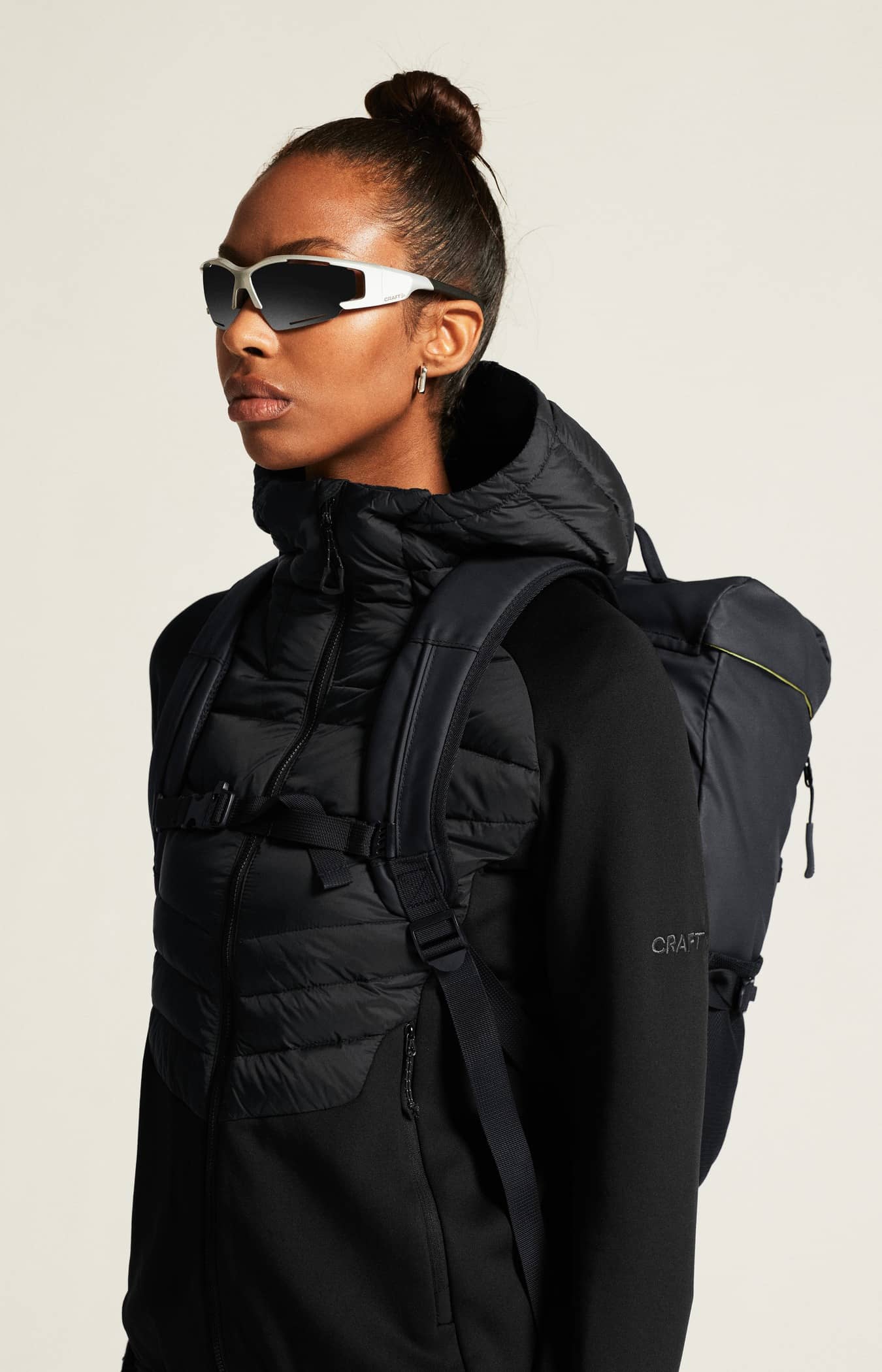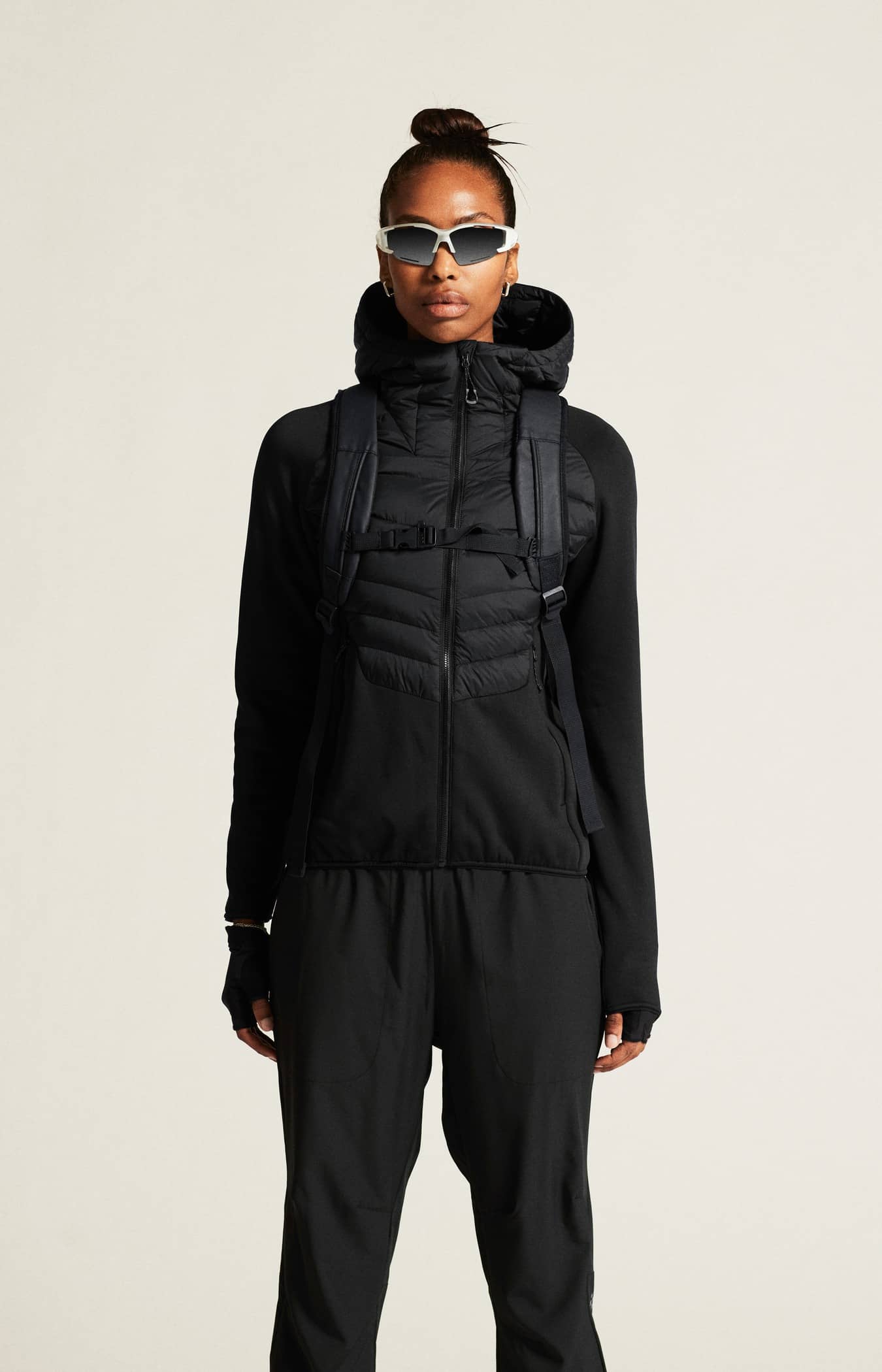 • Wasserabweisender Ripstop-Shell-Stoff aus recyceltem Polyester an Oberkörper und Kapuze