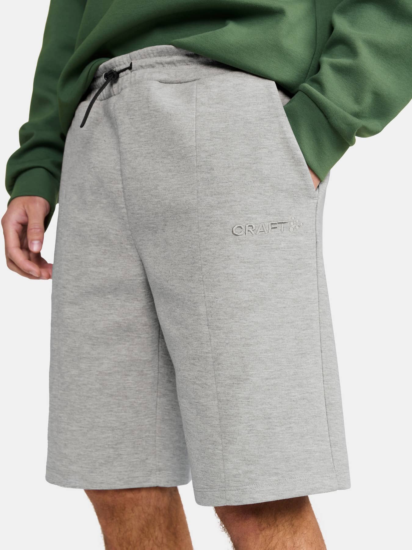 Diese modernen Joggingshorts bestehen aus einem hochwertigen Stoff mit glatter Baumwolle außen und weichem Polyester innen. Das Ergebnis ist ein äußerst bequemes Teil, das bei entspannten Alltagsaktivitäten glänzt. Mit ihrem skandinavischen, minimalistischen Design passen die Joggingshorts perfekt zu einer Vielzahl anderer Sport- und Trainingsbekleidung. Darüber hinaus verfügen die Shorts über einen elastischen Bund mit verstellbarem Kordelzug, Frontfalten und zwei Seitentaschen. Das gestickte Logo verleiht dem Kleidungsstück ein hochwertiges Gefühl und Aussehen.