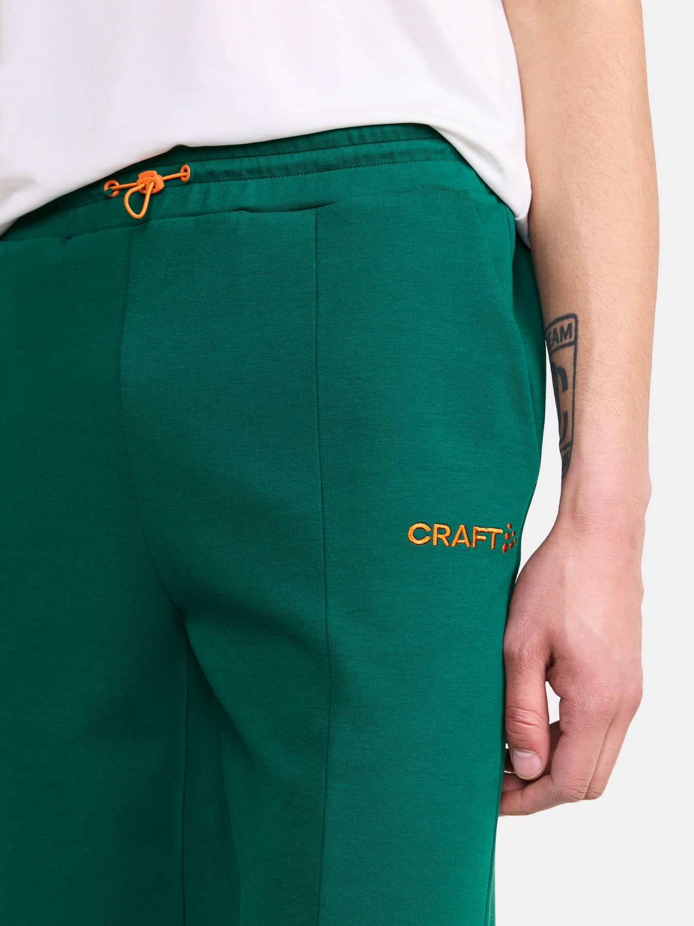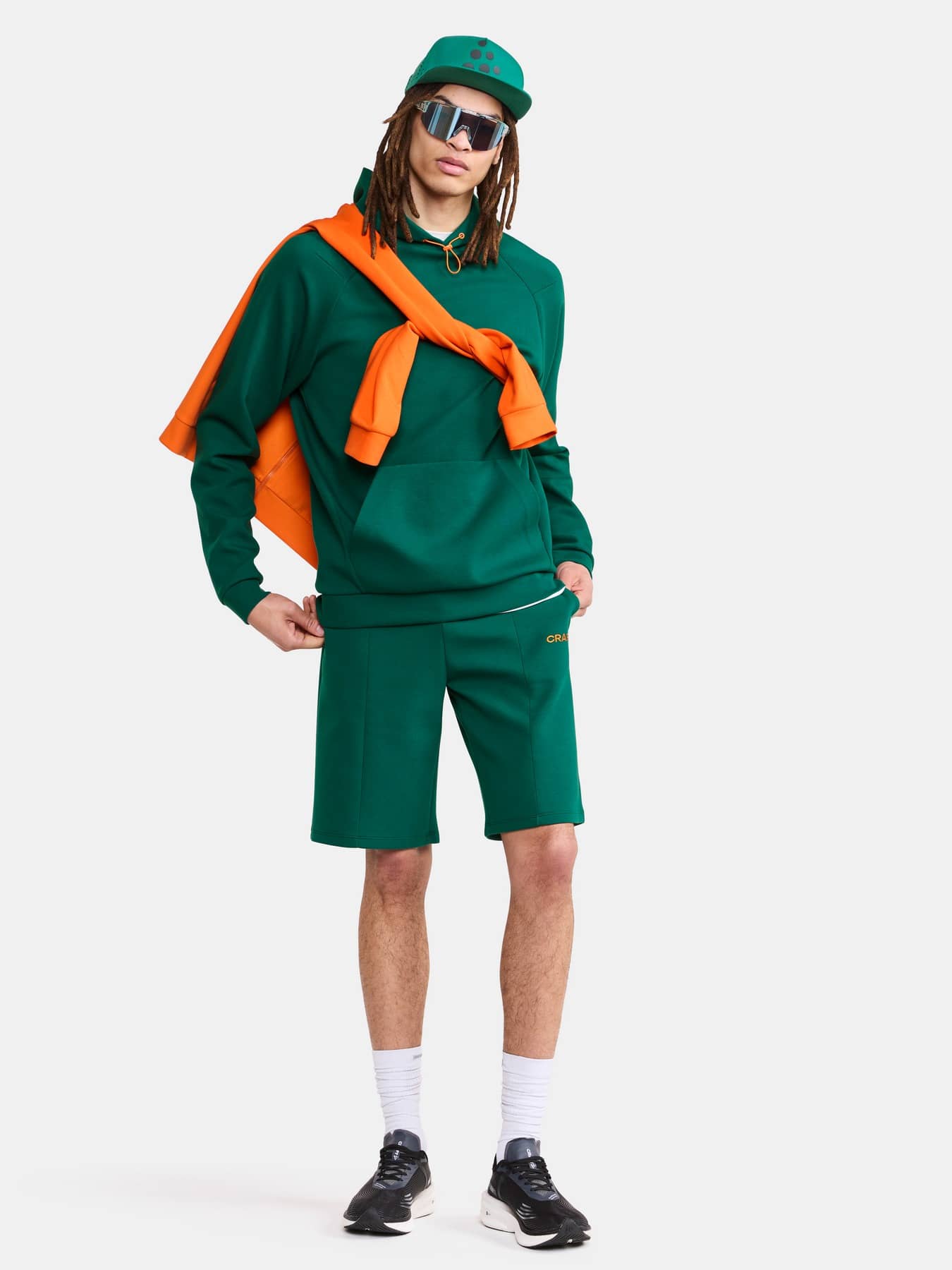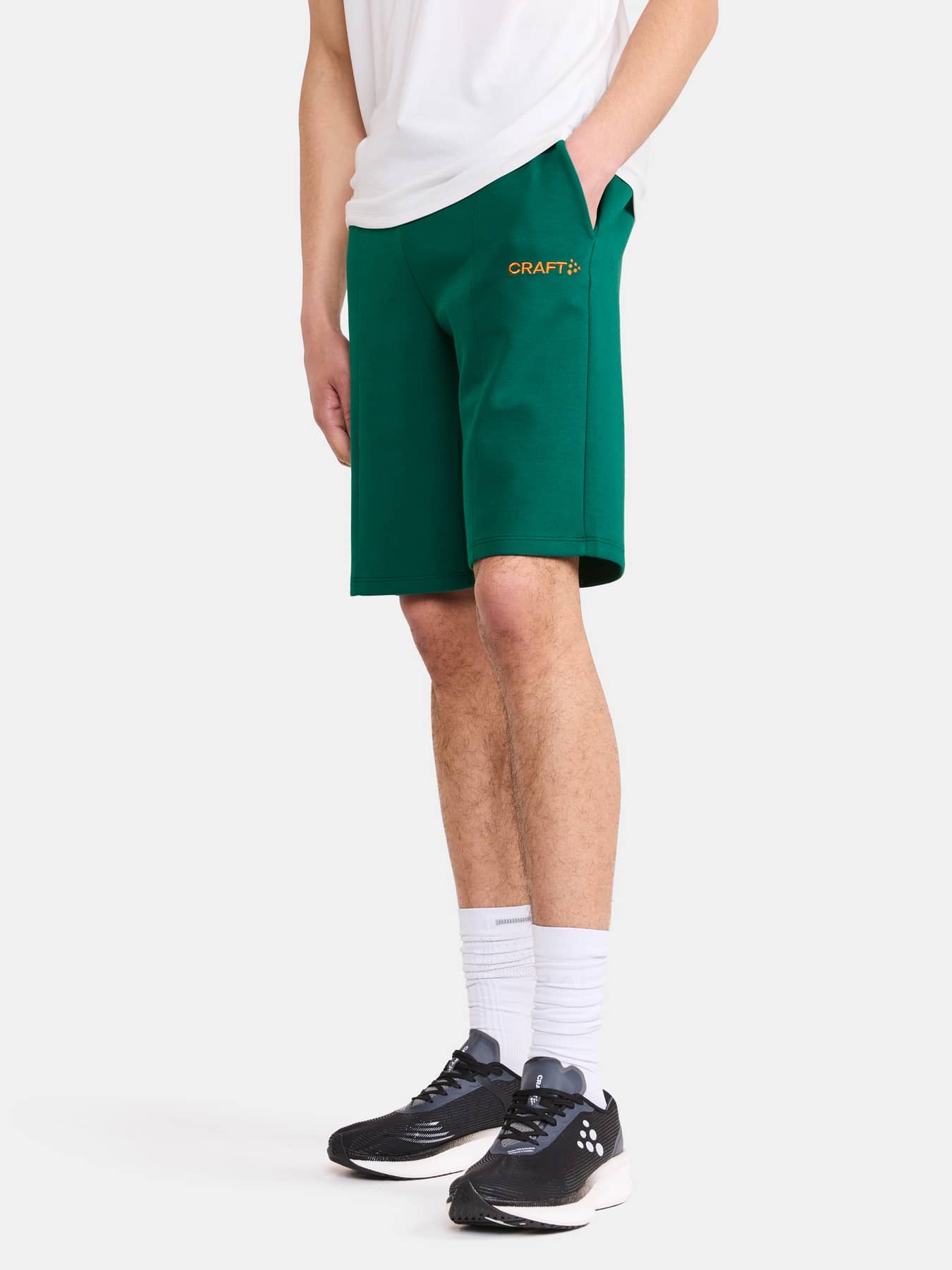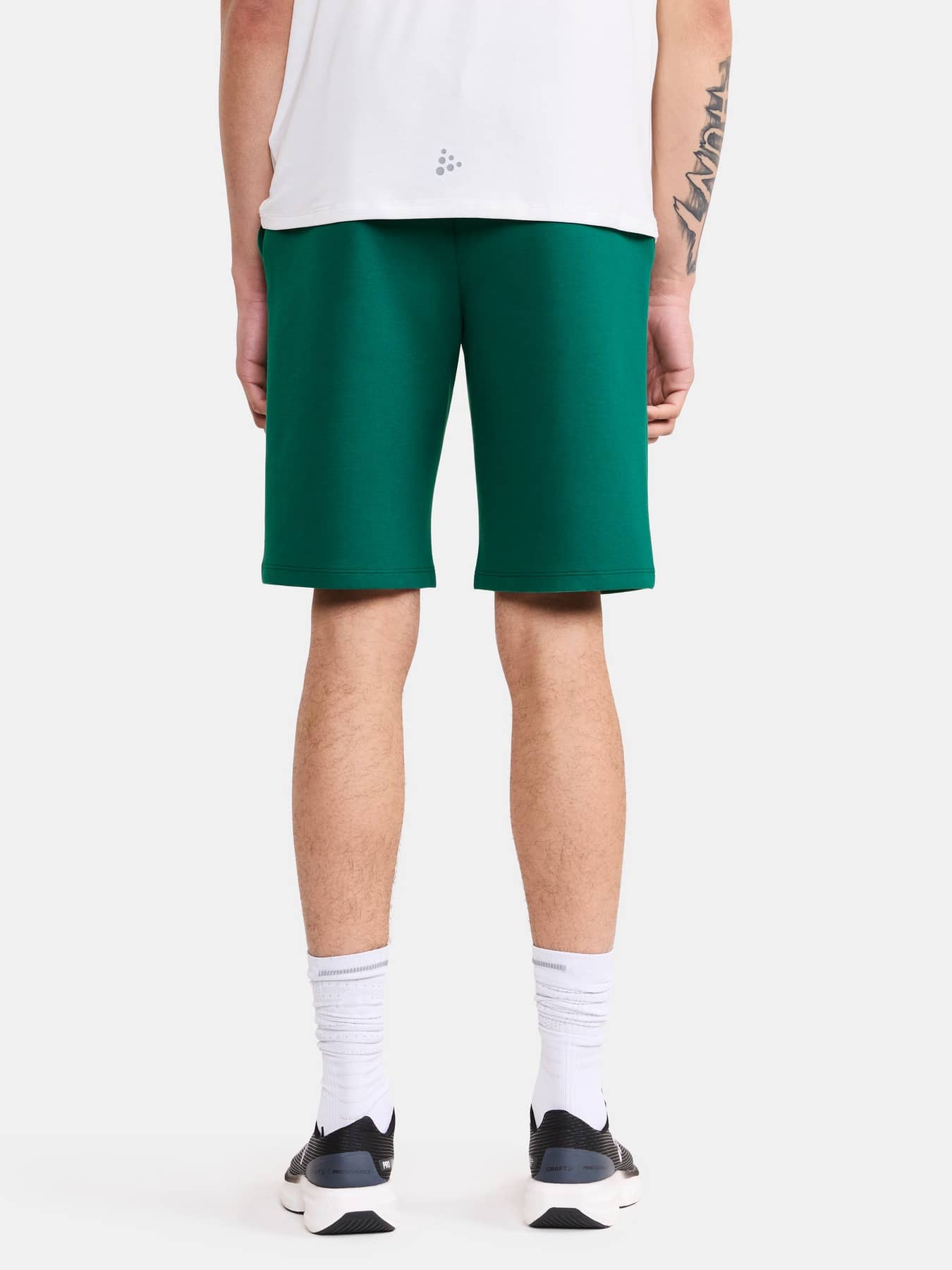 Diese modernen Joggingshorts bestehen aus einem hochwertigen Stoff mit glatter Baumwolle außen und weichem Polyester innen. Das Ergebnis ist ein äußerst bequemes Teil, das bei entspannten Alltagsaktivitäten glänzt. Mit ihrem skandinavischen, minimalistischen Design passen die Joggingshorts perfekt zu einer Vielzahl anderer Sport- und Trainingsbekleidung. Darüber hinaus verfügen die Shorts über einen elastischen Bund mit verstellbarem Kordelzug, Frontfalten und zwei Seitentaschen. Das gestickte Logo verleiht dem Kleidungsstück ein hochwertiges Gefühl und Aussehen.