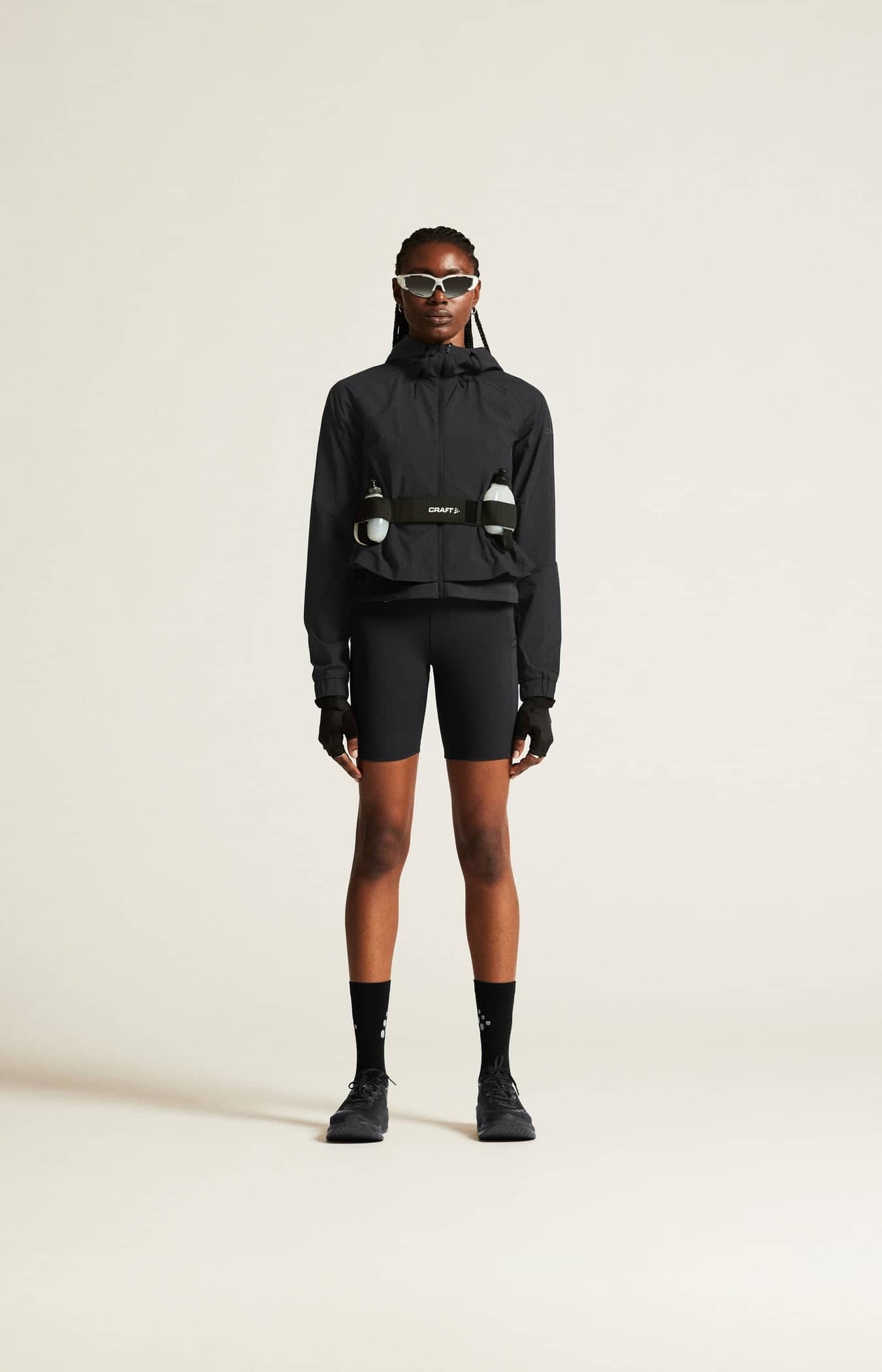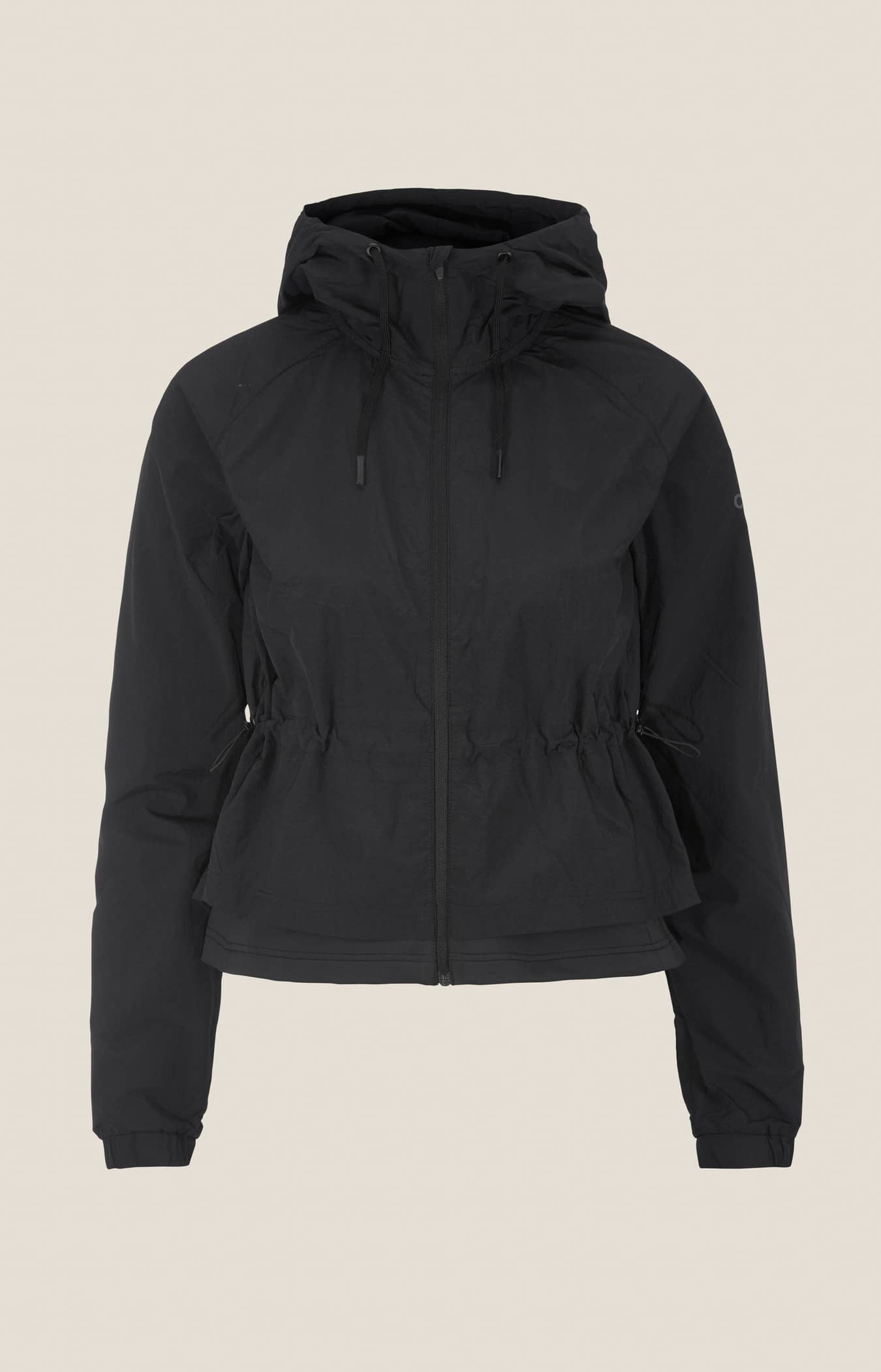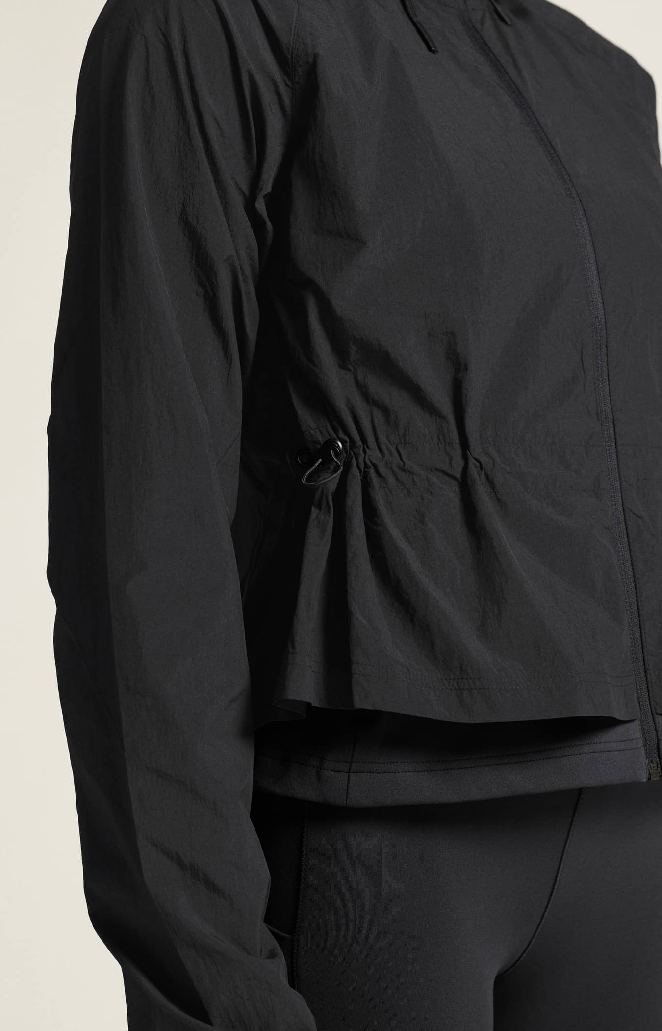 Diese moderne Windjacke ist aus dünnem und leichtem Stoff gefertigt und verfügt über ein funktionelles Netzfutter, das einen hervorragenden Feuchtigkeitstransport für optimalen Tragekomfort bietet. Eine weite Form kombiniert mit einem Gummizug in der Taille und einem eng anliegenden Jersey-Mieder im unteren Bereich sorgt für eine umwerfend feminine Silhouette. Außerdem verfügt die Windjacke über eine Kapuze mit verstellbarer Kordel und zwei verdeckte Reißverschlusstaschen zur sicheren Aufbewahrung von Schlüsseln und anderen Utensilien.
