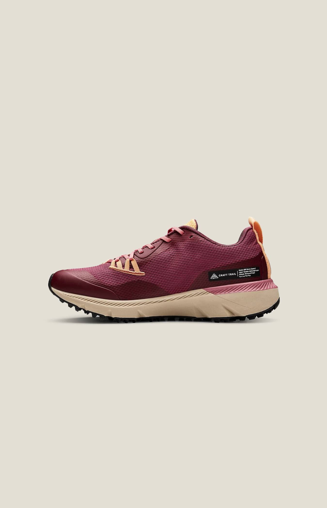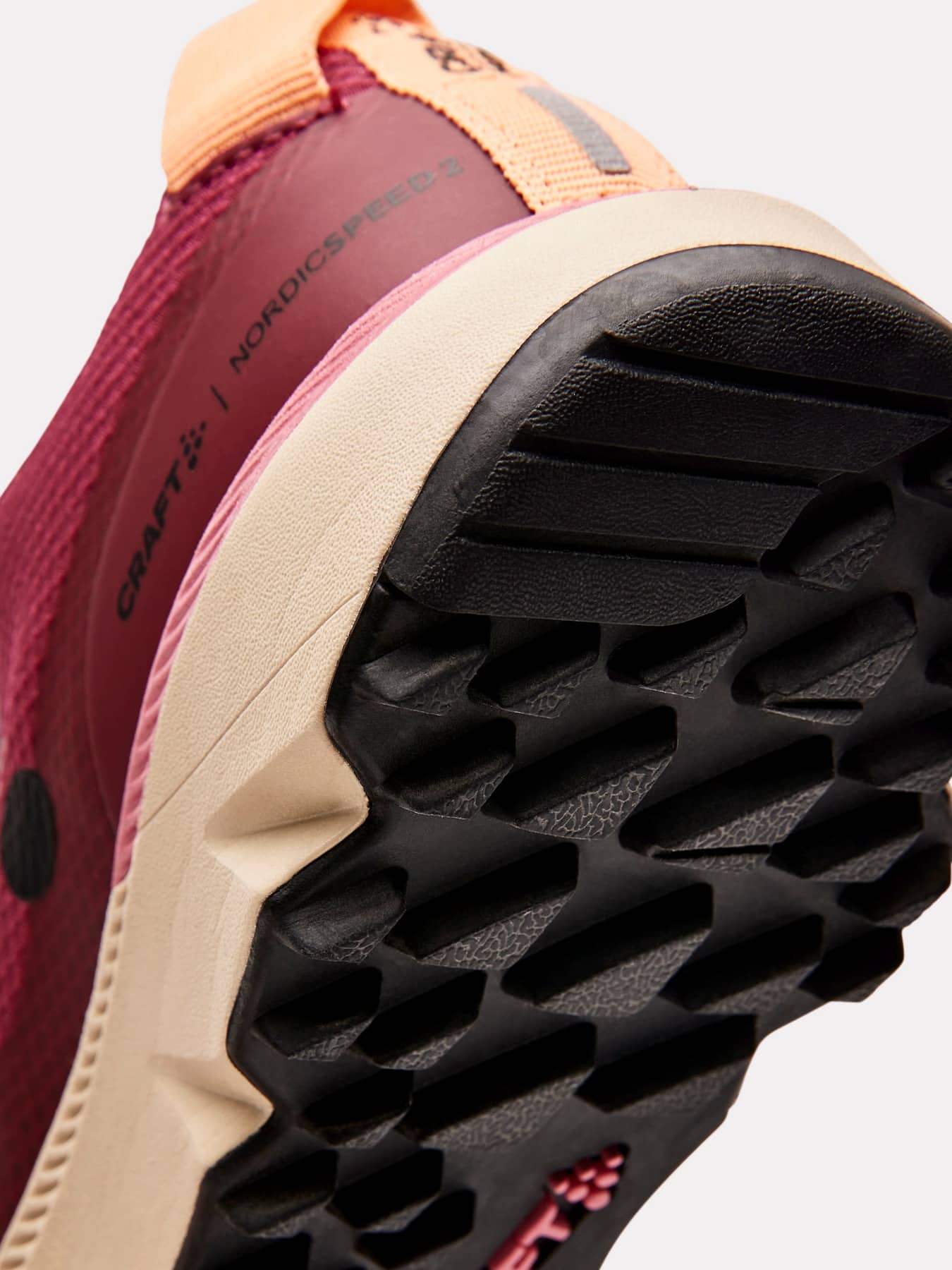 • Das strukturierte dreieckige Profil der Sohle sorgt für Traktion und Flexibilität, während die entkoppelte Ferse für eine bessere Gewichtsverteilung sorgt