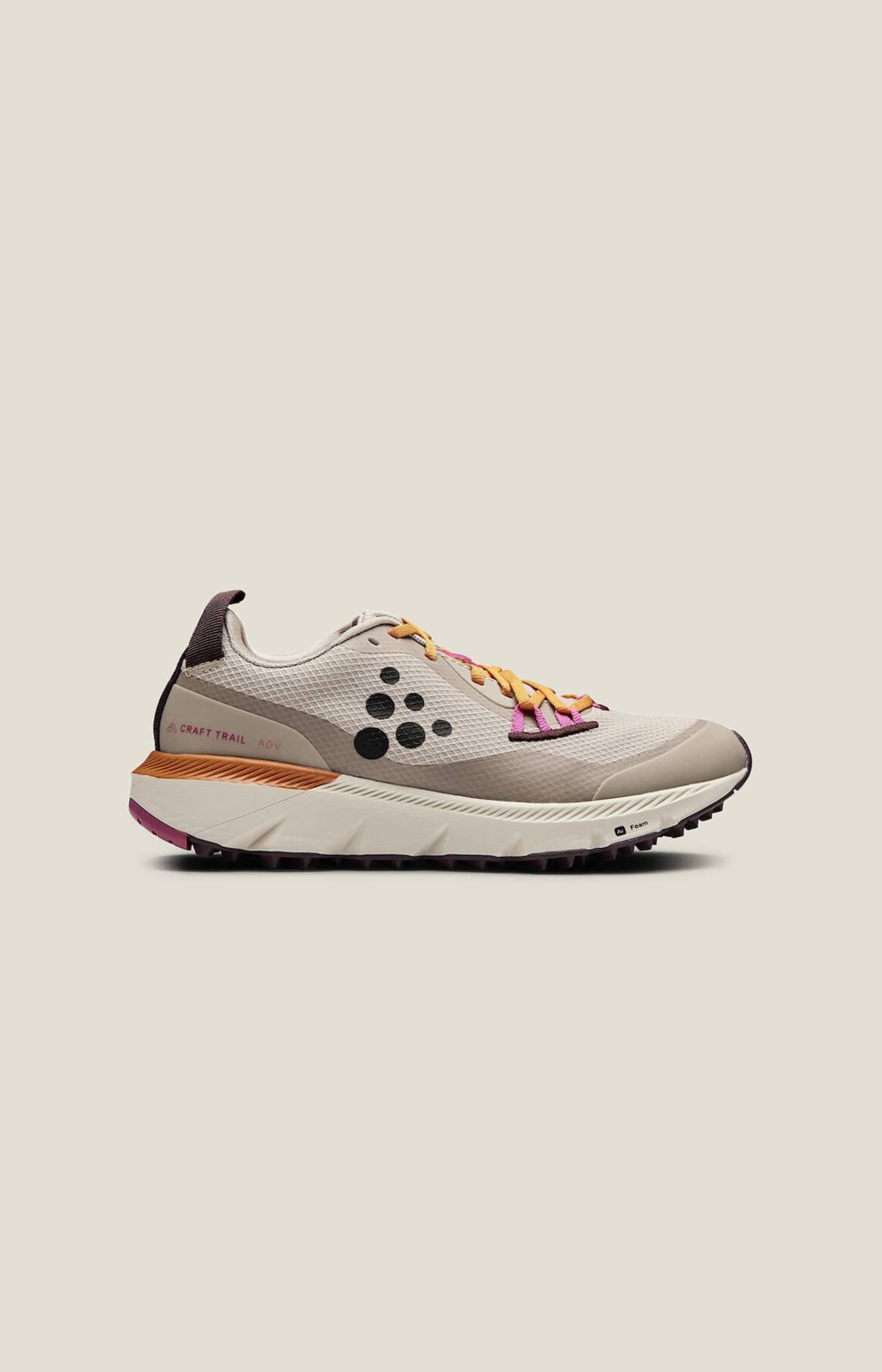 • Das strukturierte dreieckige Profil der Sohle sorgt für Traktion und Flexibilität, während die entkoppelte Ferse für eine bessere Gewichtsverteilung sorgt
