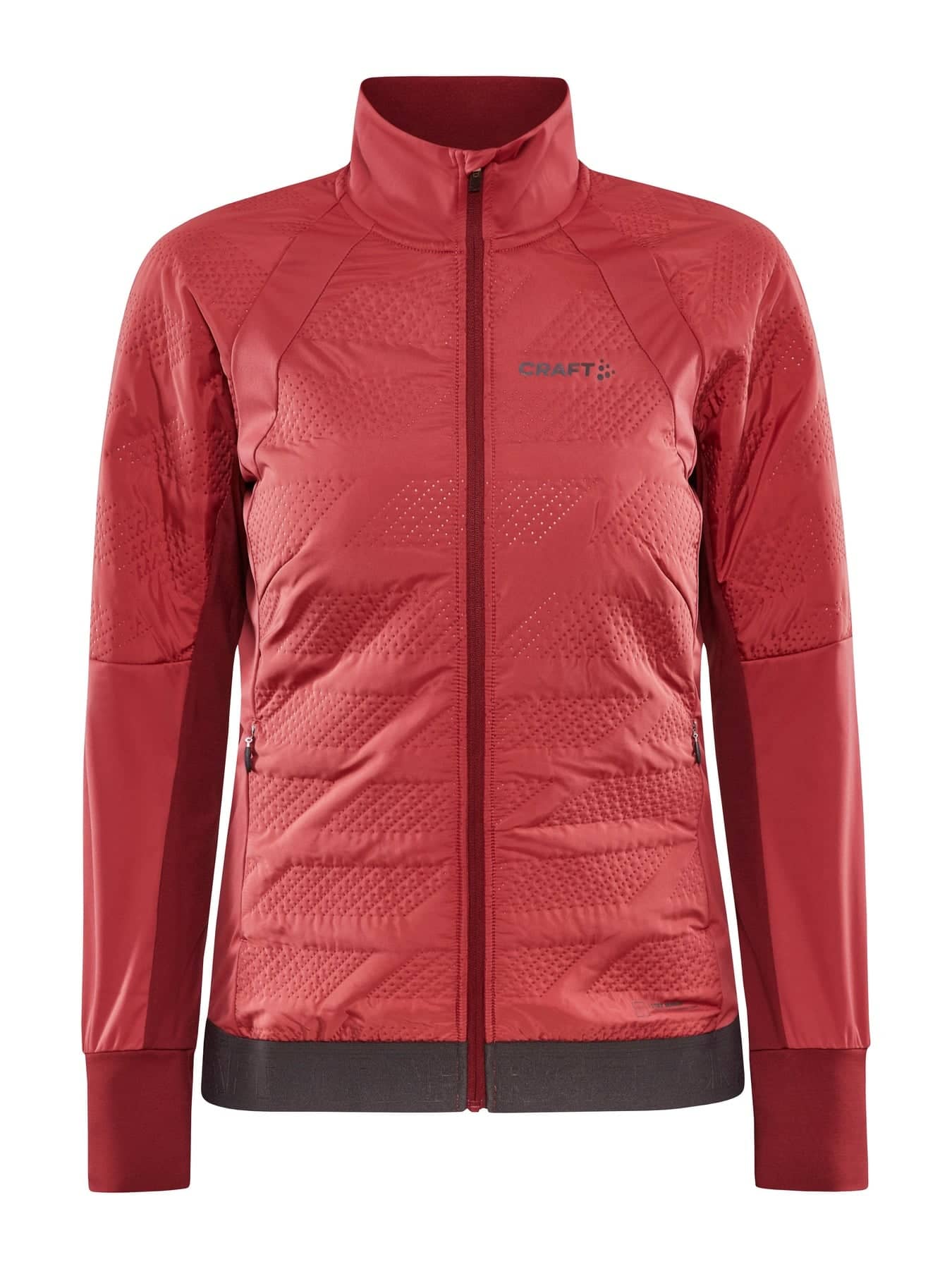 Nordic Ski Jacke mit leichter Wattierung auf der Vorderseite für intensives Training bei kälteren Bedingungen. Die Jacke ist aus wind- und wasserdichtem Material auf der Vorderseite und mit gebürstetem Jersey auf der Rückseite und unter den Ärmeln ausgestattet, um ein effizientes Körpertemperaturmanagement zu ermöglichen. Vorne leicht wattiert für zusätzliche Wärme.
