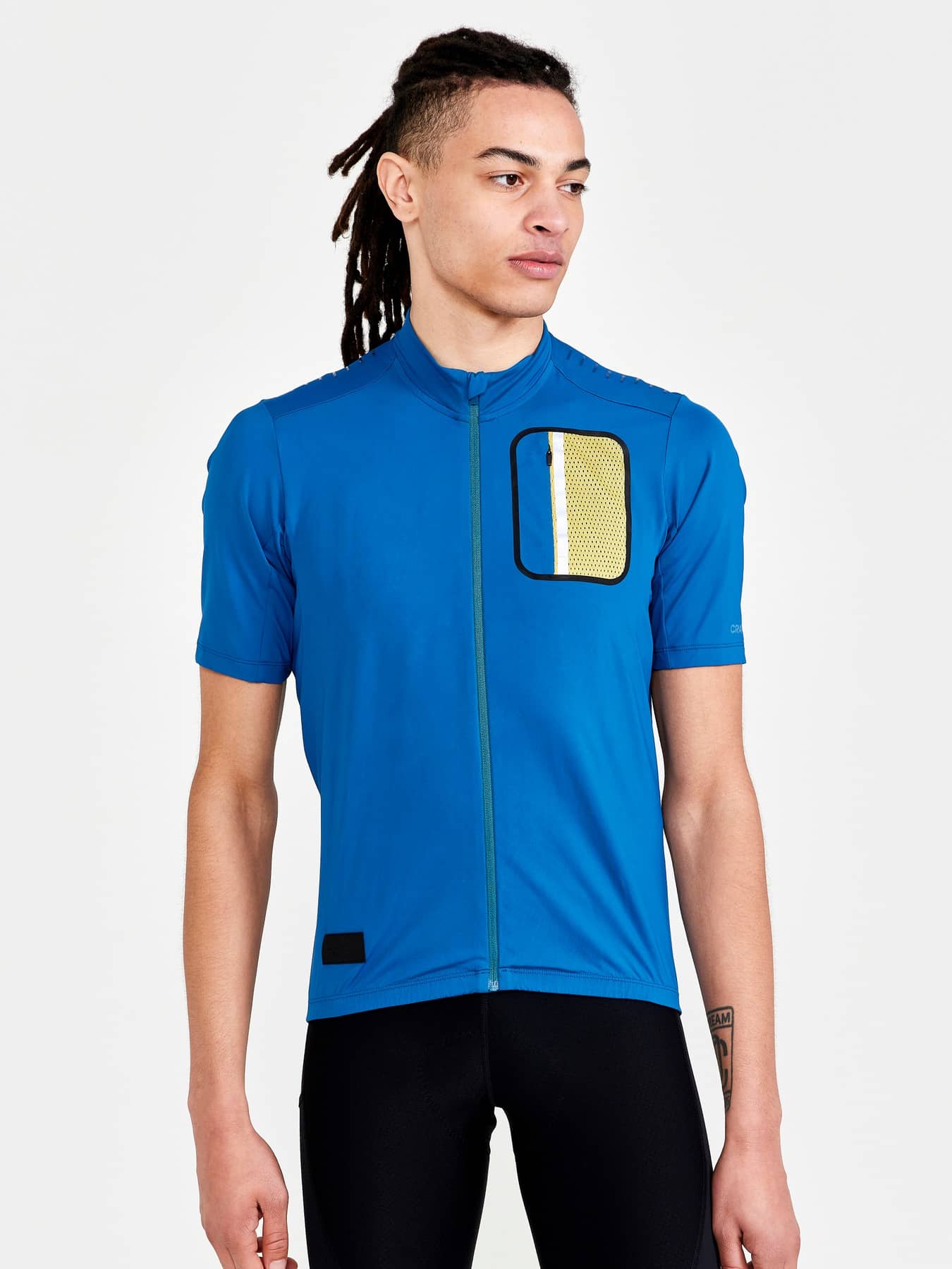 • Silikonband am hinteren unterem Saum hält das Trikot an Ort und Stelle