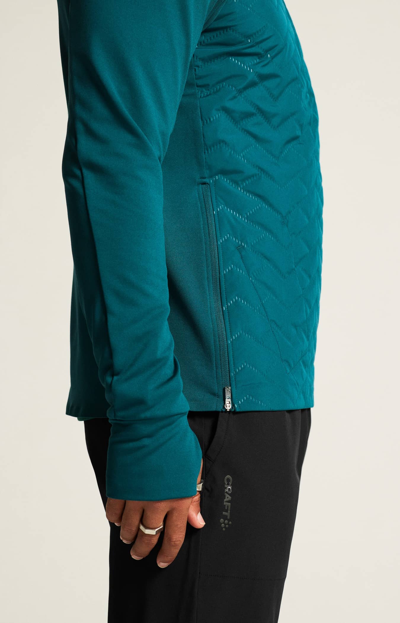 • Gebürstetes Trikot an Ärmeln und Rücken für Wärme und Komfort