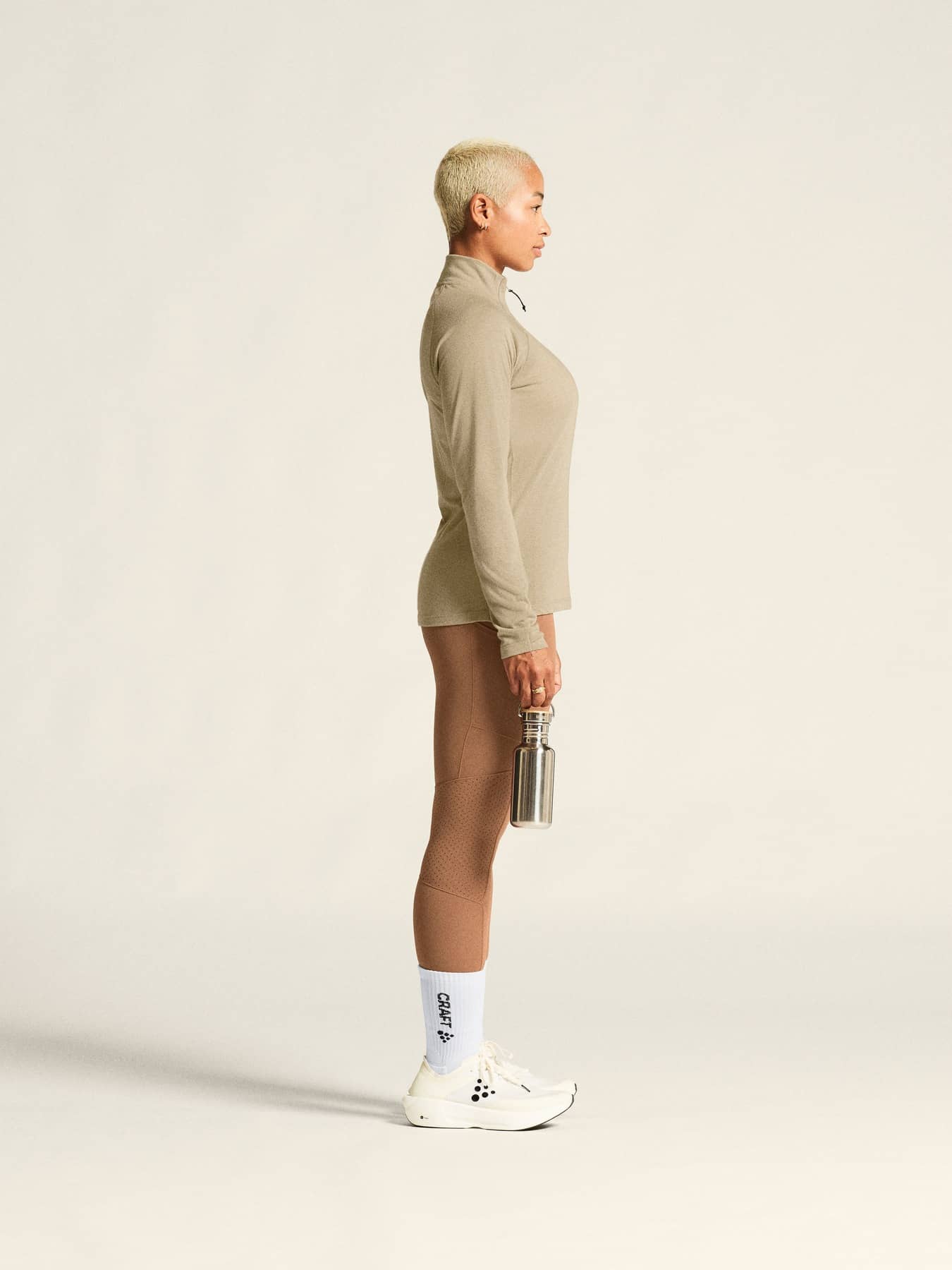 Body: 80% Polyester (recycelt) 20% Wolle (Merino) Einsatz Rückseite: 93% Polyester (recycelt) 7% Elastan