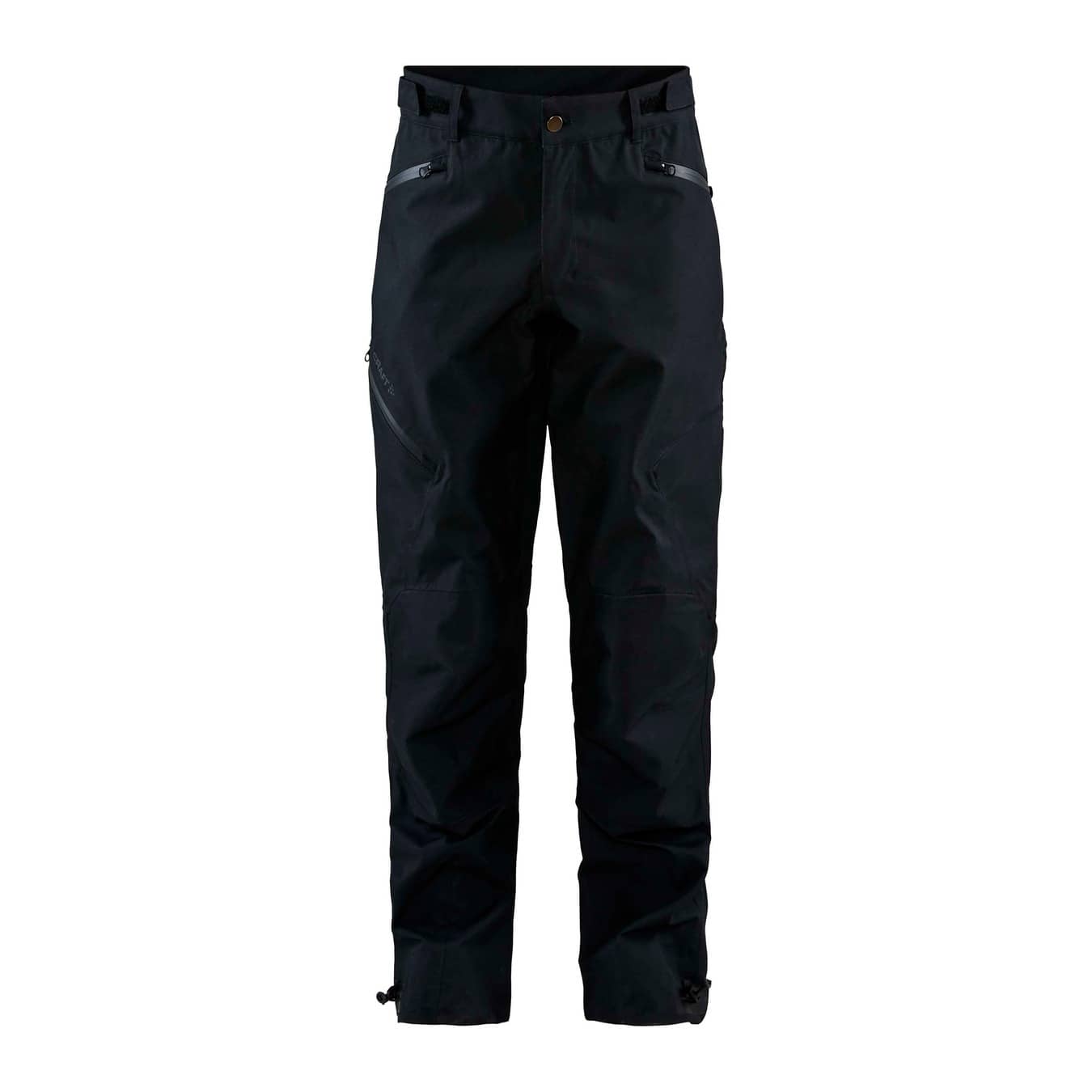 Die 2 Fronttaschen sowie 1 Seitentasche am rechten Oberschenkel verfügen über wasserabweisende Reißverschlüsse. Die Beinabschlüsse lassen sich über einen Kordelzug anpassen.