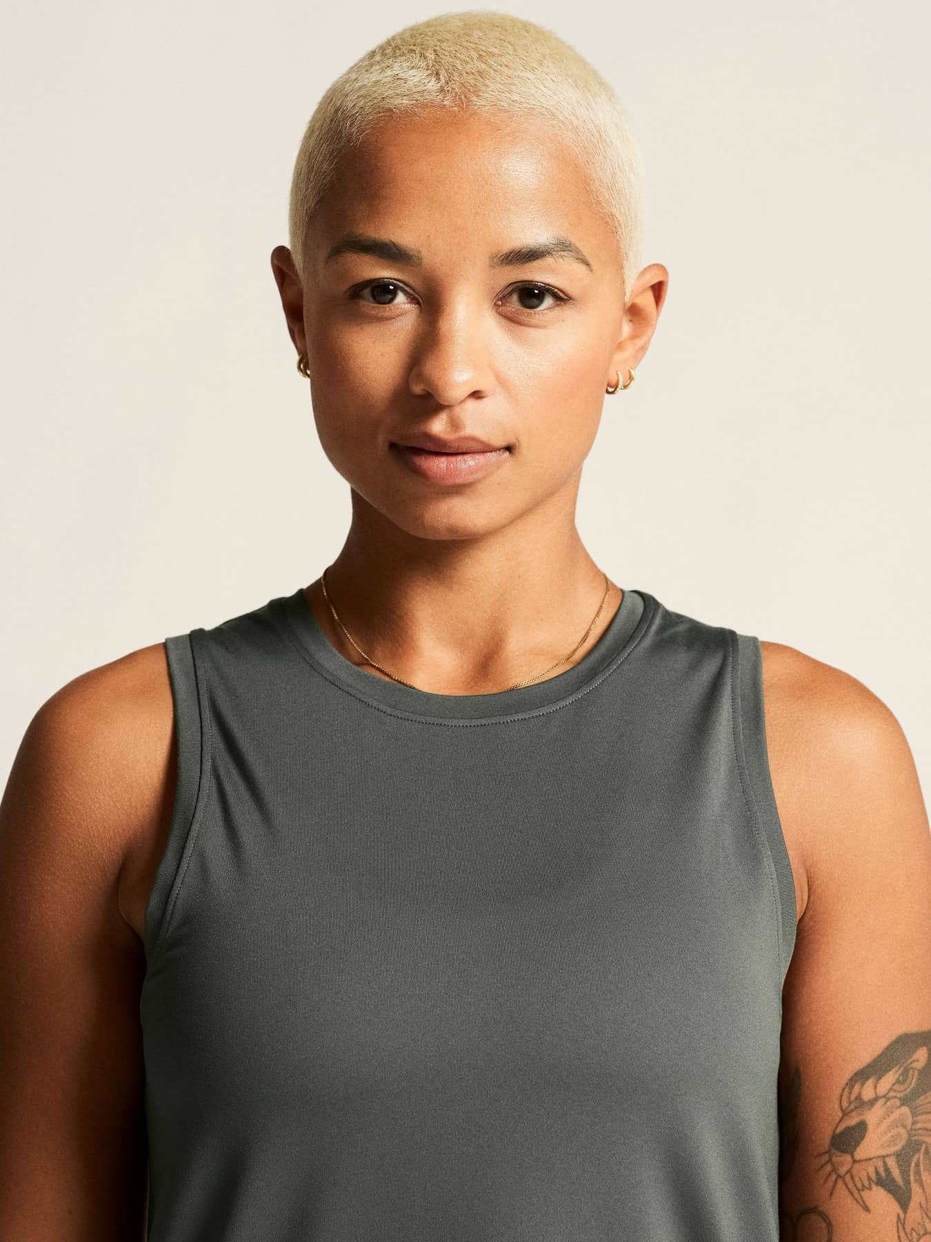 Dieses vielseitige Trainingssinglet wurde für ultimativen Komfort entworfen und besteht aus einem Elastischen Polyester-Mischgewebe mit aufgerauter Oberfläche, das sich luxuriös weich anfühlt und eine ausgezeichnete Regulierung der Körpertemperatur ermöglicht. Es hat außerdem einen Racer-Rücken und einen abgerundeten Saum für eine feminine Silhouette und verkörpert exquisite Verarbeitung in jedem Detail.