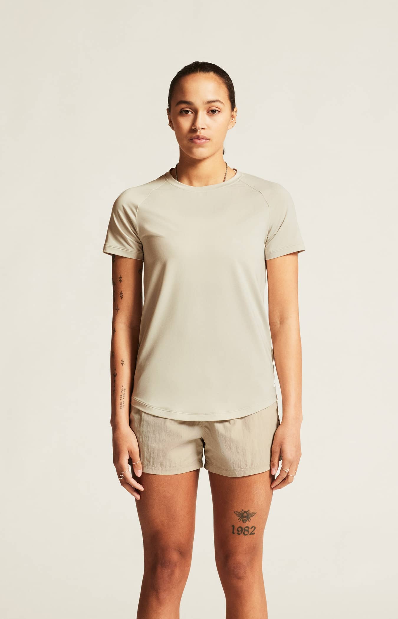 Dieses vielseitige Trainings-T-Shirt wurde für ultimativen Komfort entworfen und besteht aus einem Elastischen Polyester-Mischgewebe mit aufgerauter Oberfläche, das sich luxuriös weich anfühlt und eine ausgezeichnete Regulierung der Körpertemperatur ermöglicht. Es hat außerdem Raglan-Ärmel und einen abgerundeten Saum für eine feminine Silhouette und verkörpert exquisite Verarbeitung in jedem Detail.