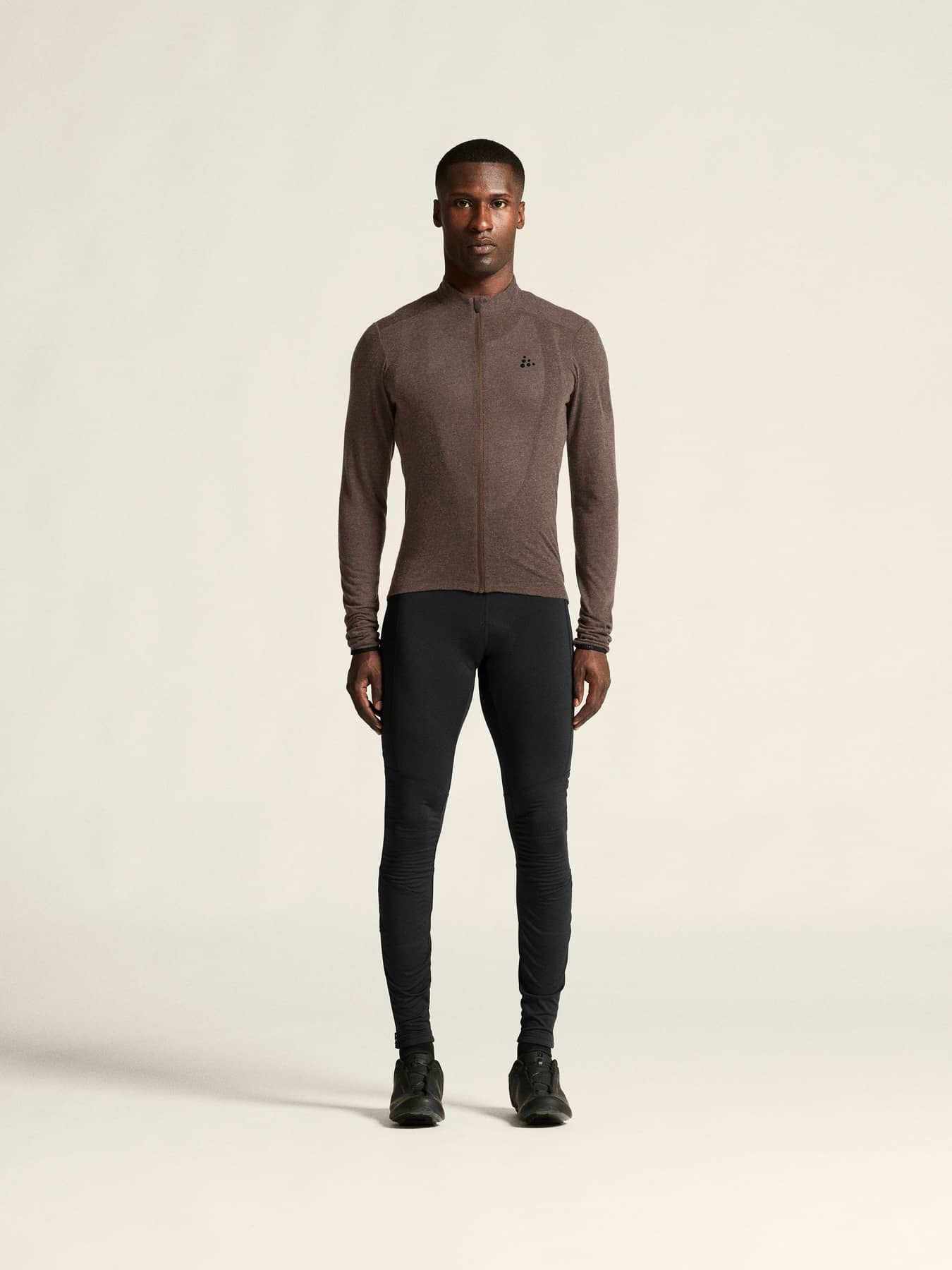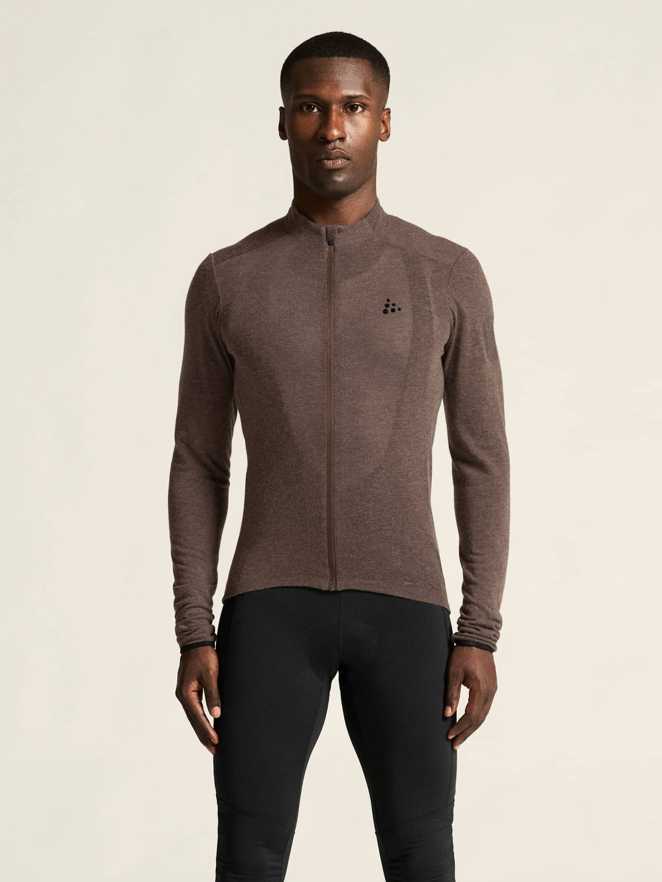 Dieses vielseitige Radtrikot besteht aus einem weichen, elastischen Material mit gebürsteter Innenseite aus Merinowolle und recyceltem Polyester. Die Merinowolle wärmt, während das Polyester für einen effizienten Feuchtigkeitstransport sorgt. Außerdem hat das Kleidungsstück vier Rückentaschen und einen elastischen Silikongriff am hinteren Saum für einen sicheren Sitz.