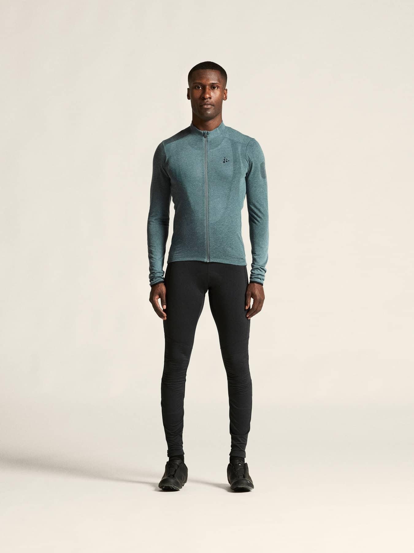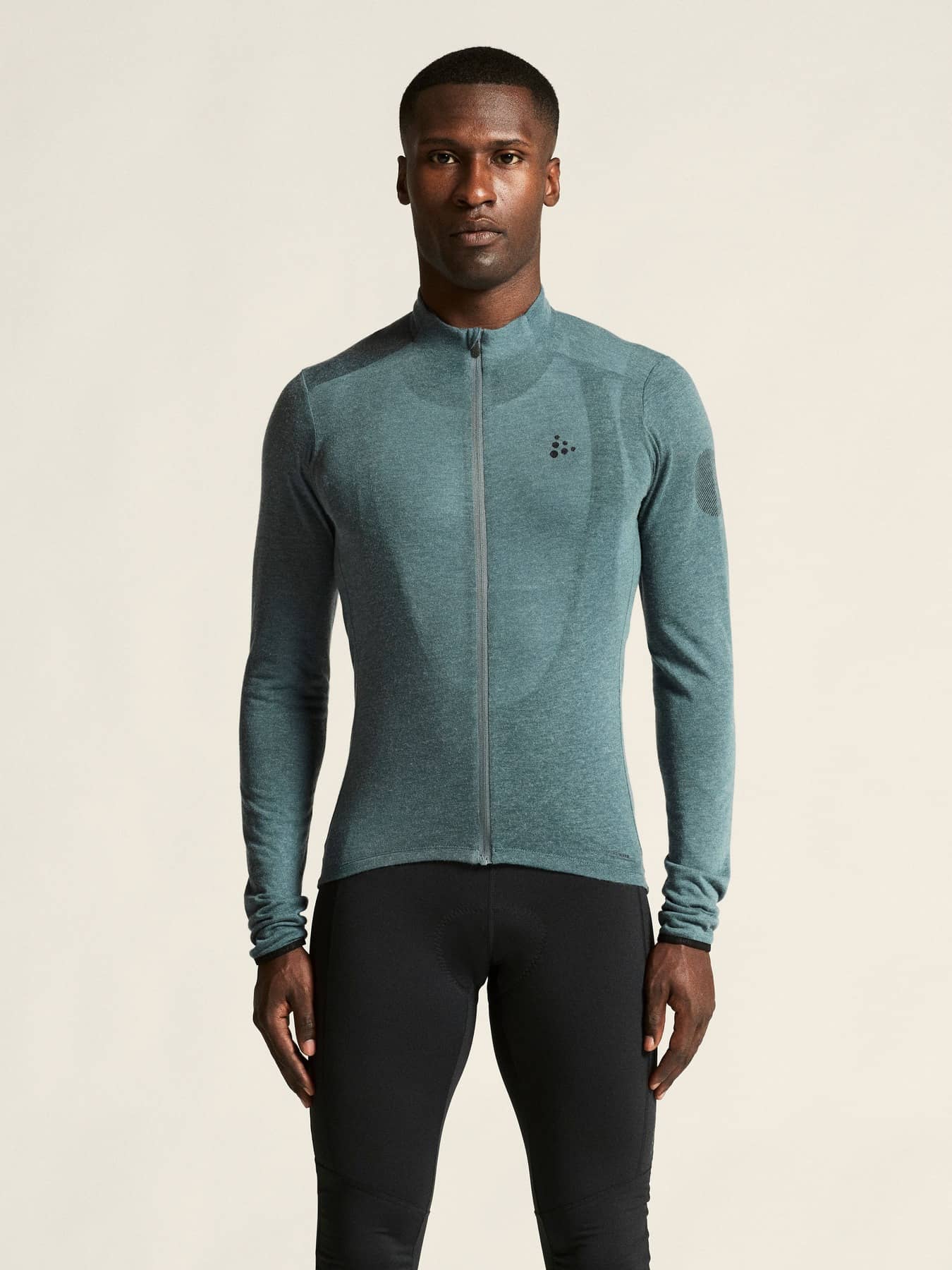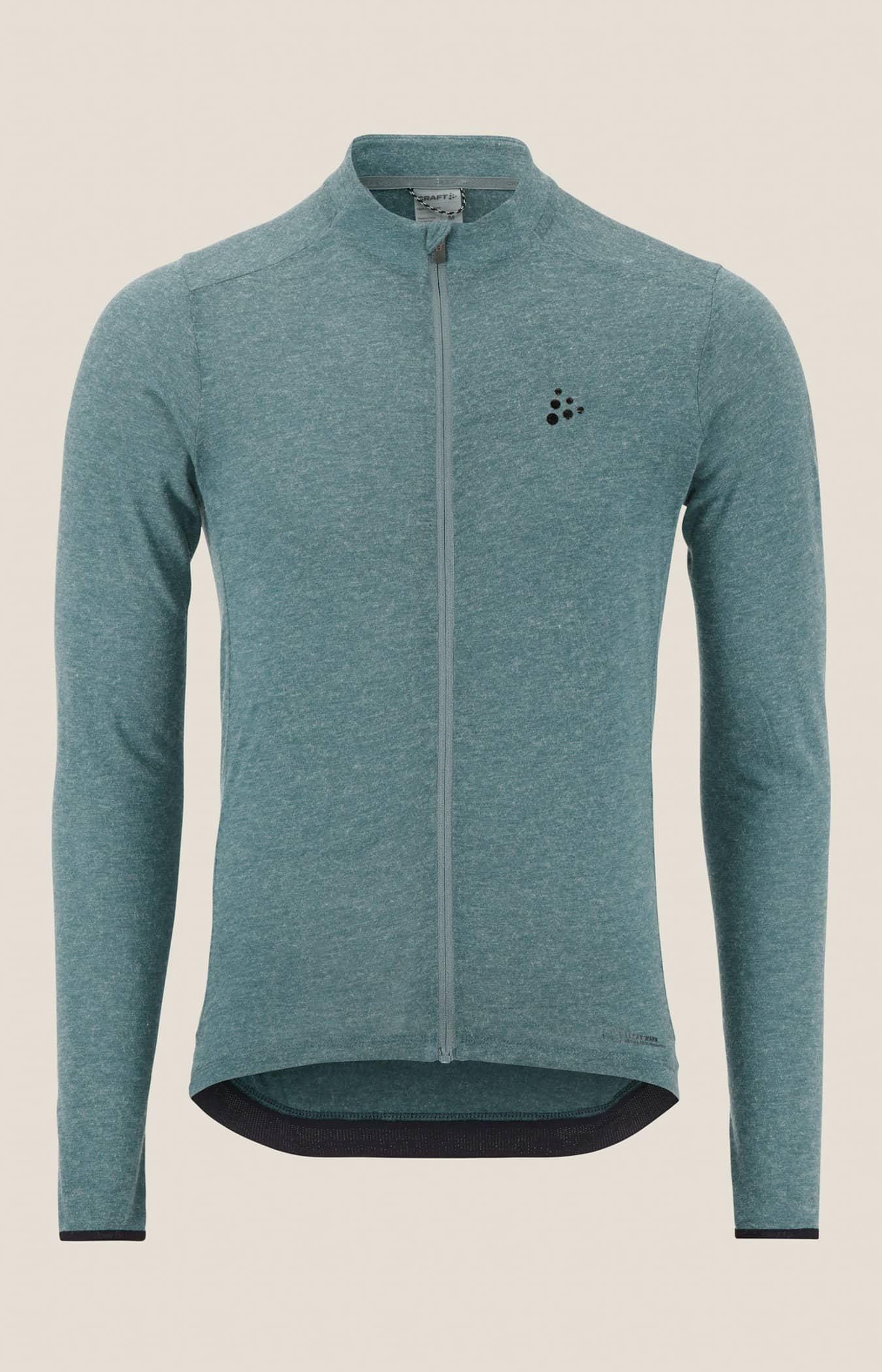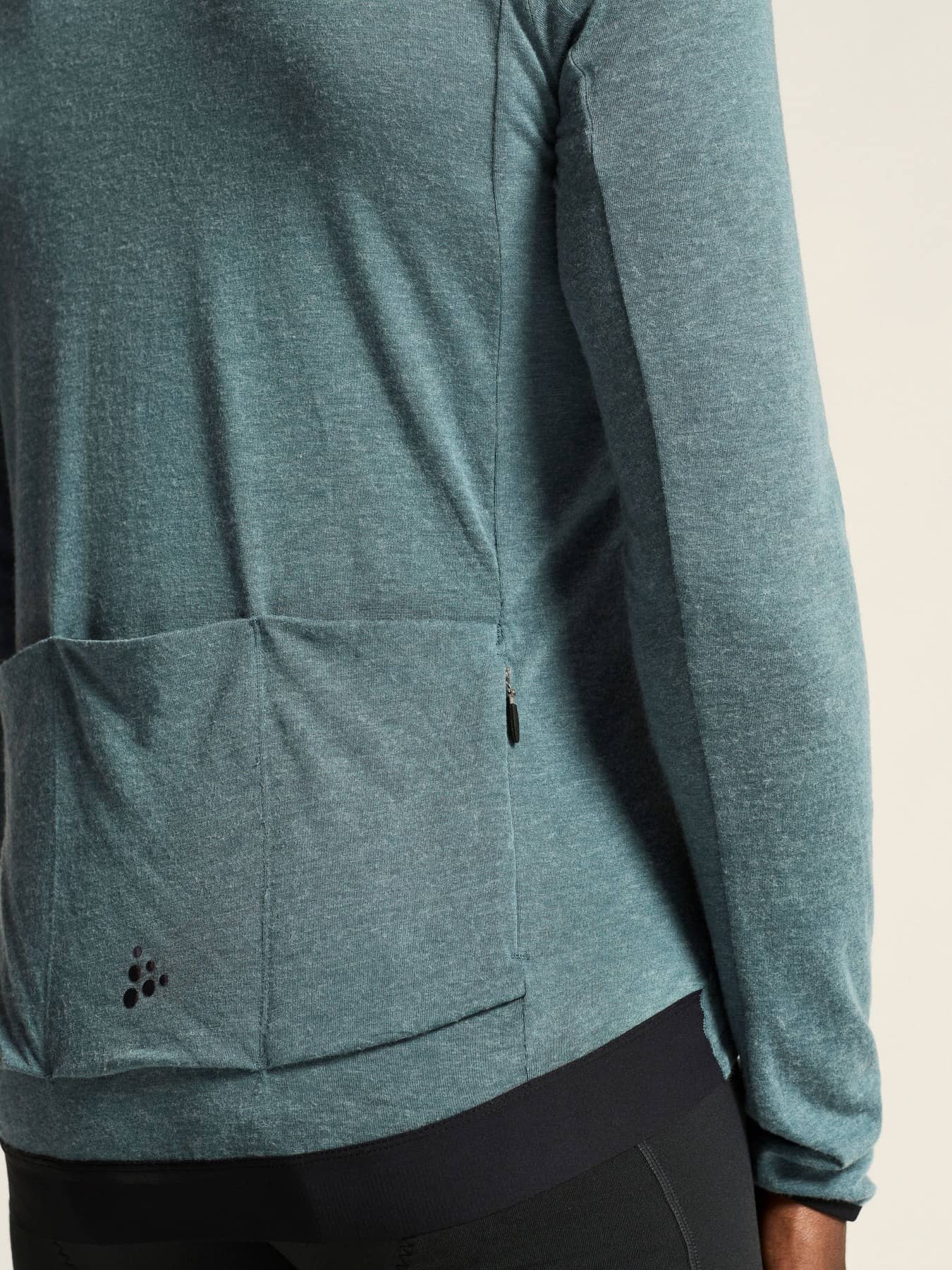 Dieses vielseitige Radtrikot besteht aus einem weichen, elastischen Material mit gebürsteter Innenseite aus Merinowolle und recyceltem Polyester. Die Merinowolle wärmt, während das Polyester für einen effizienten Feuchtigkeitstransport sorgt. Außerdem hat das Kleidungsstück vier Rückentaschen und einen elastischen Silikongriff am hinteren Saum für einen sicheren Sitz.