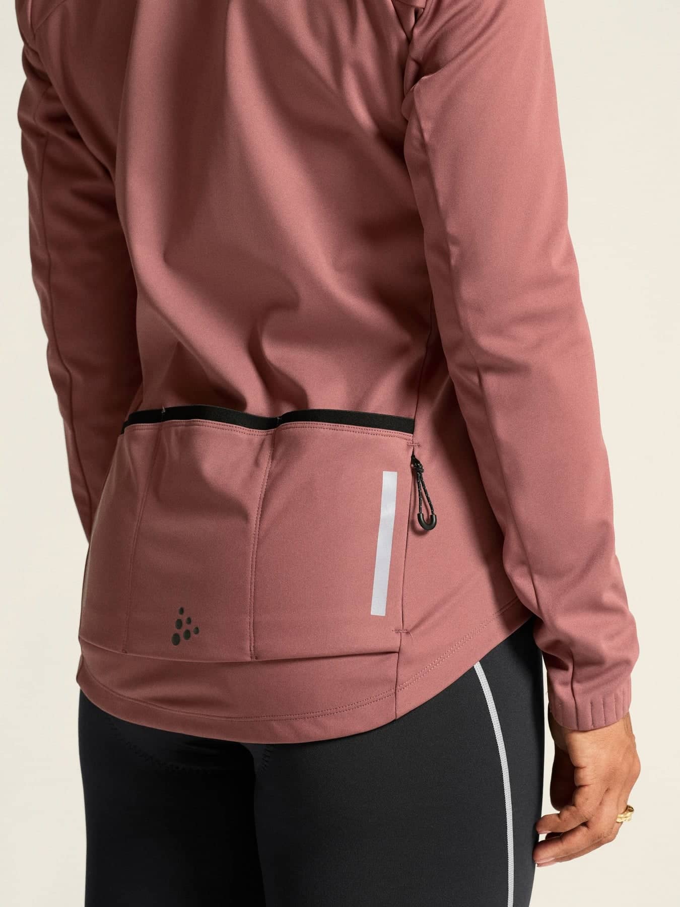 - Silikongreifer am hinteren unteren Saum hält die Jacke an Ort und Stelle