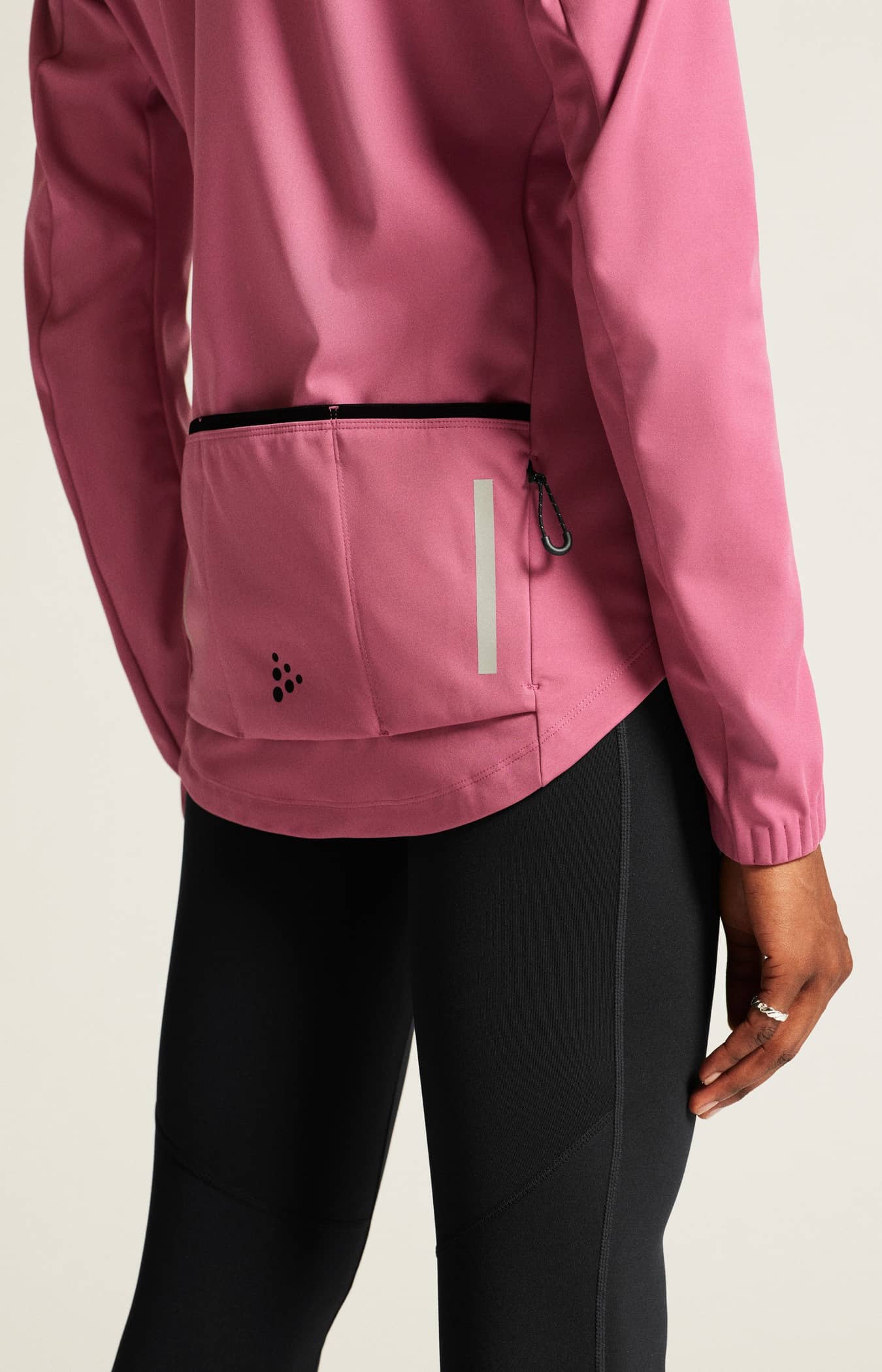 - Silikongreifer am hinteren unteren Saum hält die Jacke an Ort und Stelle