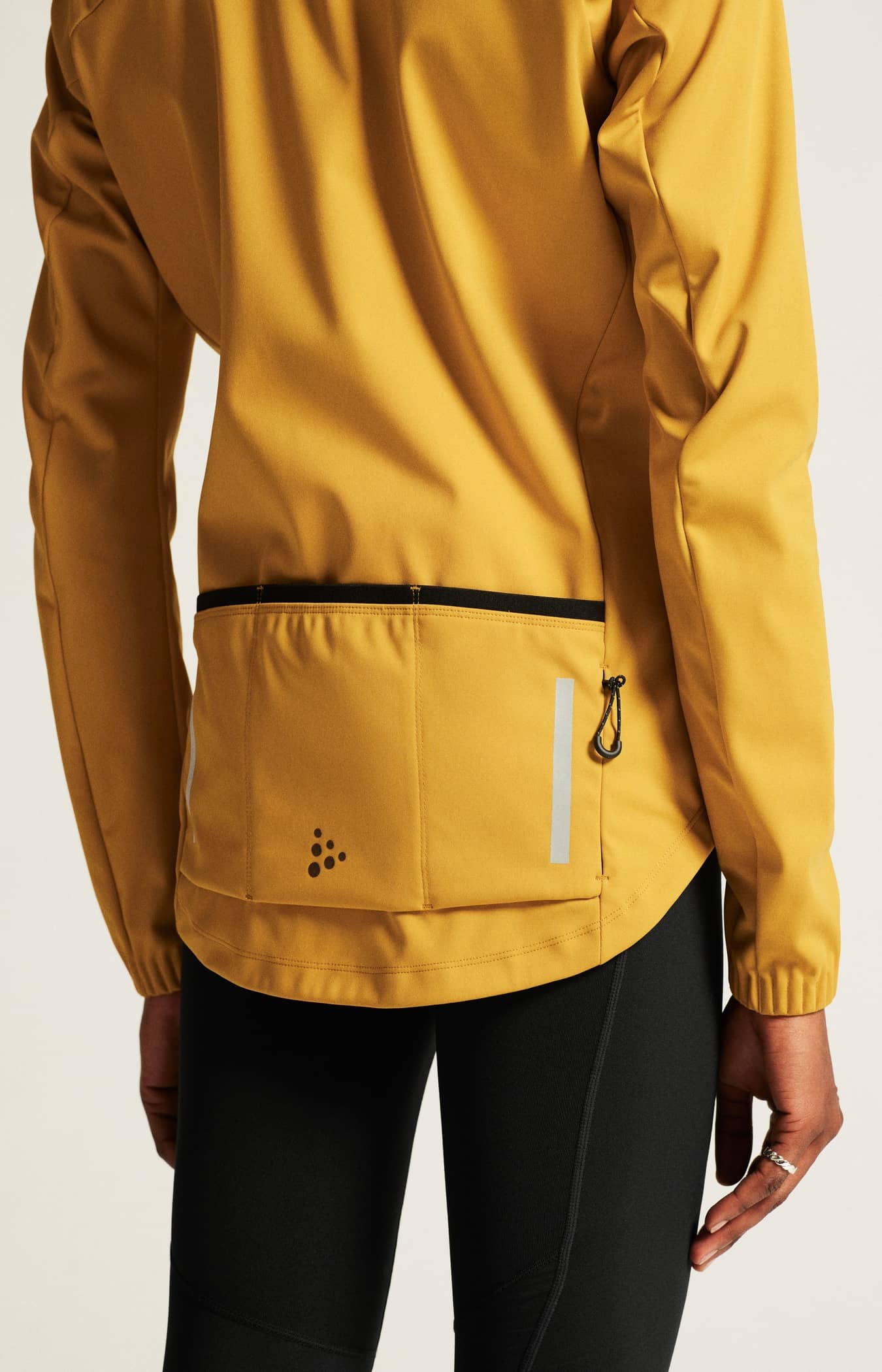- Silikongreifer am hinteren unteren Saum hält die Jacke an Ort und Stelle