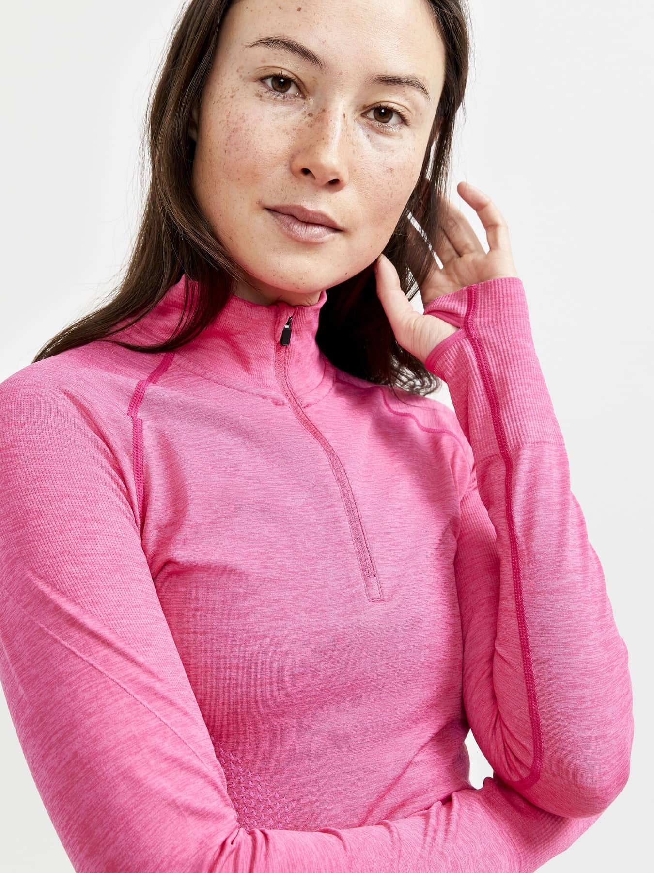 Weiches und funktionelles Half-Zip Tee mit wenigen Nähten und Bodymapping für verbesserte Thermoregulation. Recycelte Materialien.