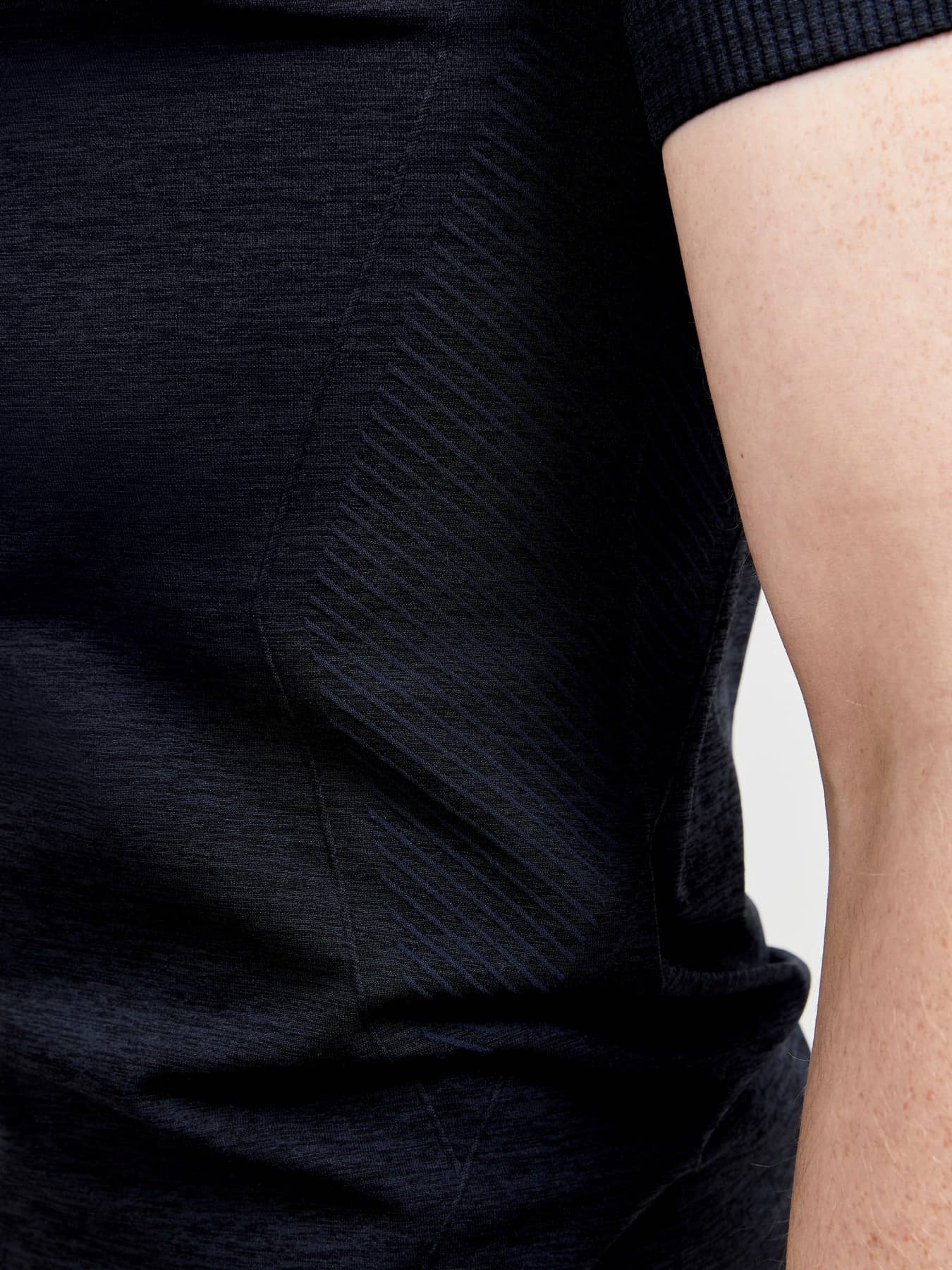 Weiches und funktionelles T-Shirt mit wenigen Nähten und Bodymapping für verbesserte Thermoregulation. Recycelte Materialien.