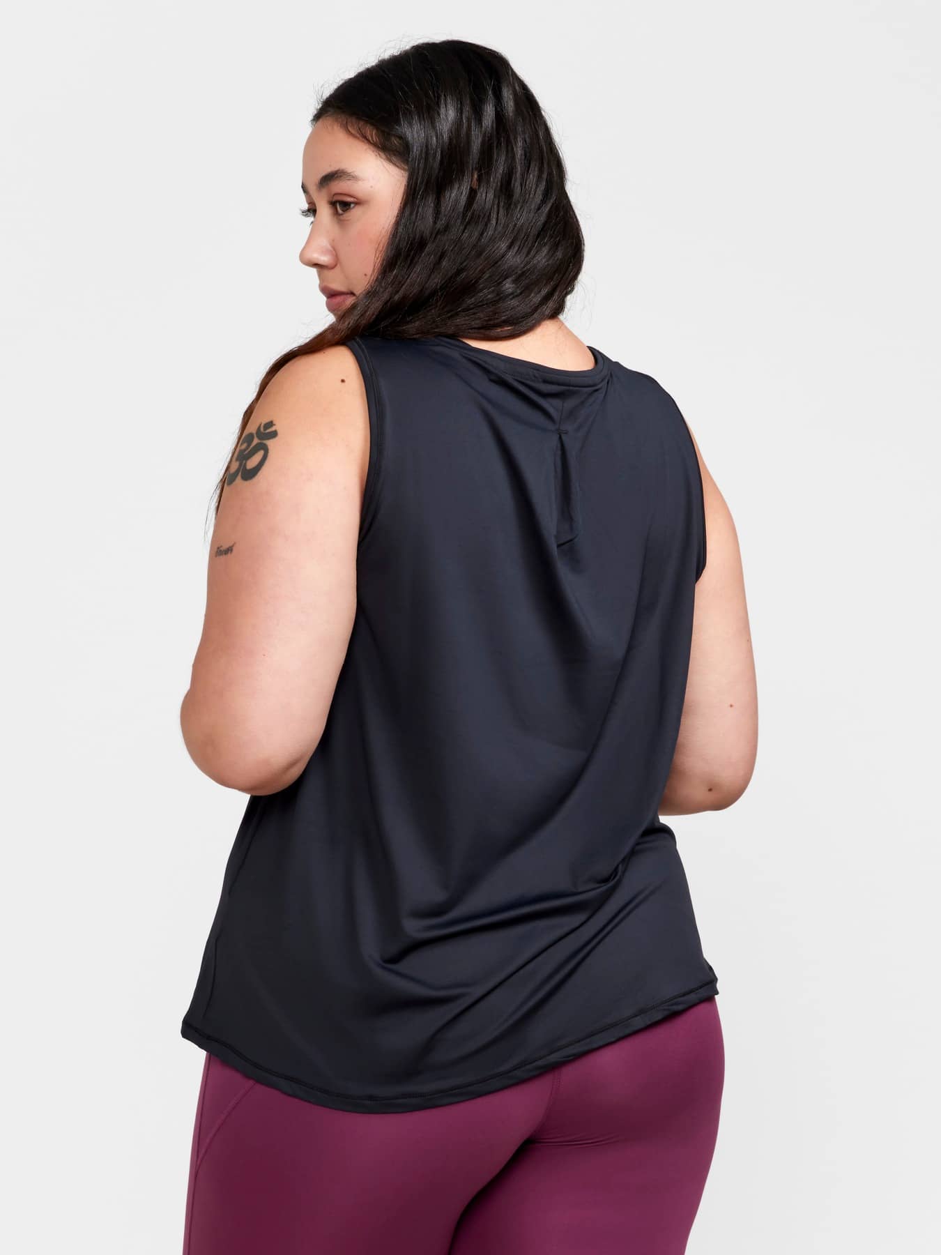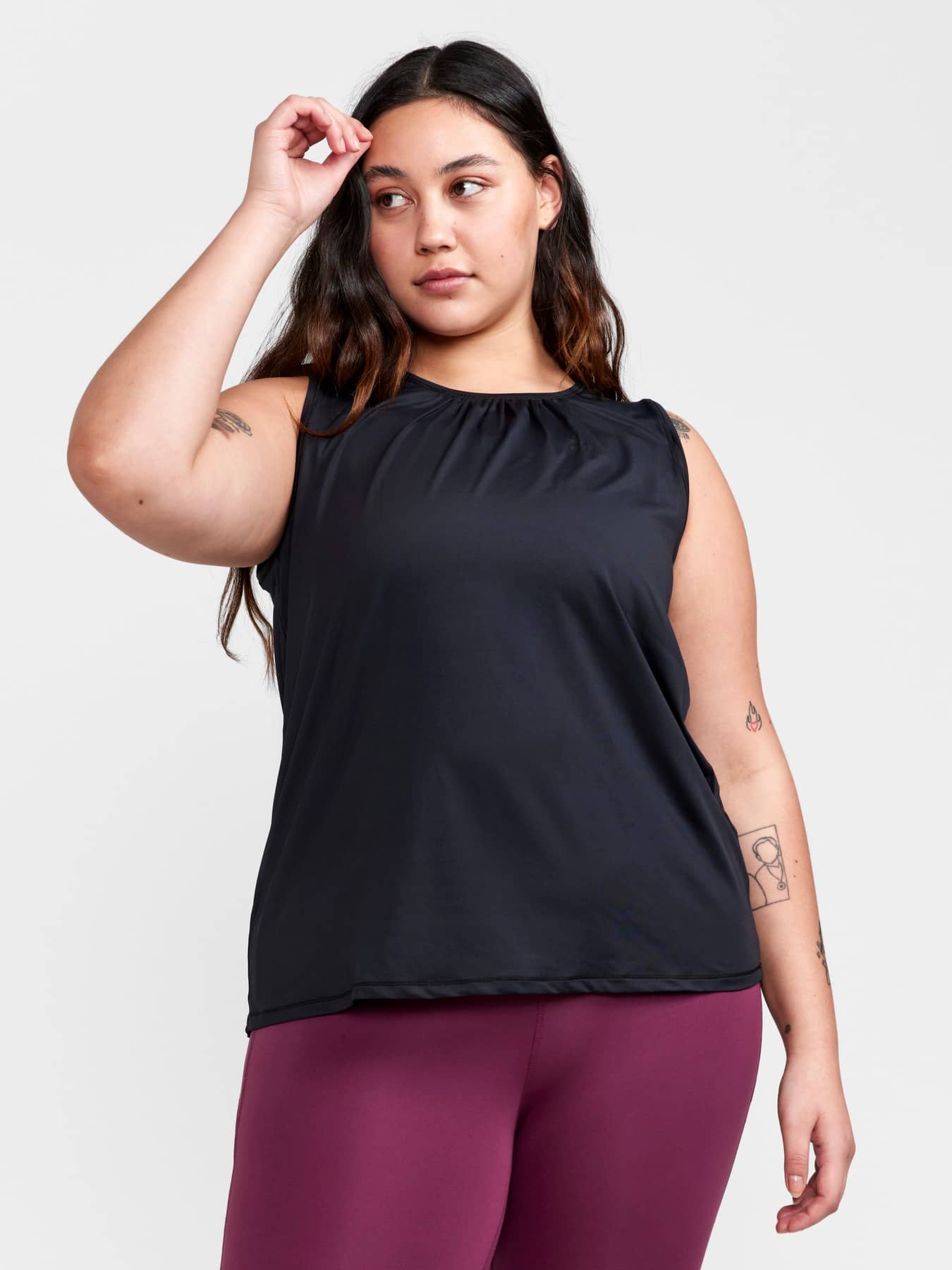 Training singlet with efficient moisture transport designed for all types of intense everyday workouts. Forgiving fit with gathering around neck hole. Made of soft and comfortable recycled jersey fabric.