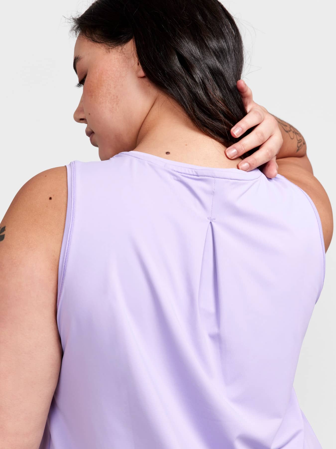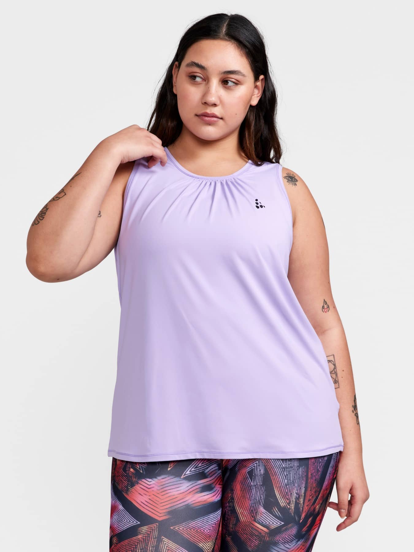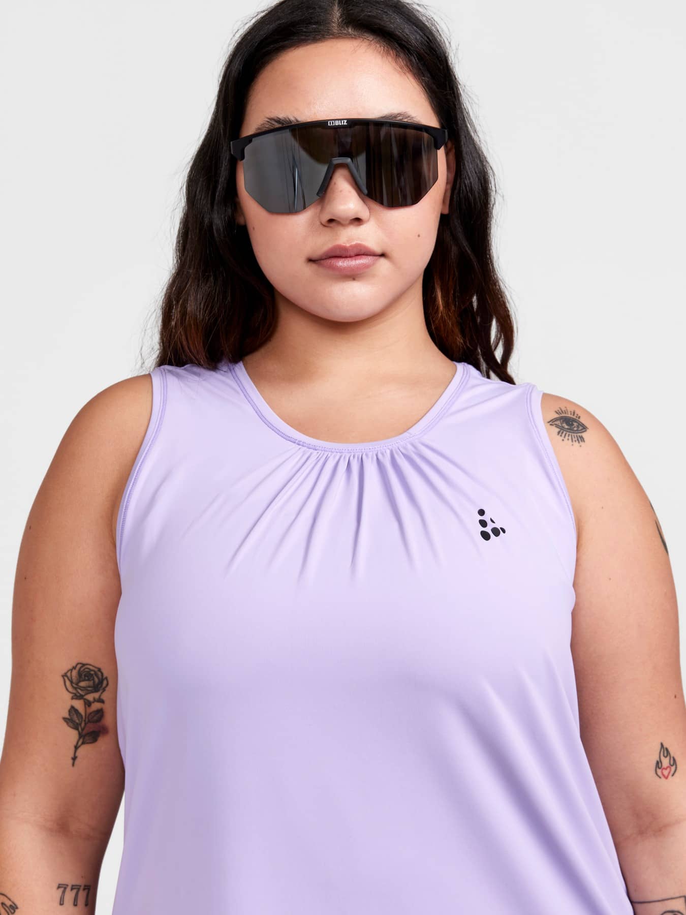 Training singlet with efficient moisture transport designed for all types of intense everyday workouts. Forgiving fit with gathering around neck hole. Made of soft and comfortable recycled jersey fabric.