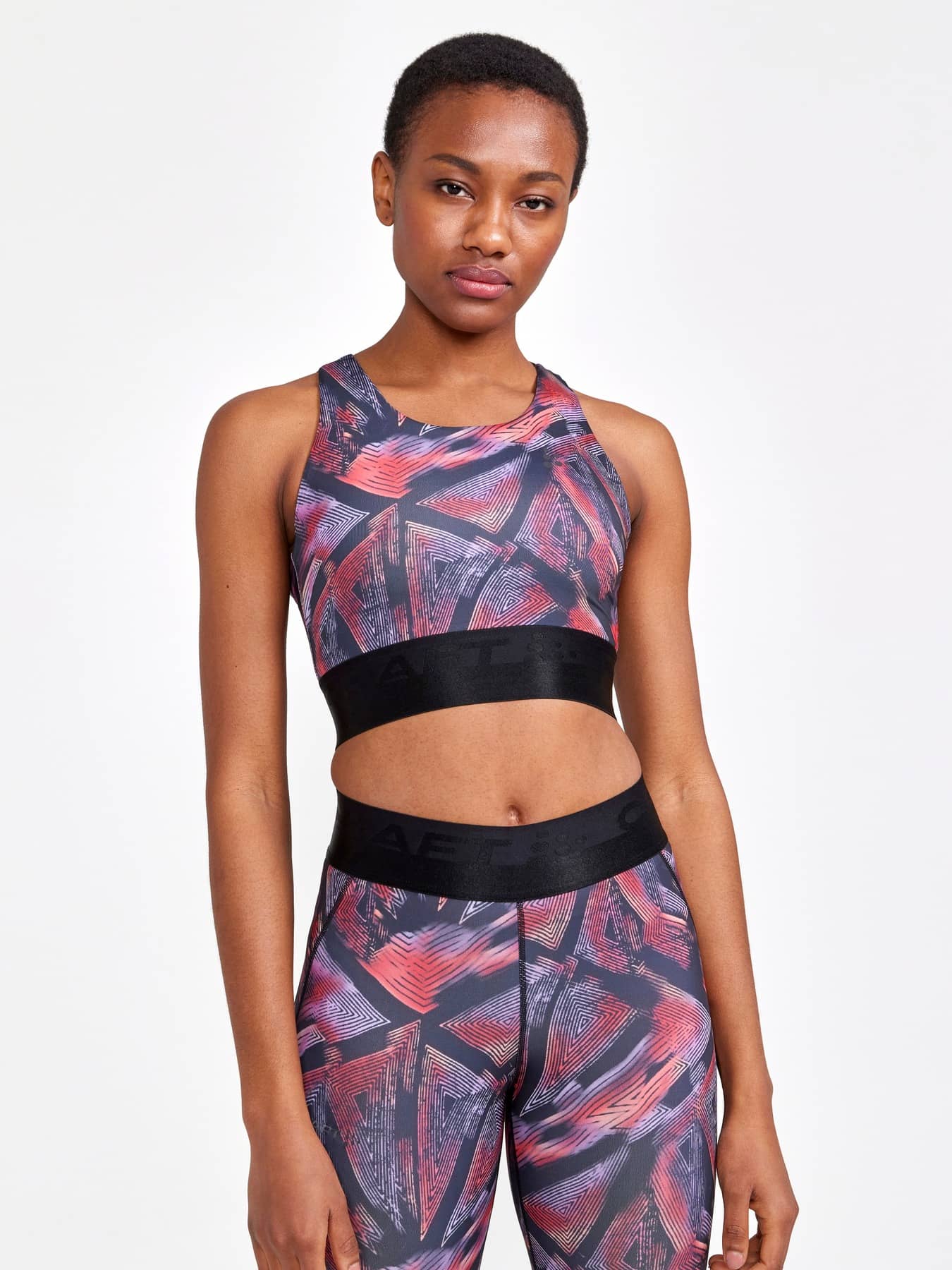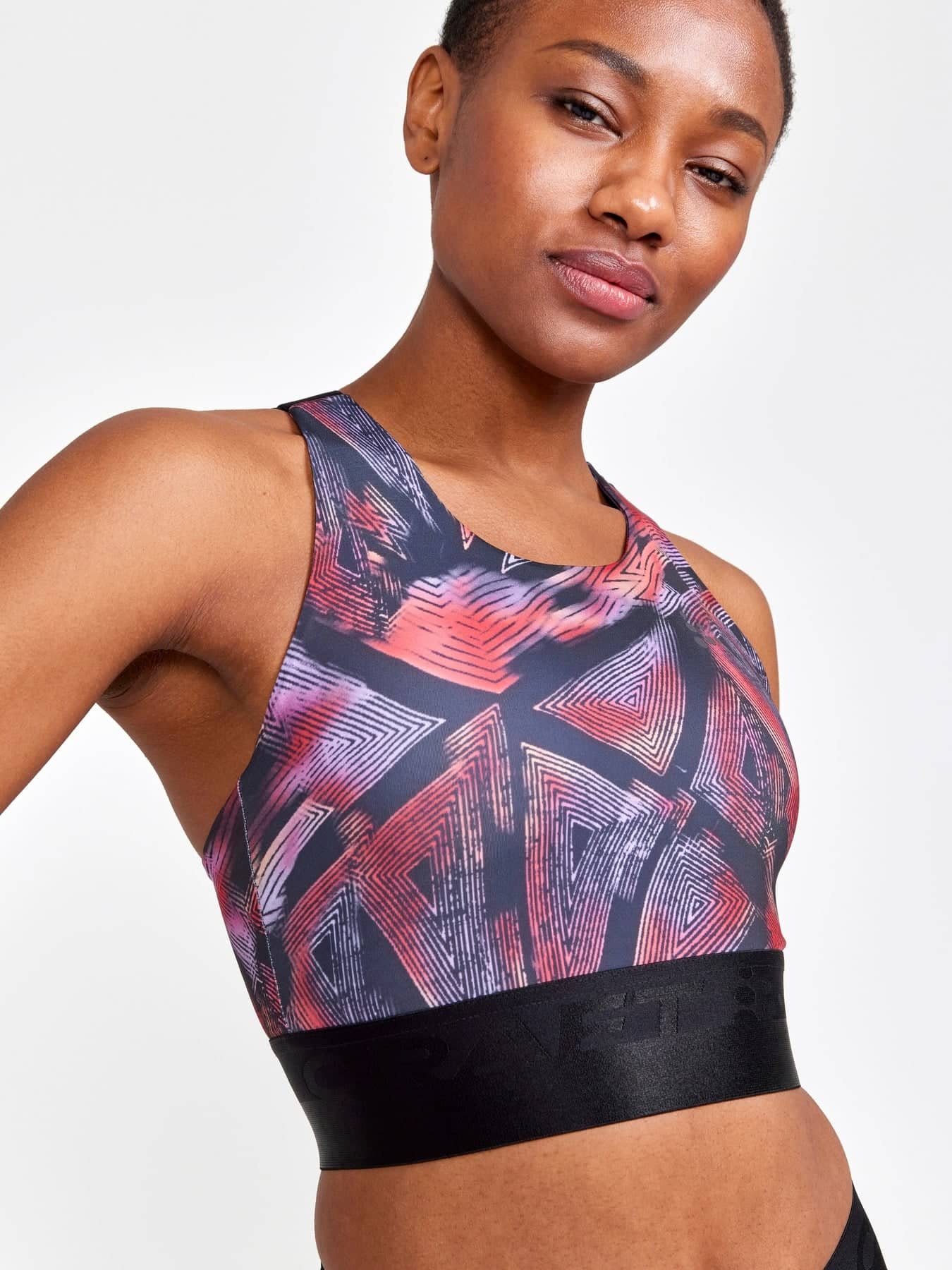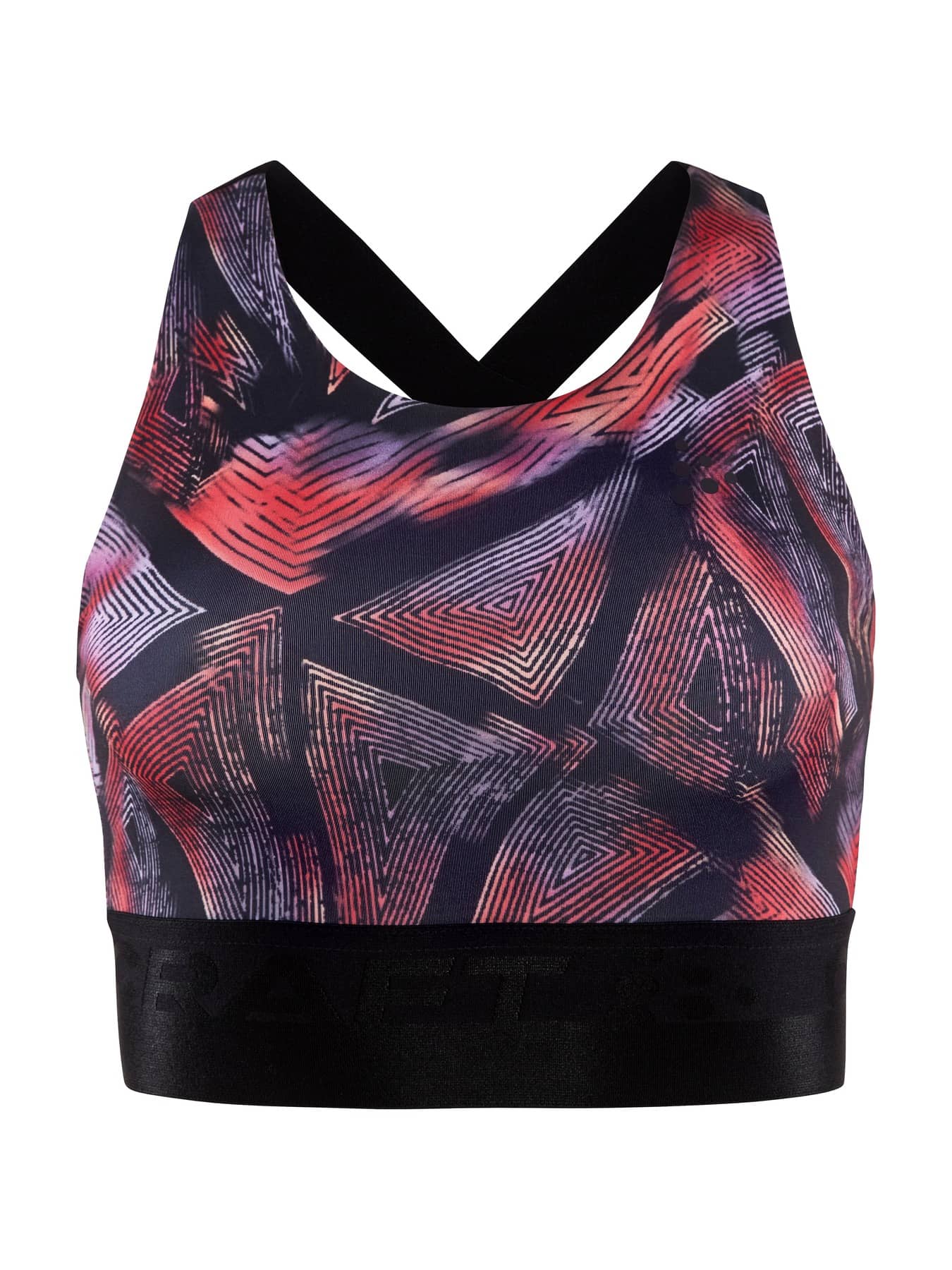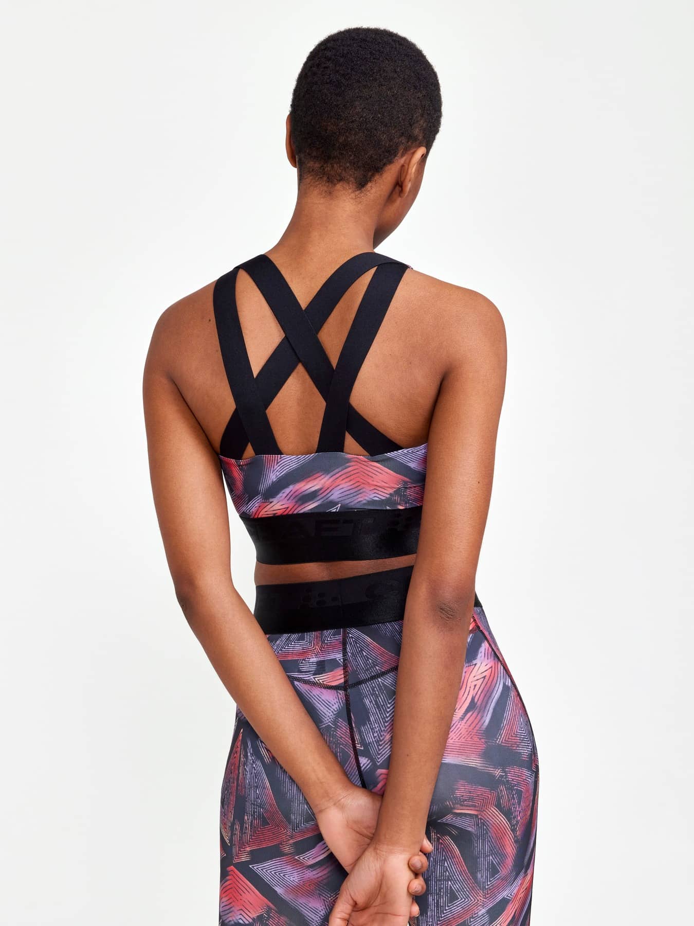 Sporttop mit leichter Unterstützung, das für die meisten Trainingsarten geeignet ist. Hergestellt aus weichem und funktionellem Jersey aus recyceltem Polyester und Elastan. Elastisch im unteren Bereich, gekreuzte Träger im Rücken und gefütterte Vorderseite, um Durchsichtigkeit zu vermeiden.