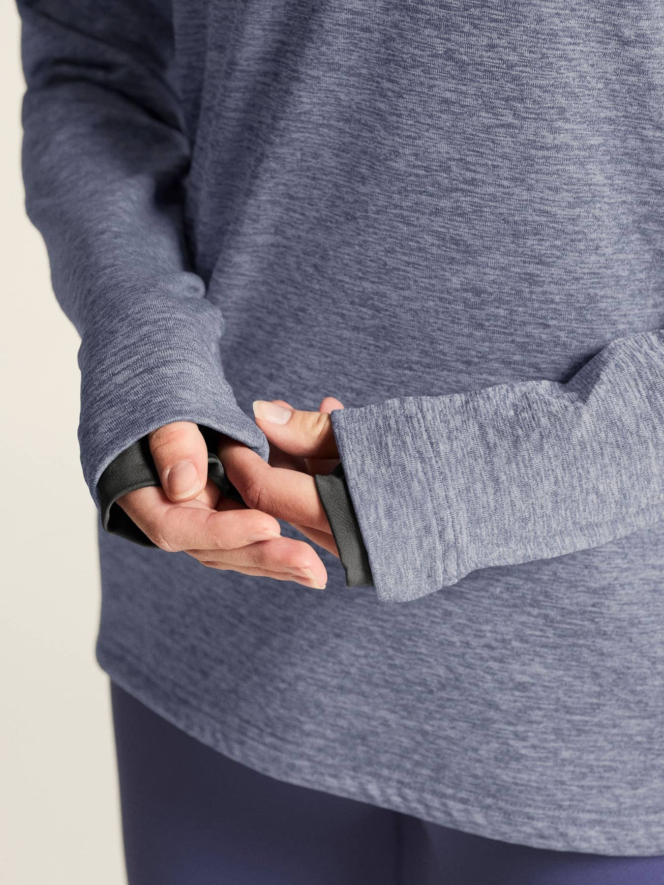 • Gefaltete Jersey-Rippe mit Daumengriff an den Ärmelenden