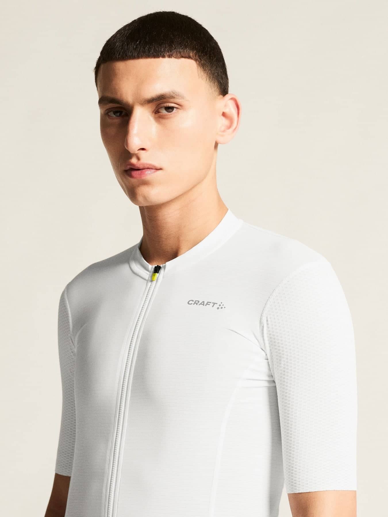 • Strukturiertes, aerodynamisches Mesh-Material an den Ärmeln