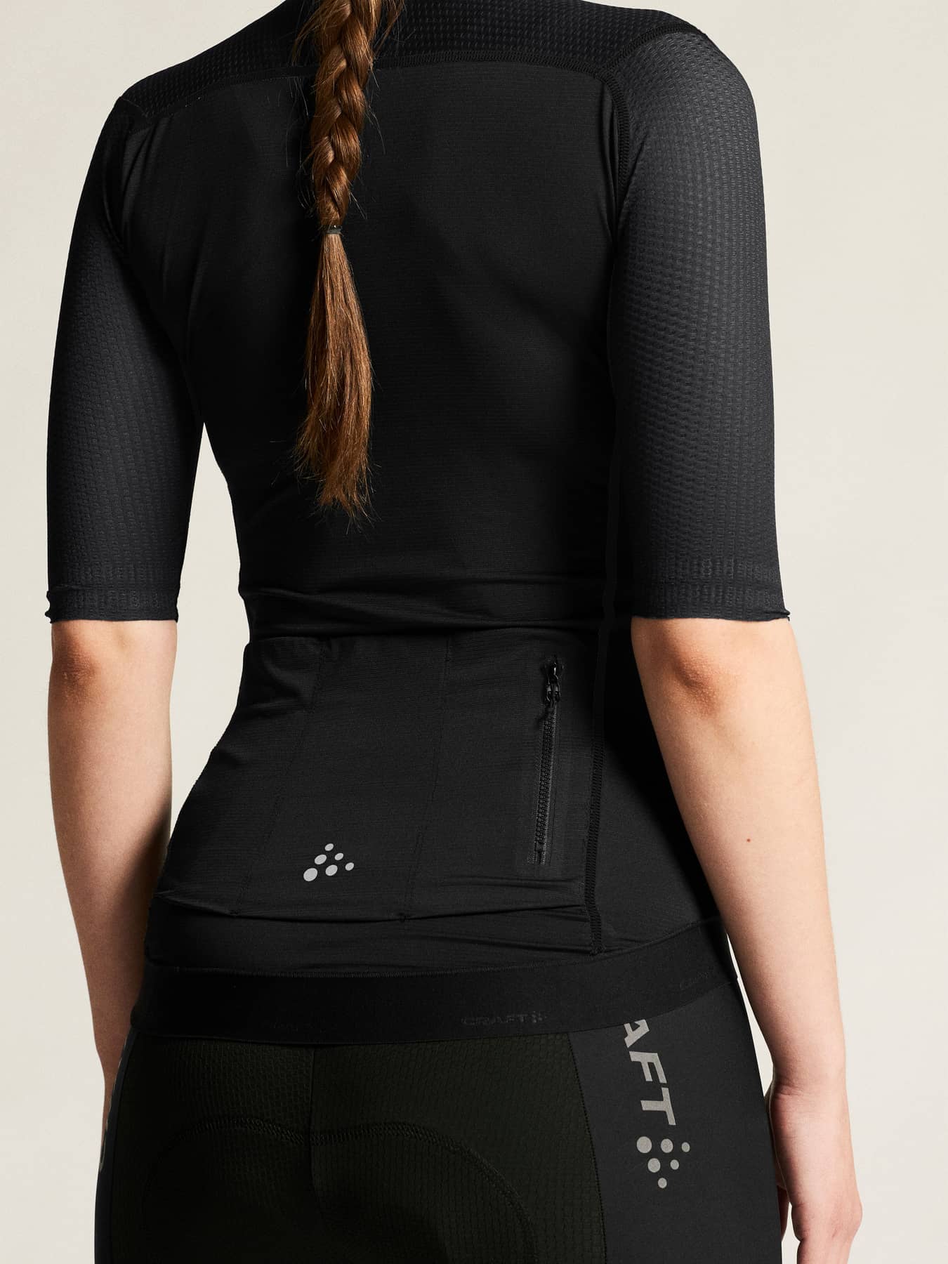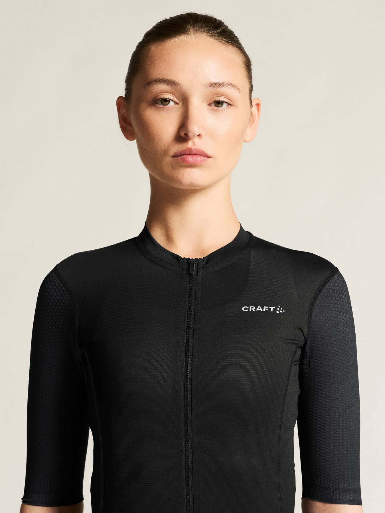 • Strukturiertes, aerodynamisches Mesh-Material an den Ärmeln