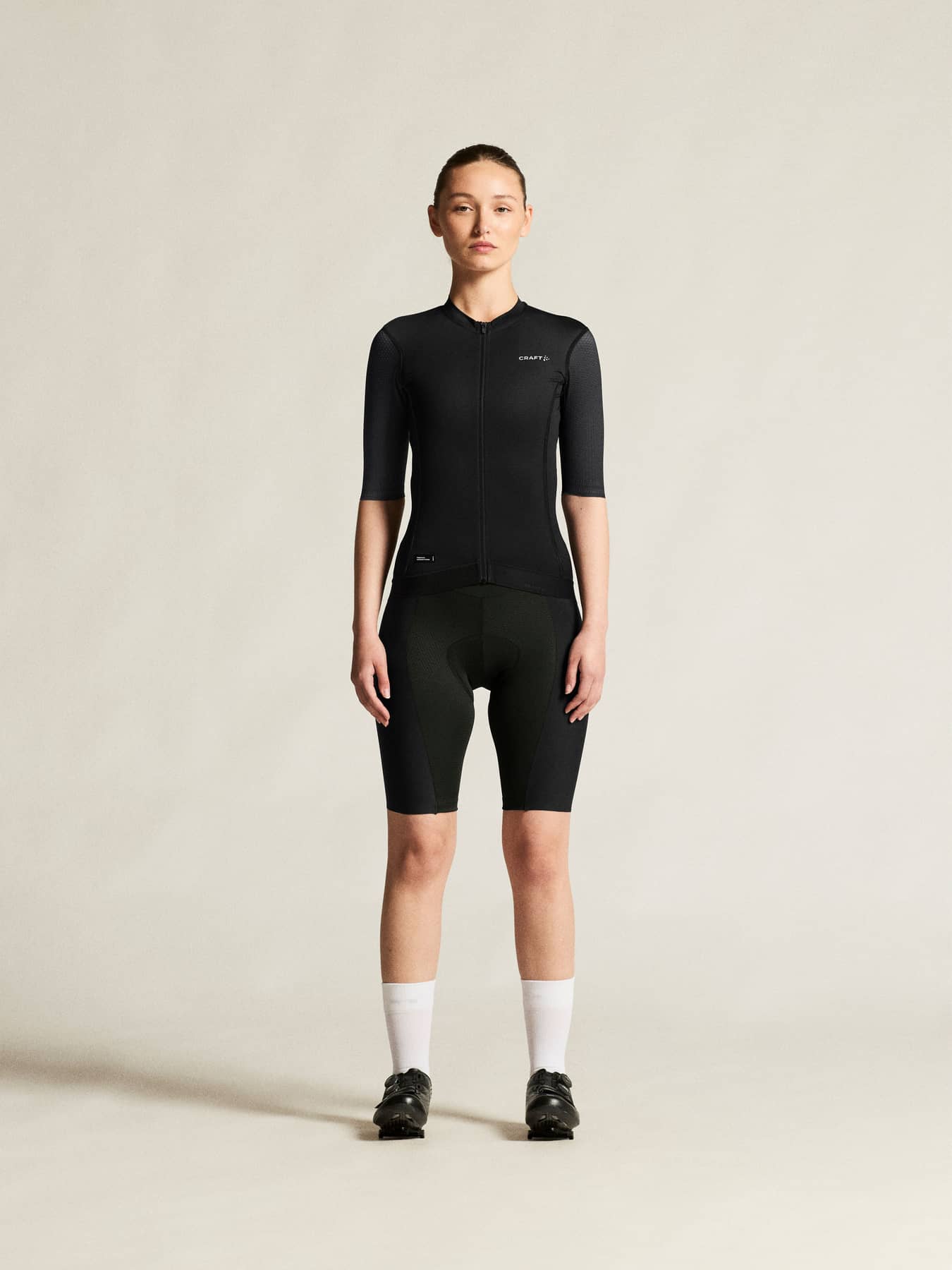 Das aus aerodynamischen und kühlenden Materialien gefertigte Radtrikot bietet außergewöhnliche Luftzirkulation und effizienten Feuchtigkeitstransport bei intensiven Fahrten. Dieses innovative Trikot vereint mehrere hochelastische Materialien mit unterschiedlichen Strukturen für eine stromlinienförmige Passform, darunter Ärmel aus Mesh mit Noppenstruktur für verbesserte Aerodynamik. Raw-Cut Ärmelenden mit Silikonpunkten auf der Innenseite und ein elastischer Saum, die während der gesamten Fahrt für einen sicheren und bequemen Sitz sorgen.