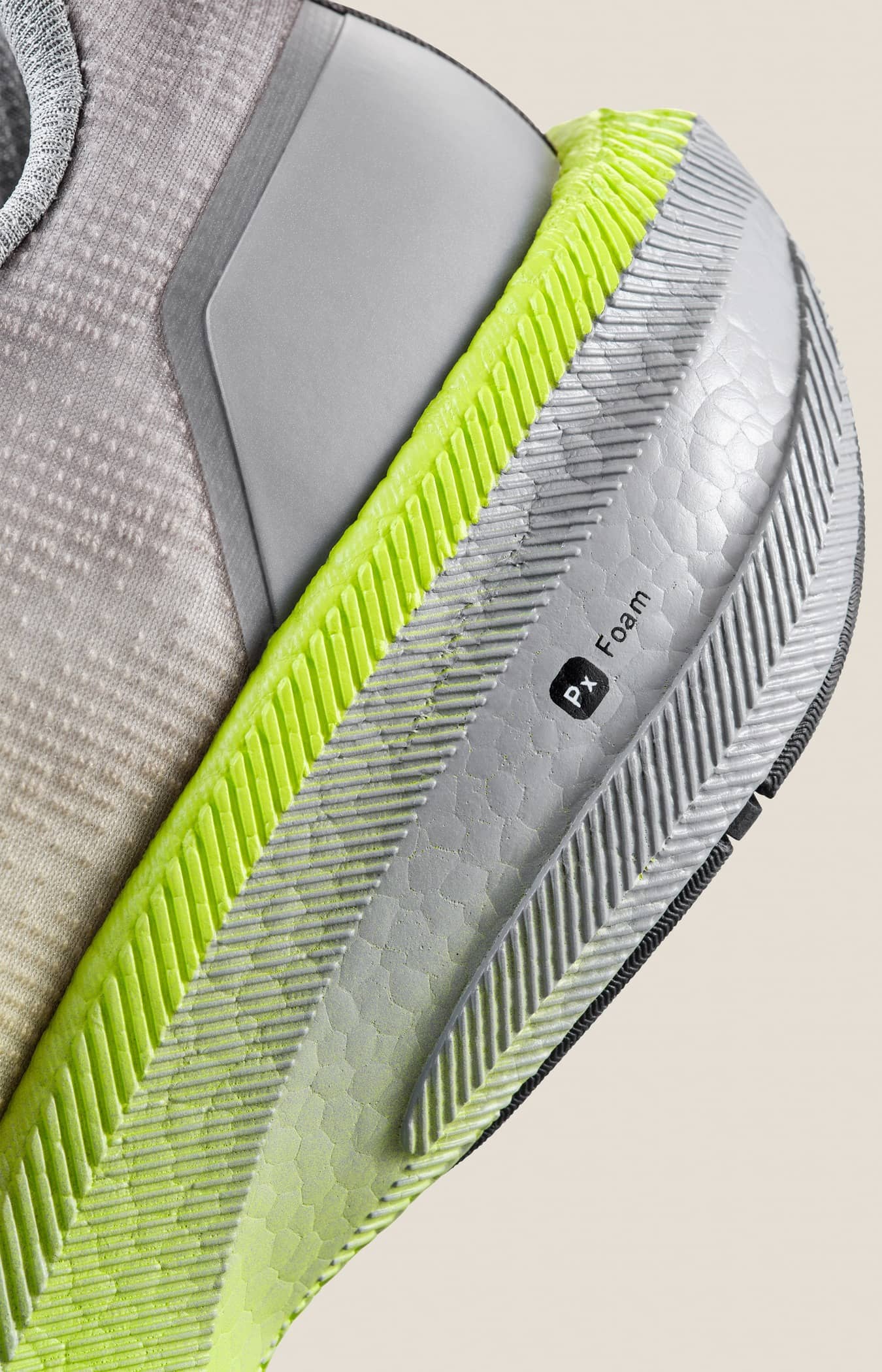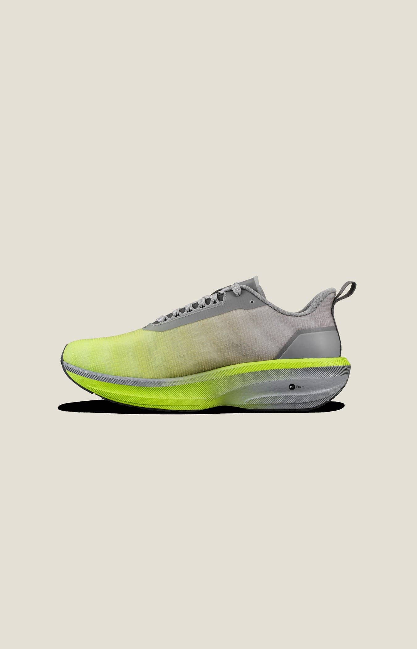 Px Foam™ ist ein ultraleichtes Zwischensohlenmaterial, das sich durch Energierückgabe, Stoßdämpfung und Flexibilität auszeichnet. Dieses innovative Material wird aus einem einzigen natürlichen Schaumbildner hergestellt und kommt ohne chemische Vernetzungsmittel aus, wodurch ein ungiftiger Herstellungsprozess gewährleistet ist. Darüber hinaus sind die Roh- und Fertigmaterialien vollständig wiederverwendbar. Der Hochleistungsschaumstoff hat eine extrem niedrige Dichte und ist damit bis zu 20 % leichter als herkömmliches EVA. Das reduzierte Gewicht in Kombination mit explosivem Rebound machen Px Foam™ perfekt für jeden Lauf.