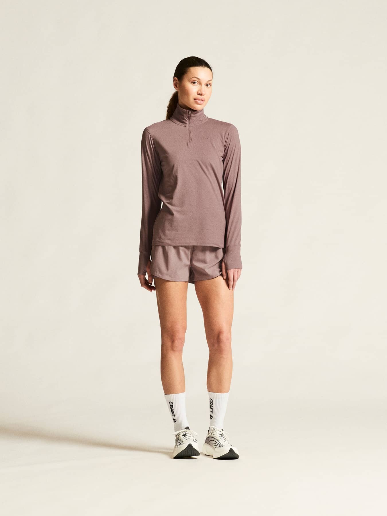 Flow HZ LS ist ein weiches und funktionelles Trikot mit halbem Reißverschluss, das sich sowohl als Baselayer als auch als eigenständiges Kleidungsstück für Laufen, Training, Powerwalking und ähnliche körperliche Aktivitäten eignet.