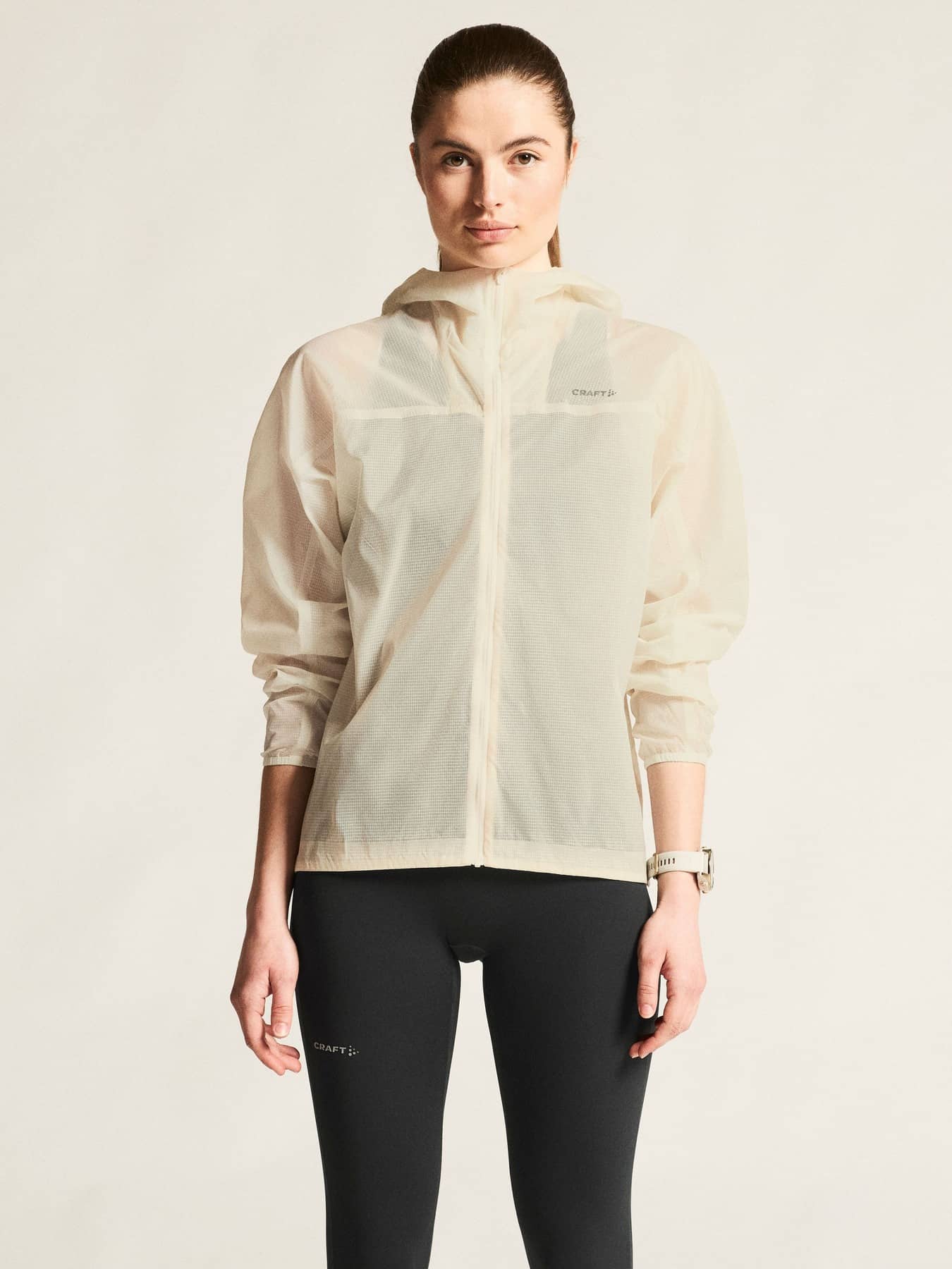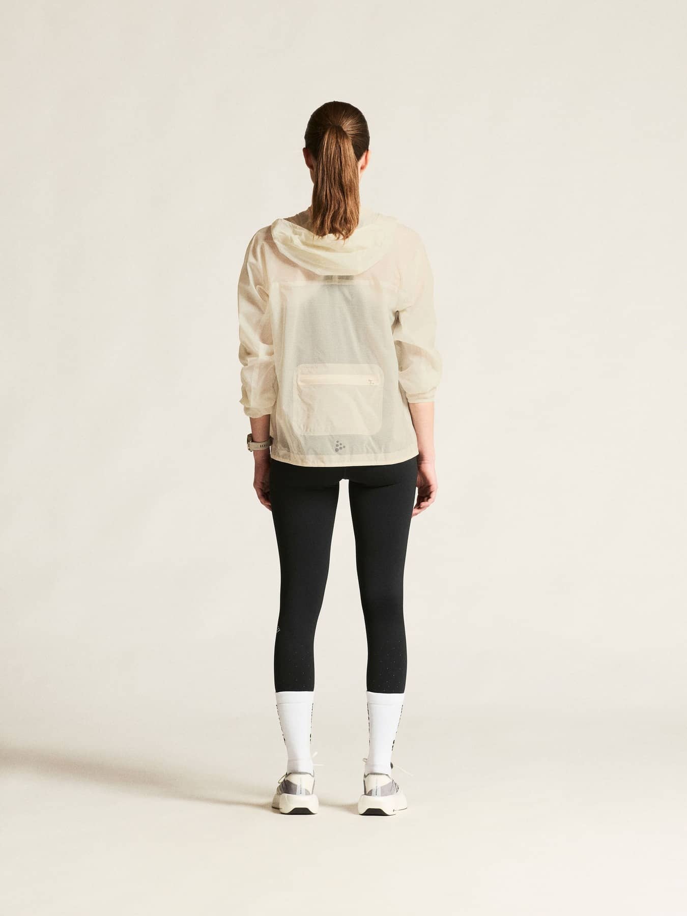 Das dünne Ripstop-Material der Jacke besteht zu 100 % aus recyceltem Polyamid und ist sowohl wind- als auch wasserabweisend und bietet gleichzeitig hervorragende Atmungsaktivität und Feuchtigkeitsregulierung. Verbundnähte verbessern den Windschutz und mehrere Reißverschlusstaschen bieten sicheren Stauraum für Schlüssel, Energieriegel und andere wichtige Dinge.