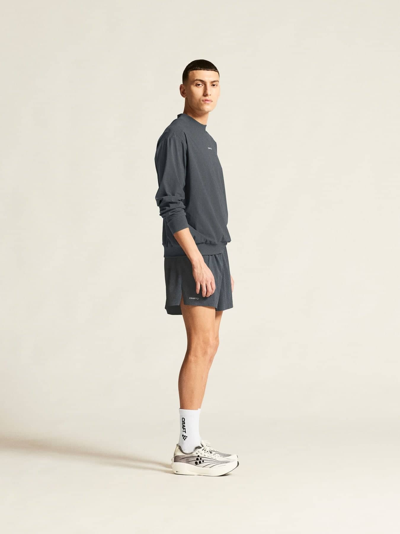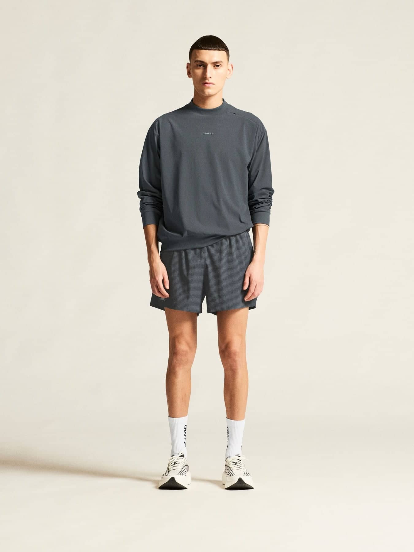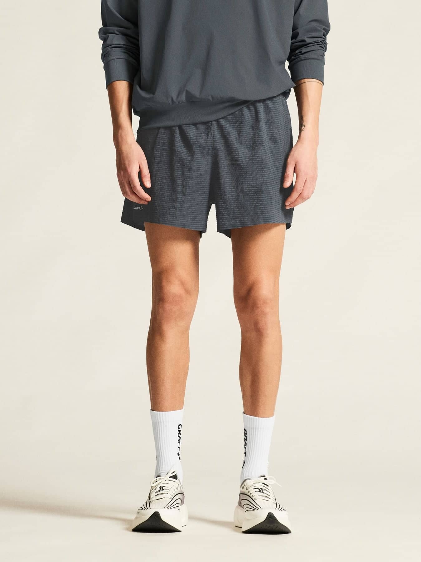 Diese Shorts bestehen aus gewebtem Polyestergewebe mit hohem Stretchanteil und einer Jacquard-Oberfläche und bieten Leistung und Style gleichermaßen. Der elastische Bund mit verstellbarem Kordelzug sorgt für eine perfekte Passform, während hohe Seitenschlitze die Bewegungsfreiheit verbessern. Die Shorts verfügen außerdem über eine stützende Innenhose und zwei Innentaschen zur praktischen Aufbewahrung von Schlüsseln und Gels.