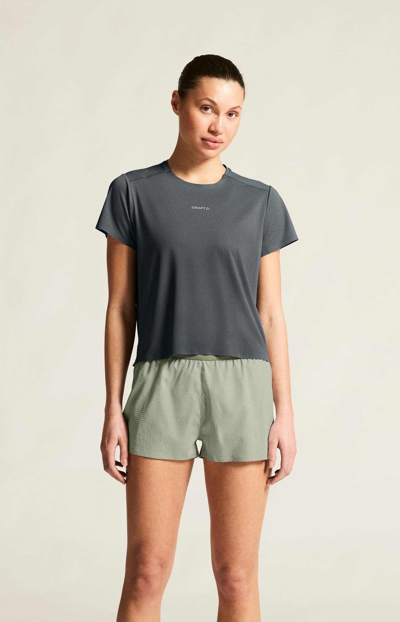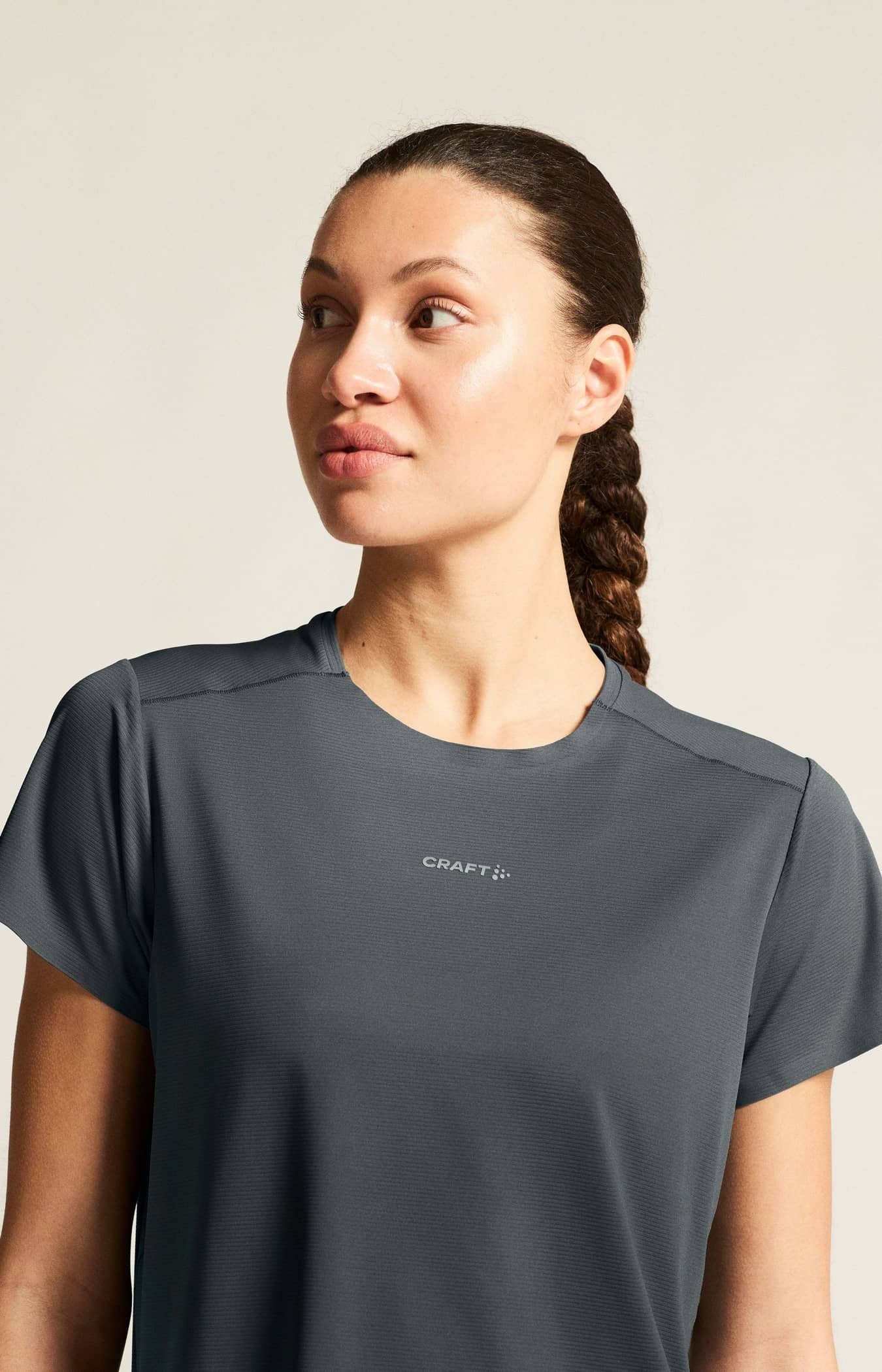 Dieses leistungsstarke Tee besteht aus weichem Jersey-Material aus recyceltem Polyester und Elastan und bietet hervorragenden Feuchtigkeitstransport und optimale Bewegungsfreiheit. Perforierte Details auf der Rückseite verbessern die Belüftung, während verschweißte Abschlüsse Reibung minimieren.