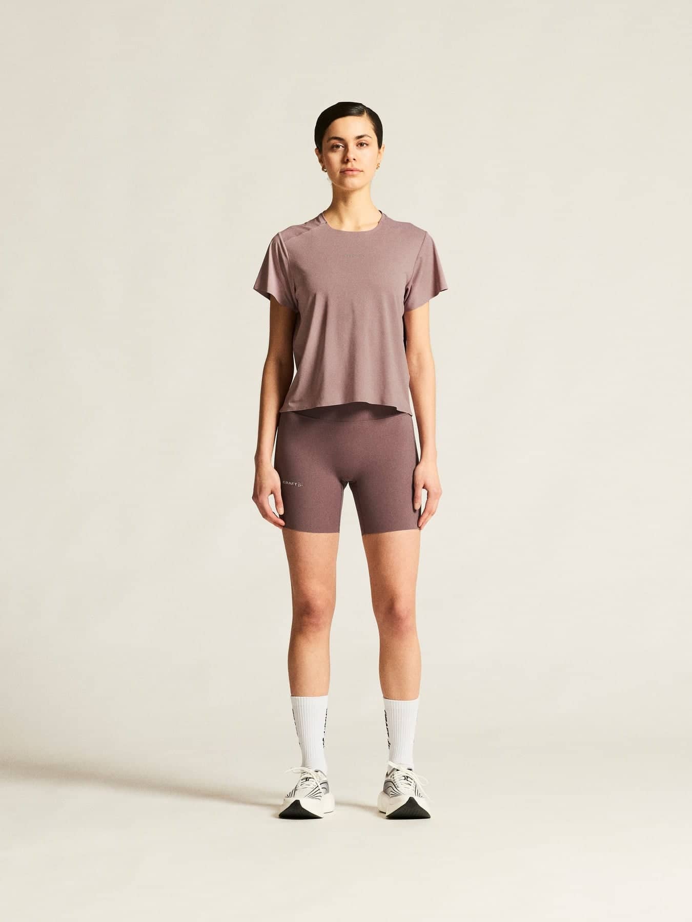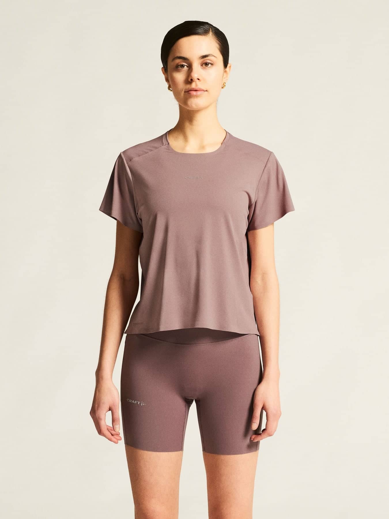Dieses leistungsstarke Tee besteht aus weichem Jersey-Material aus recyceltem Polyester und Elastan und bietet hervorragenden Feuchtigkeitstransport und optimale Bewegungsfreiheit. Perforierte Details auf der Rückseite verbessern die Belüftung, während verschweißte Abschlüsse Reibung minimieren.