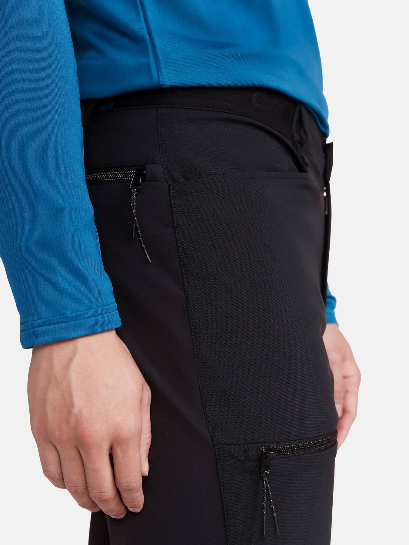• Strapazierfähige 4-Wege-Stretcheinsätze an Knien, Taille und Gesäß
