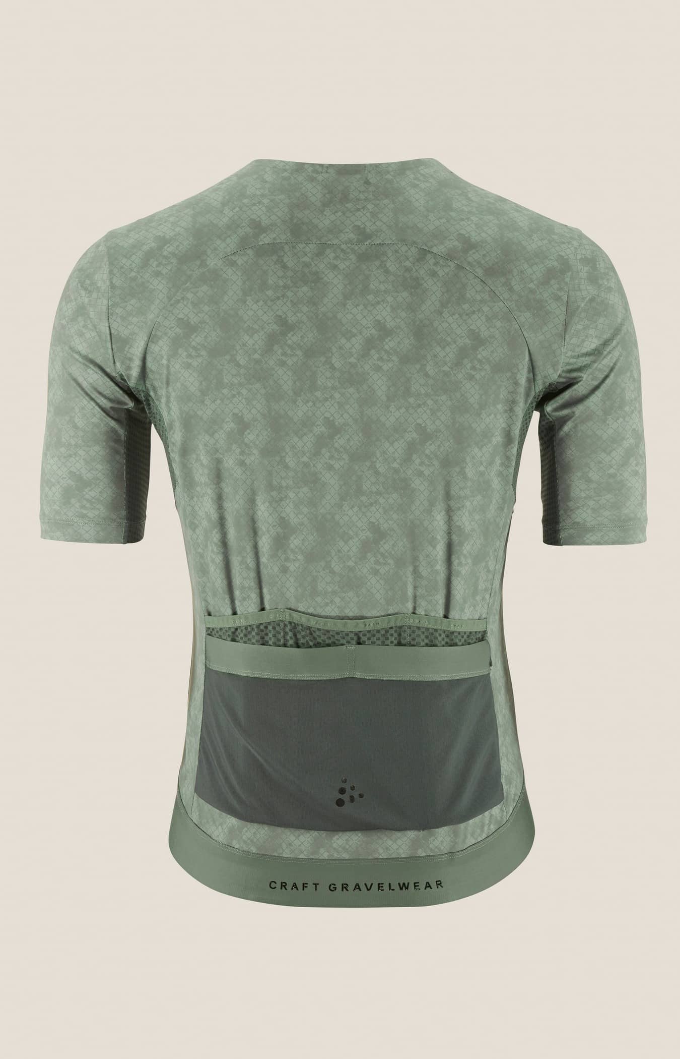 Pro-Level Gravel Jersey aus leichtem, elastischem und strapazierfähigem Material für intensive Ausfahrten. Drei Rückentaschen mit großer Netzaußentasche und seitlicher Reißverschlusstasche.